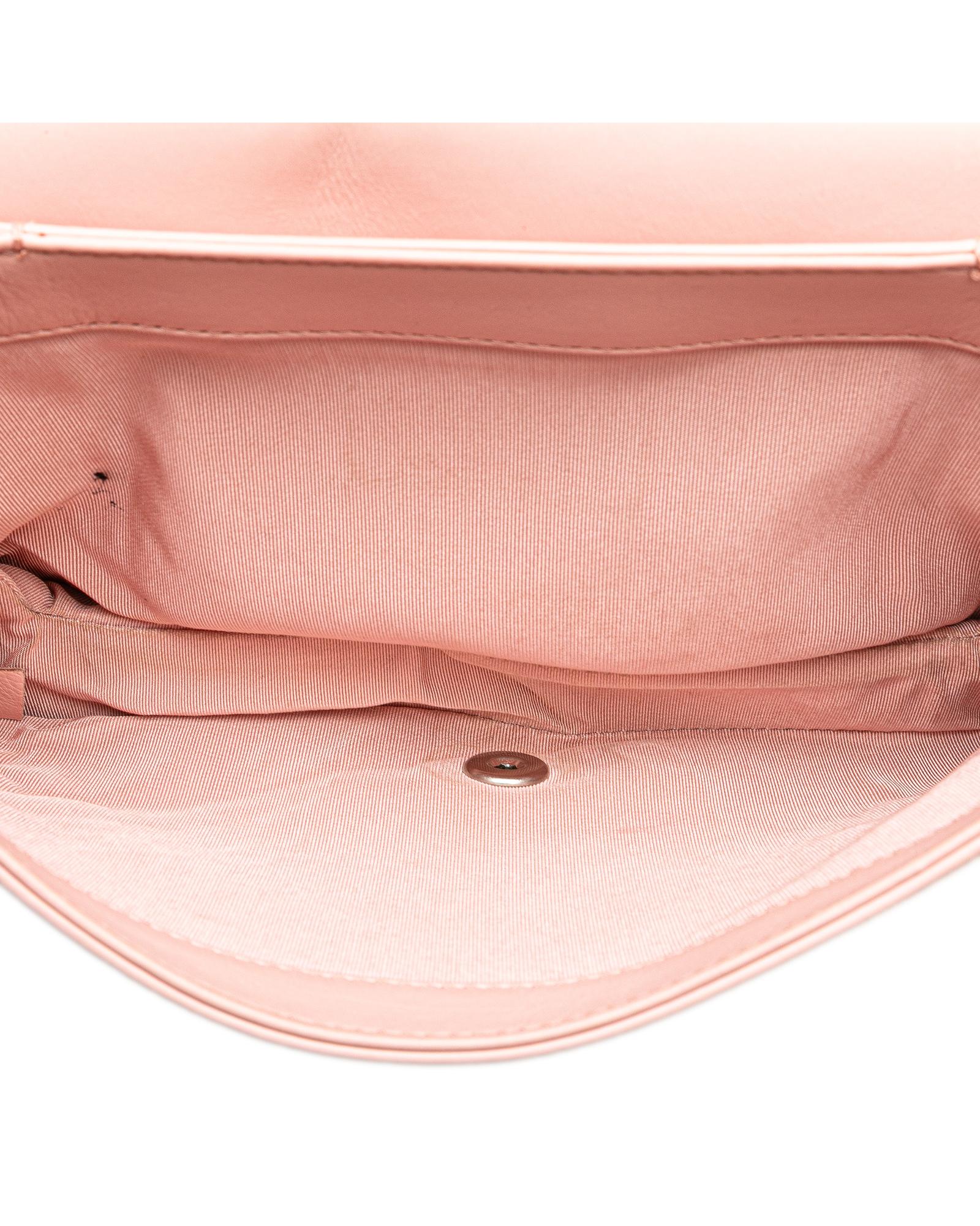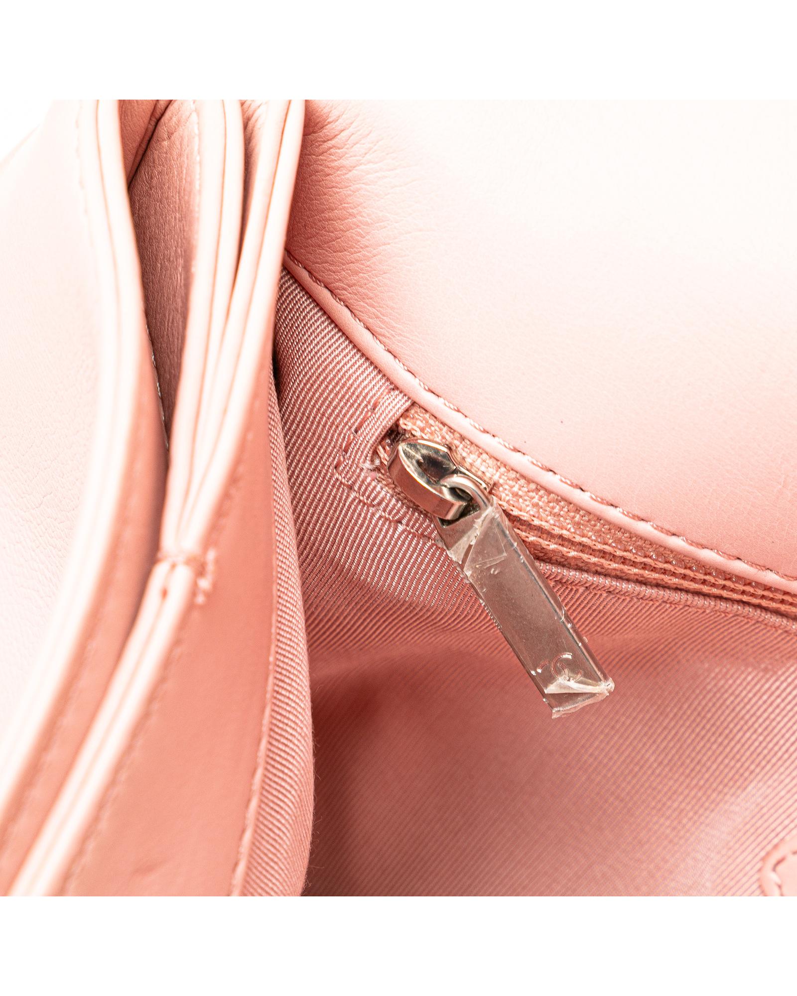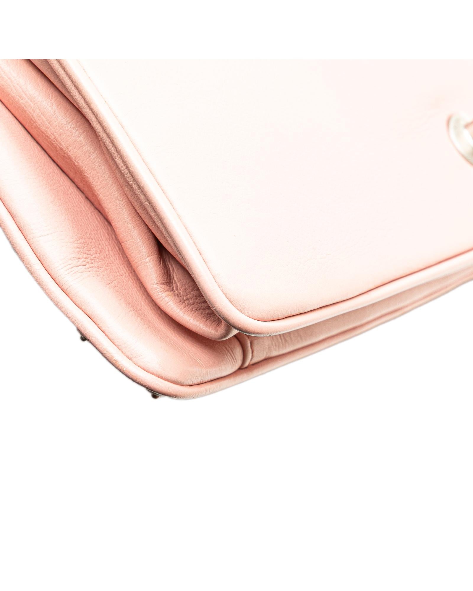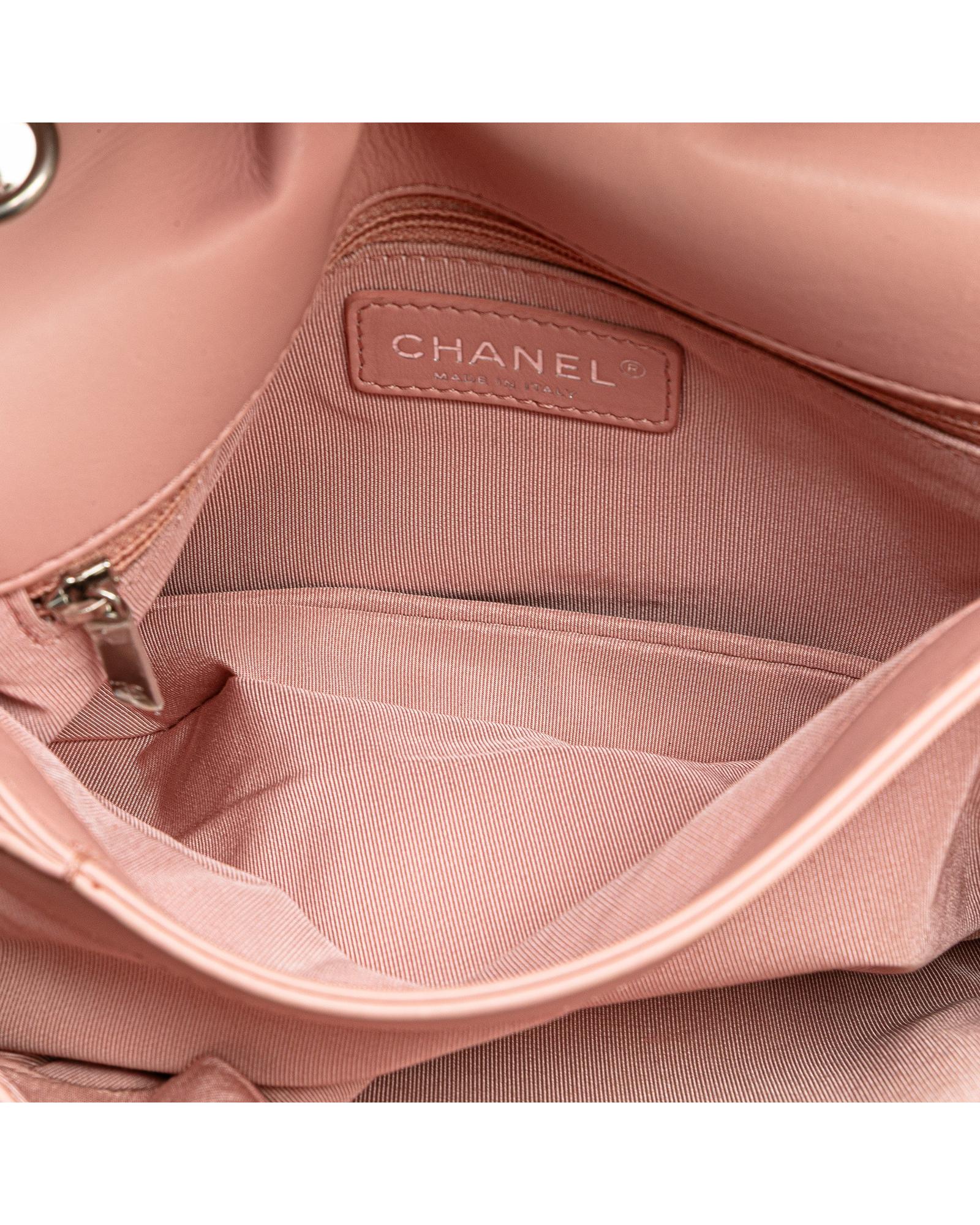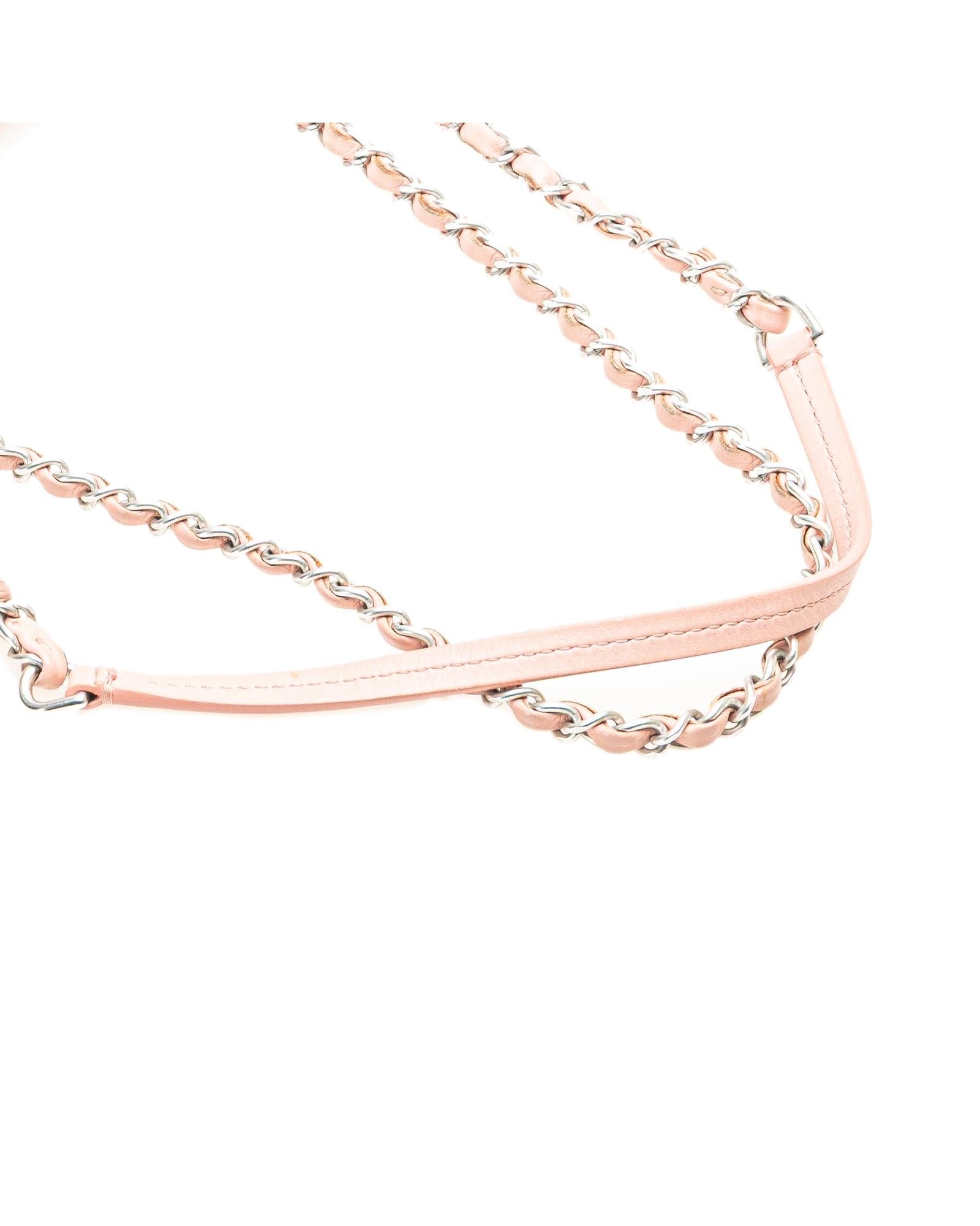 This flap bag features a studded leather body a leather-woven chain strap with leather guard a front flap with CC turn lock closure an exterior back slip pocket and an interior zip pocket.Brand: Chanel