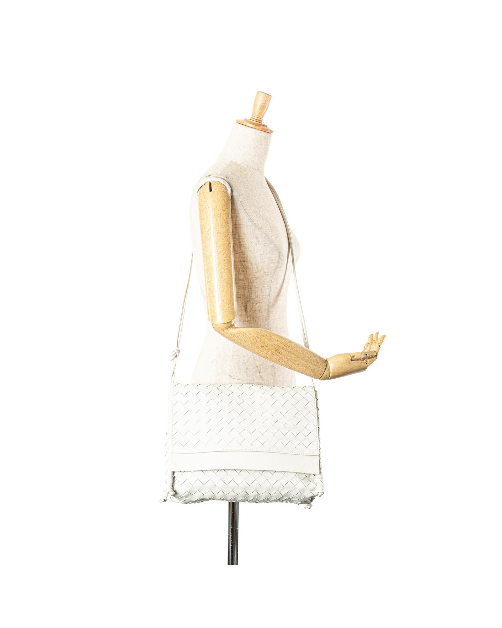 This crossbody bag features a woven leather body rolled shoulder strap and and a fold-over top.Brand: Bottega Veneta