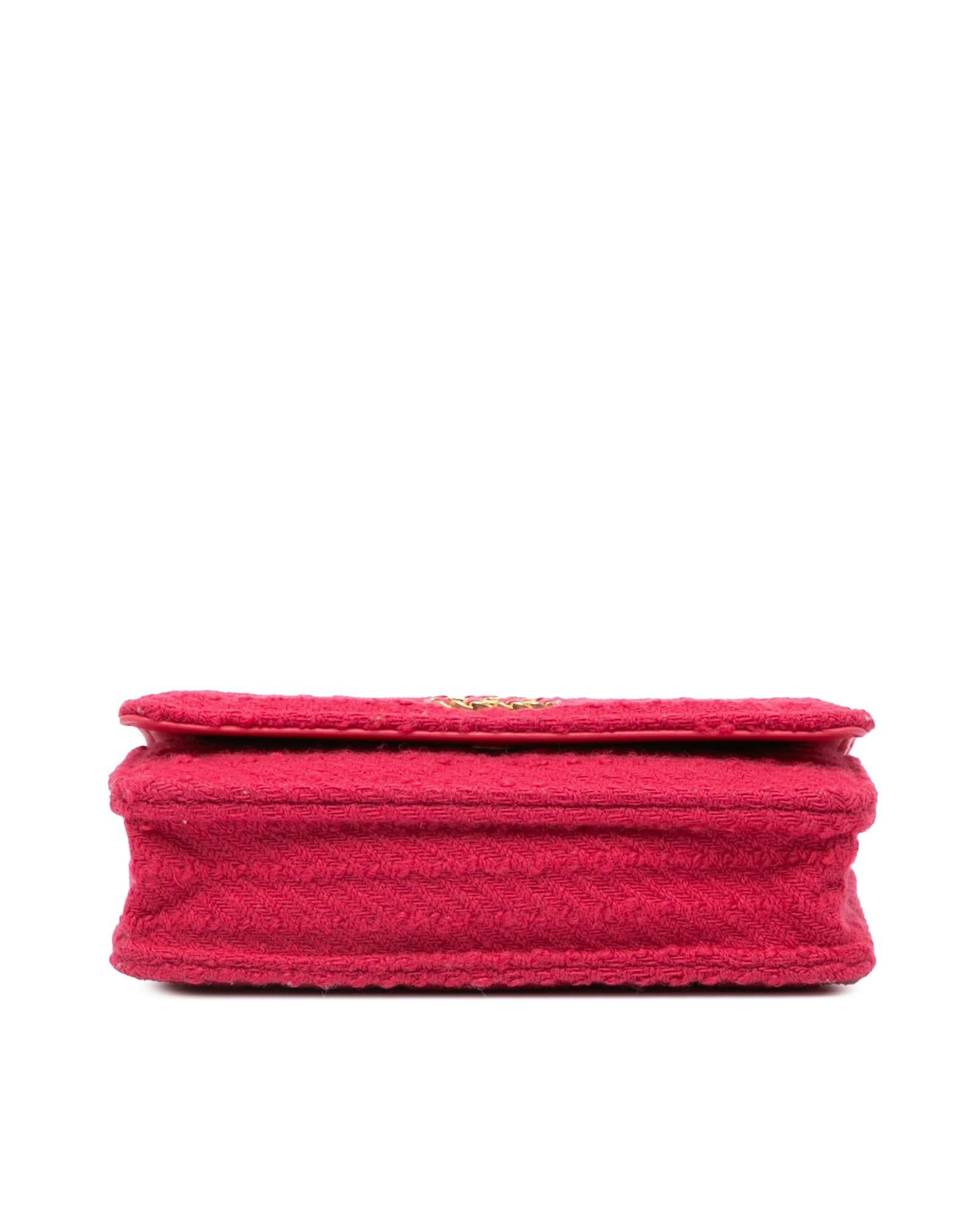 Tweed Wallet On Chain with Chain-Link Handle and Leather Strap