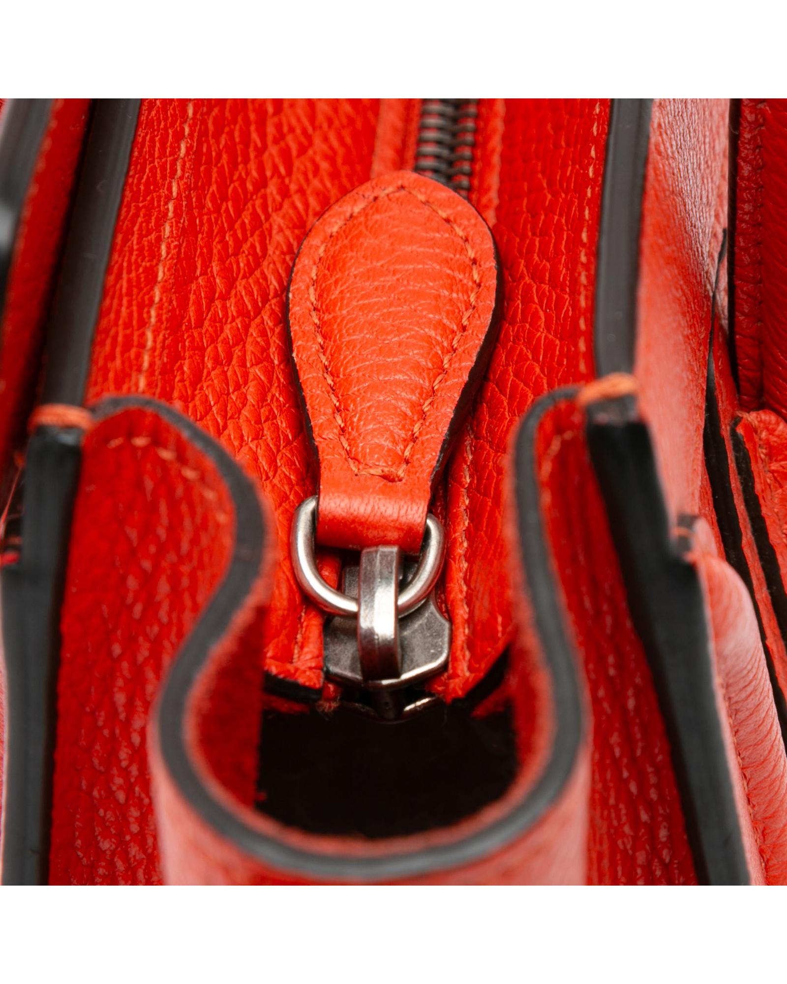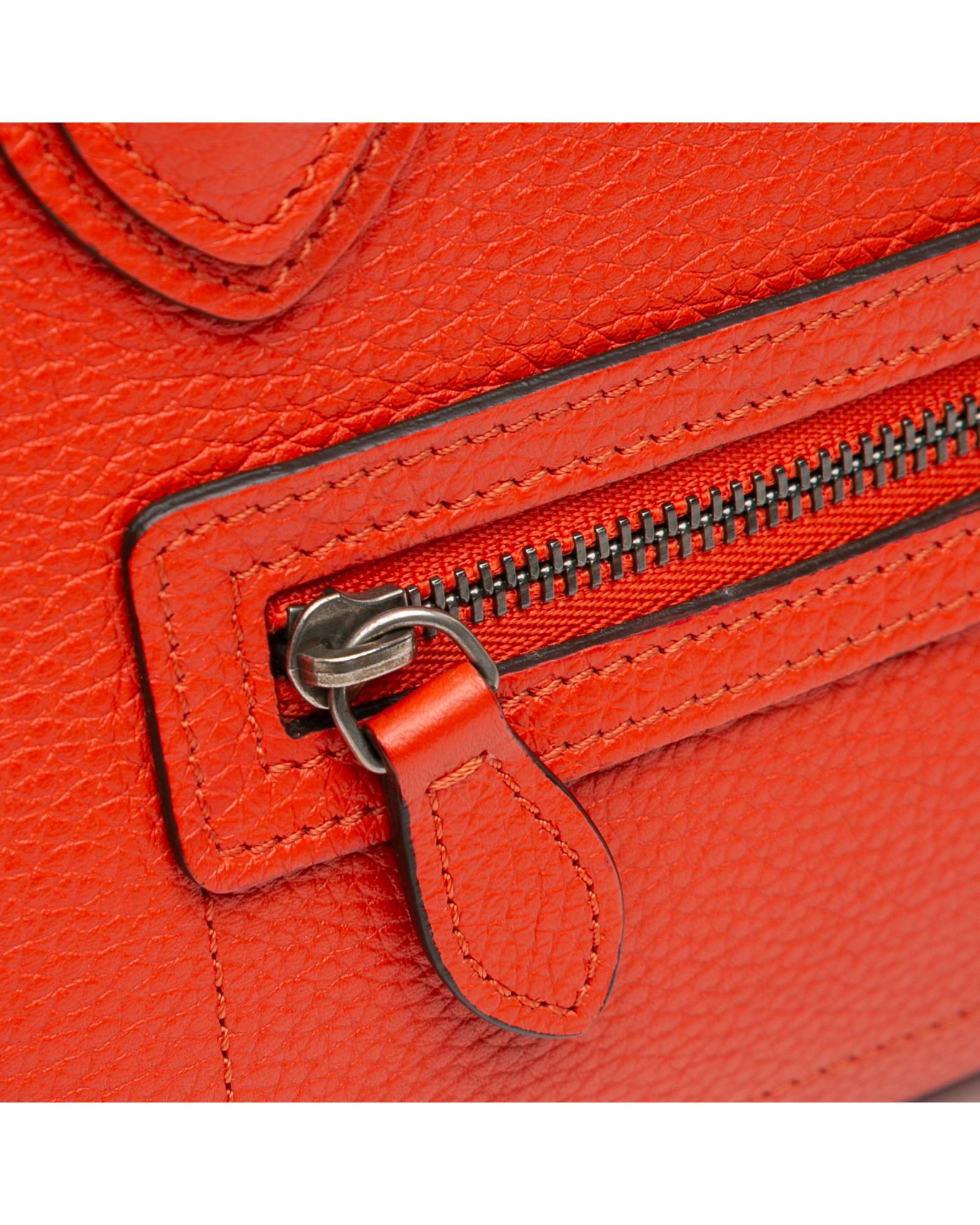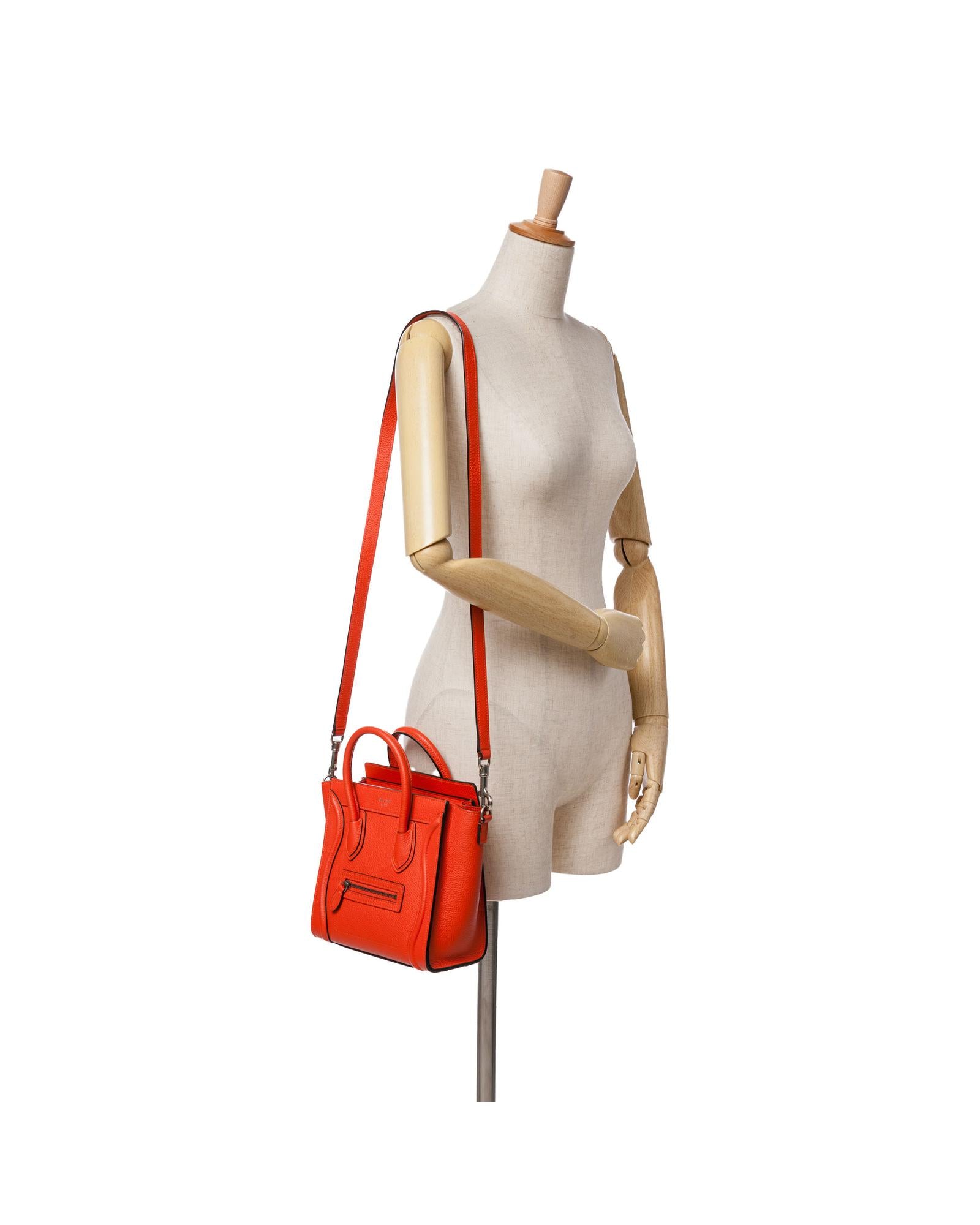 The Luggage Tote features a leather body rolled leather handles a detachable strap a top zip closure an exterior front zip pocket and interior zip and slip pockets. The exterior front and straps were repainted.Brand: Celine