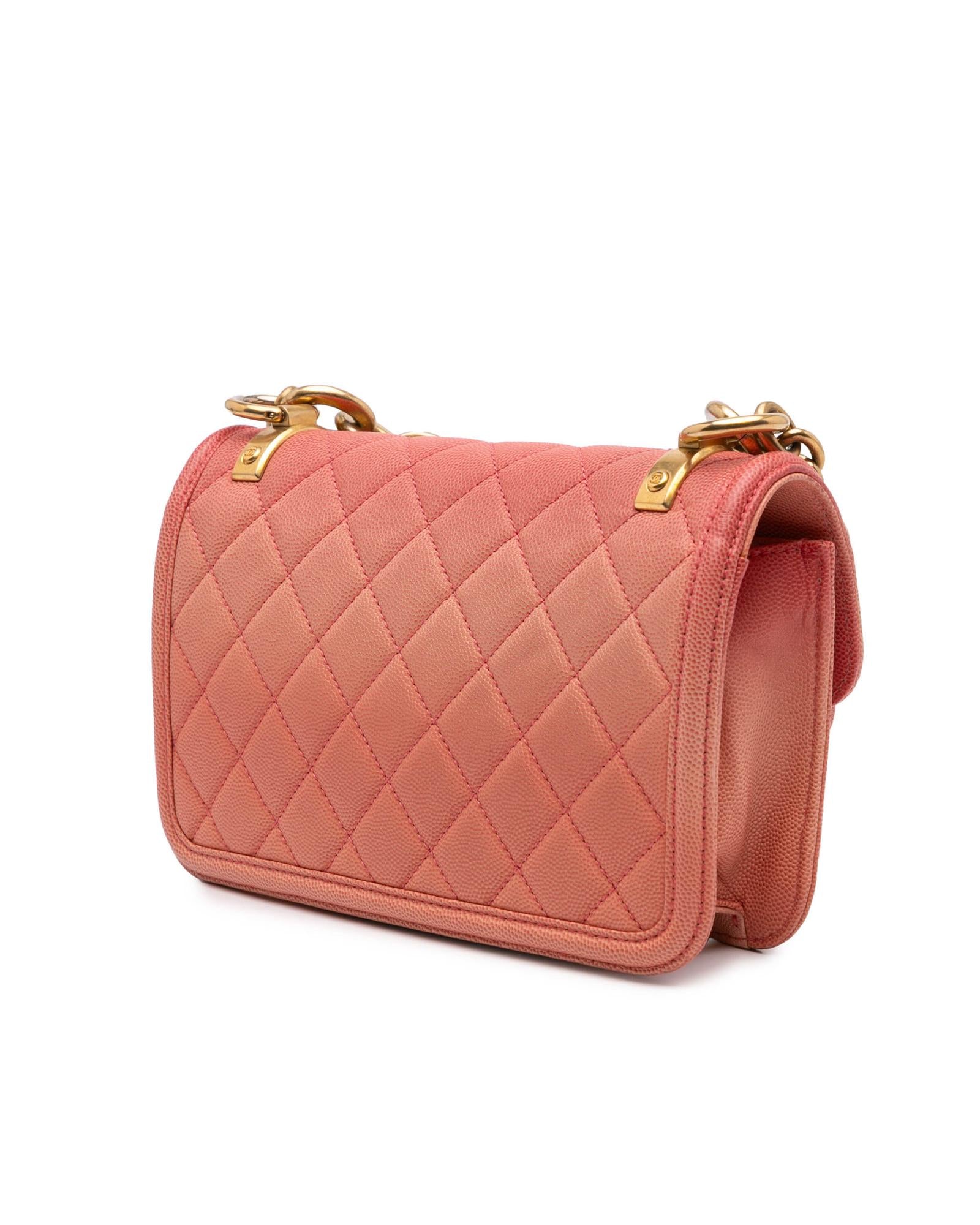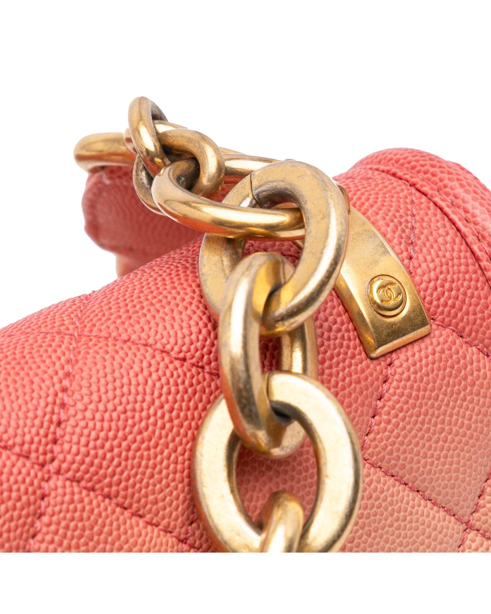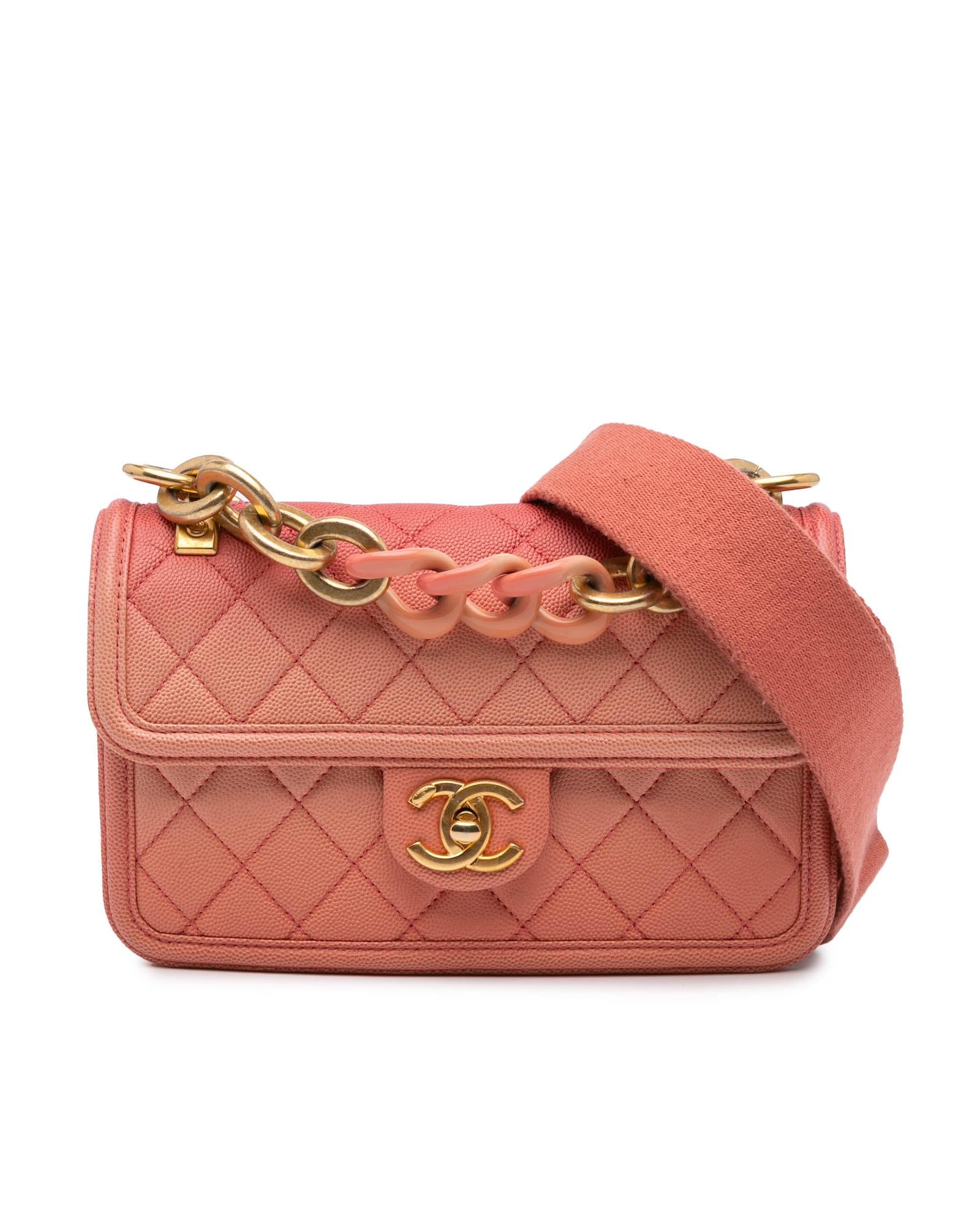 The Sunset On The Sea flap bag features a quilted caviar leather body a curb acrylic chain link handle an adjustable flat shoulder strap a front flap with CC turn-lock closure and an interior zip pocket.Brand: Chanel