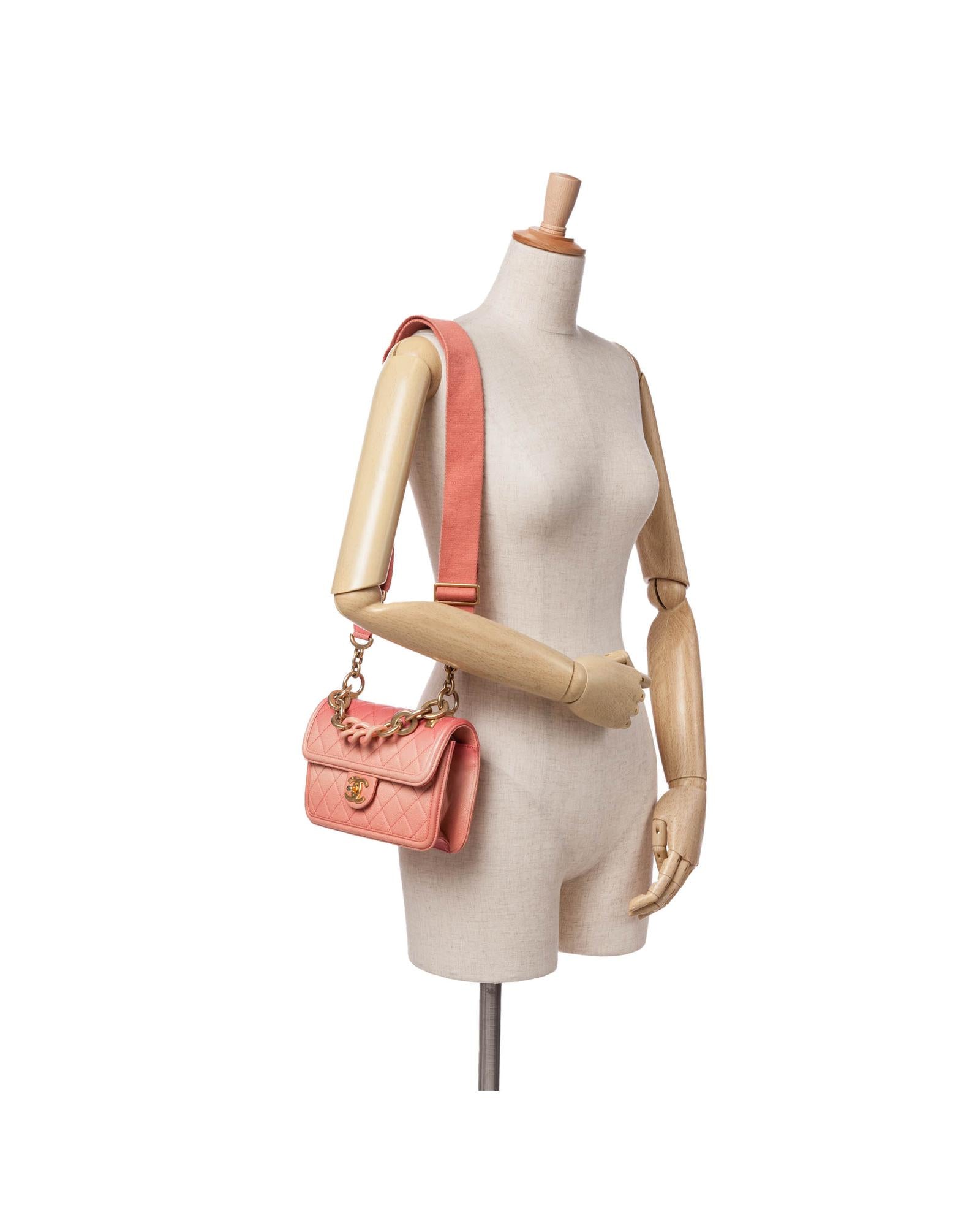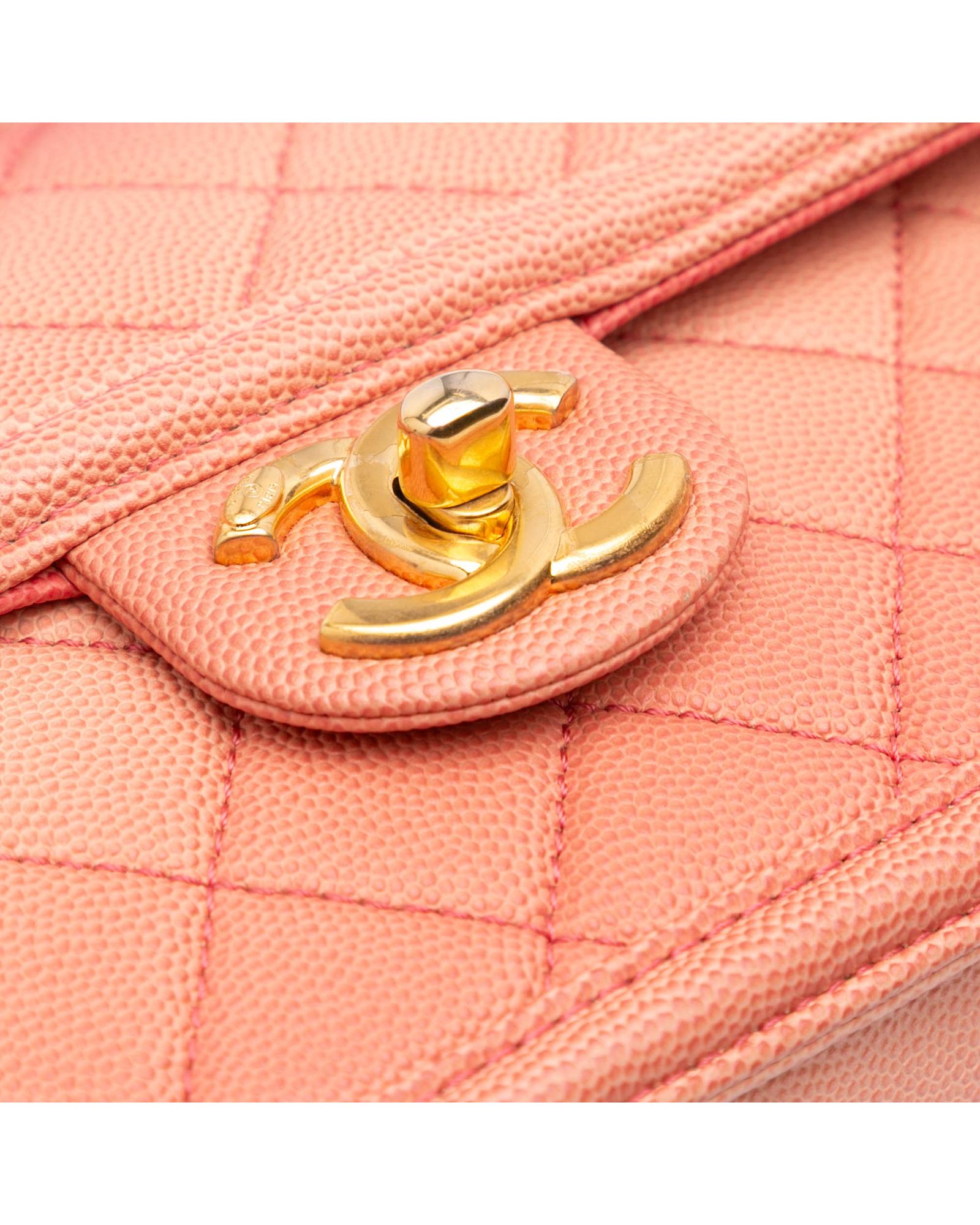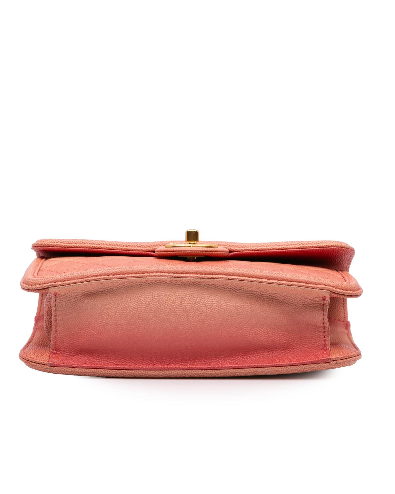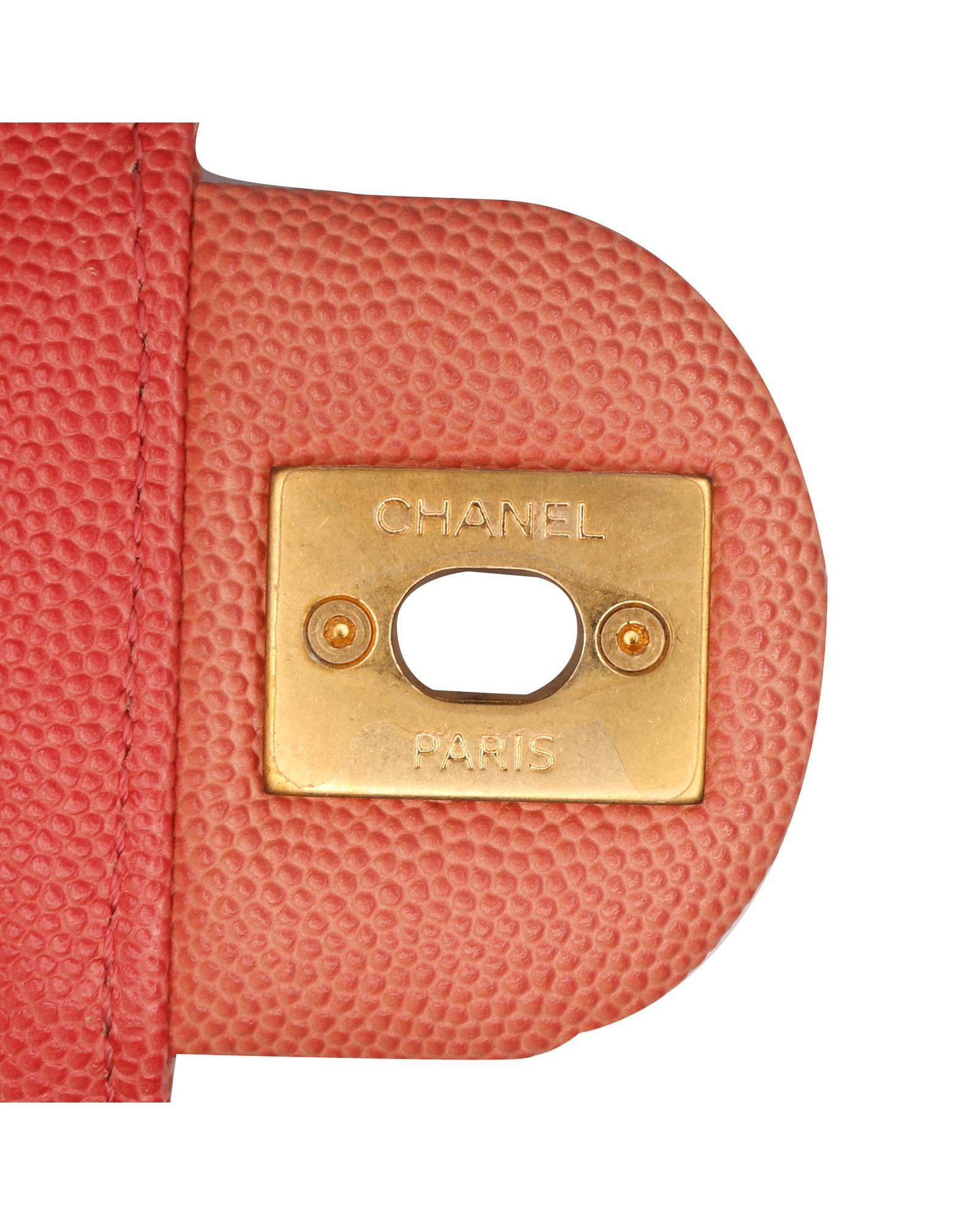 The Sunset On The Sea flap bag features a quilted caviar leather body a curb acrylic chain link handle an adjustable flat shoulder strap a front flap with CC turn-lock closure and an interior zip pocket.Brand: Chanel