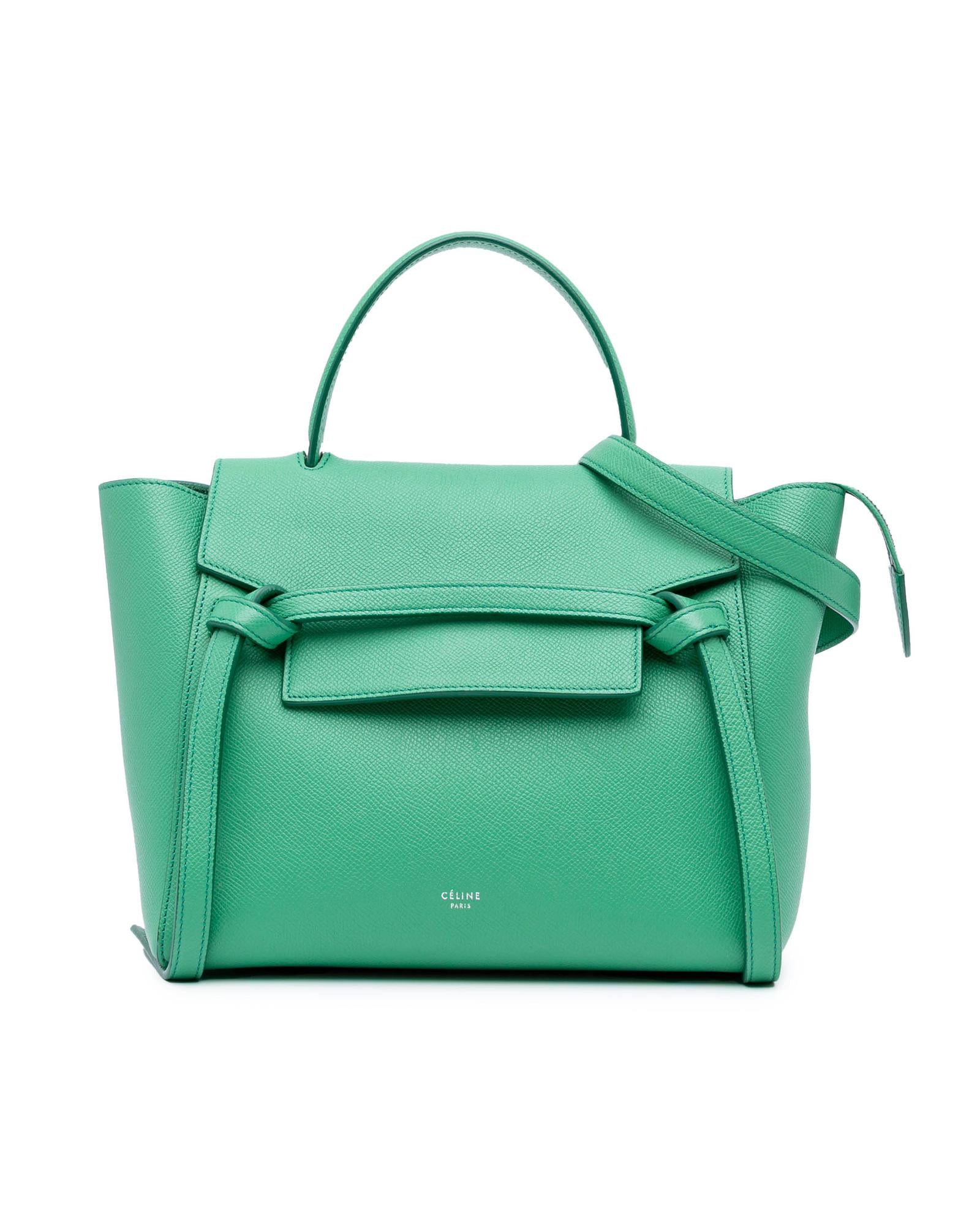 The Micro Belt Bag features a leather body a flat leather top handle a detachable flat leather strap a front flap with a top zip closure an exterior back zip pocket and interior slip pockets.Brand: Celine