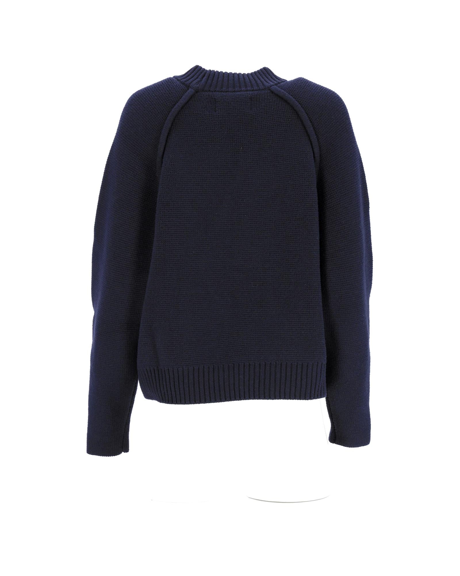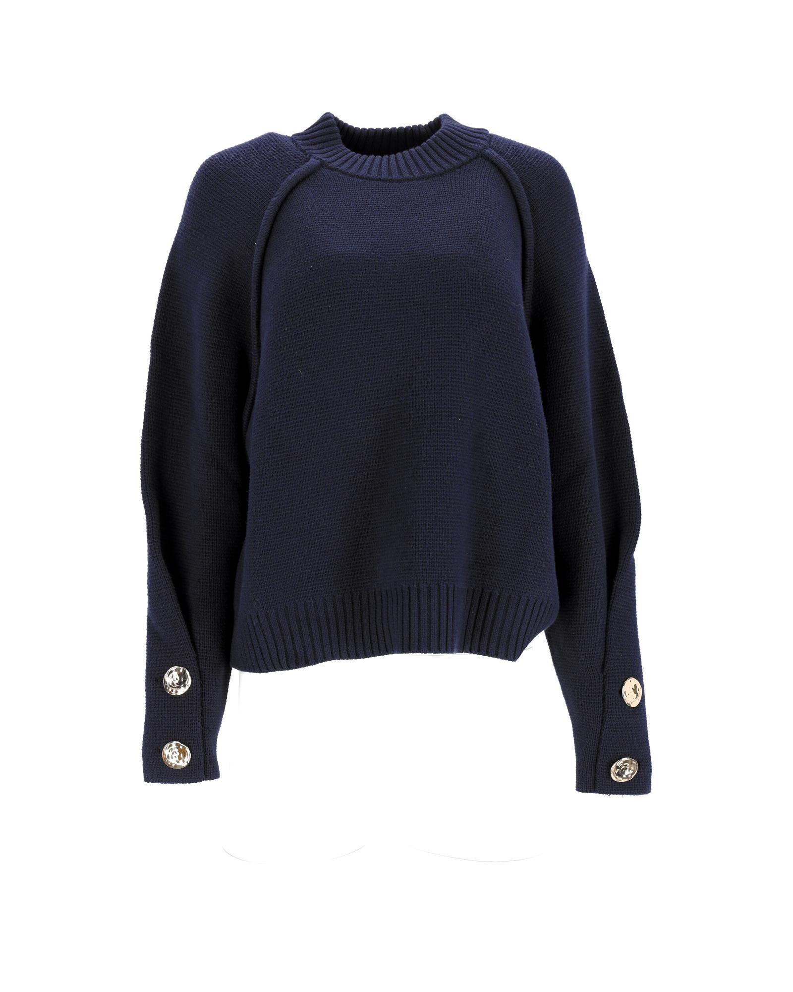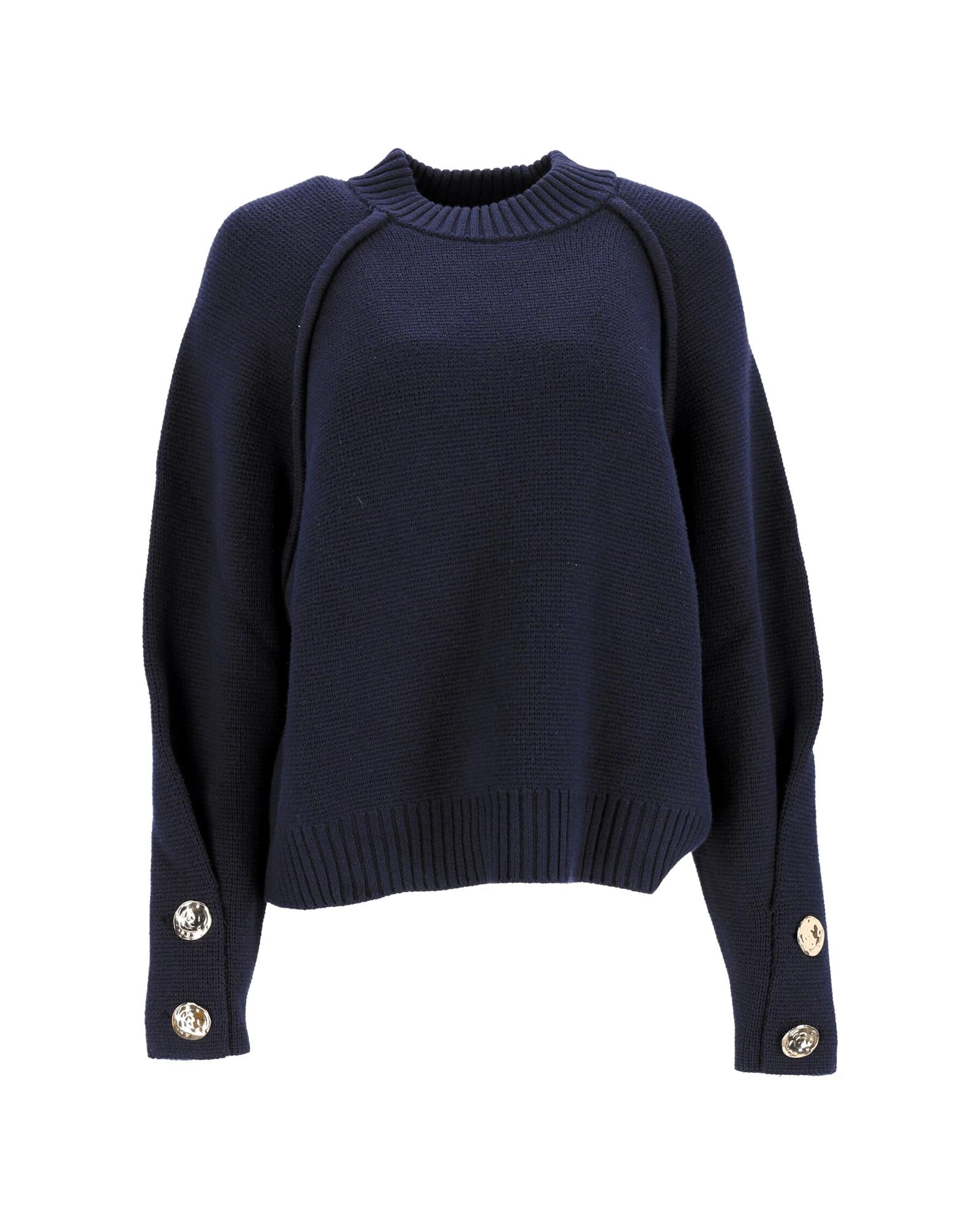 - Embellished Crewneck Sweater in Navy Blue Wool