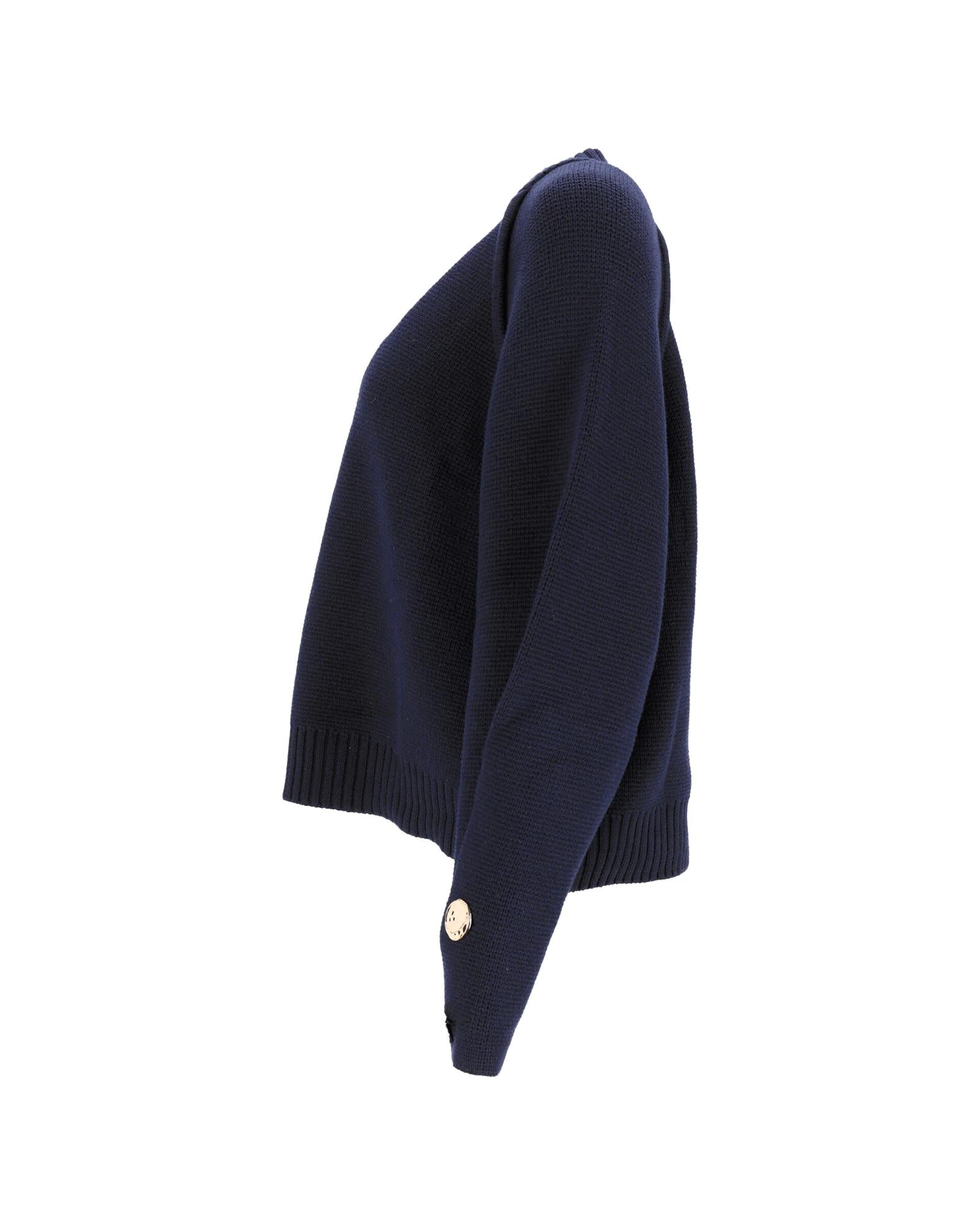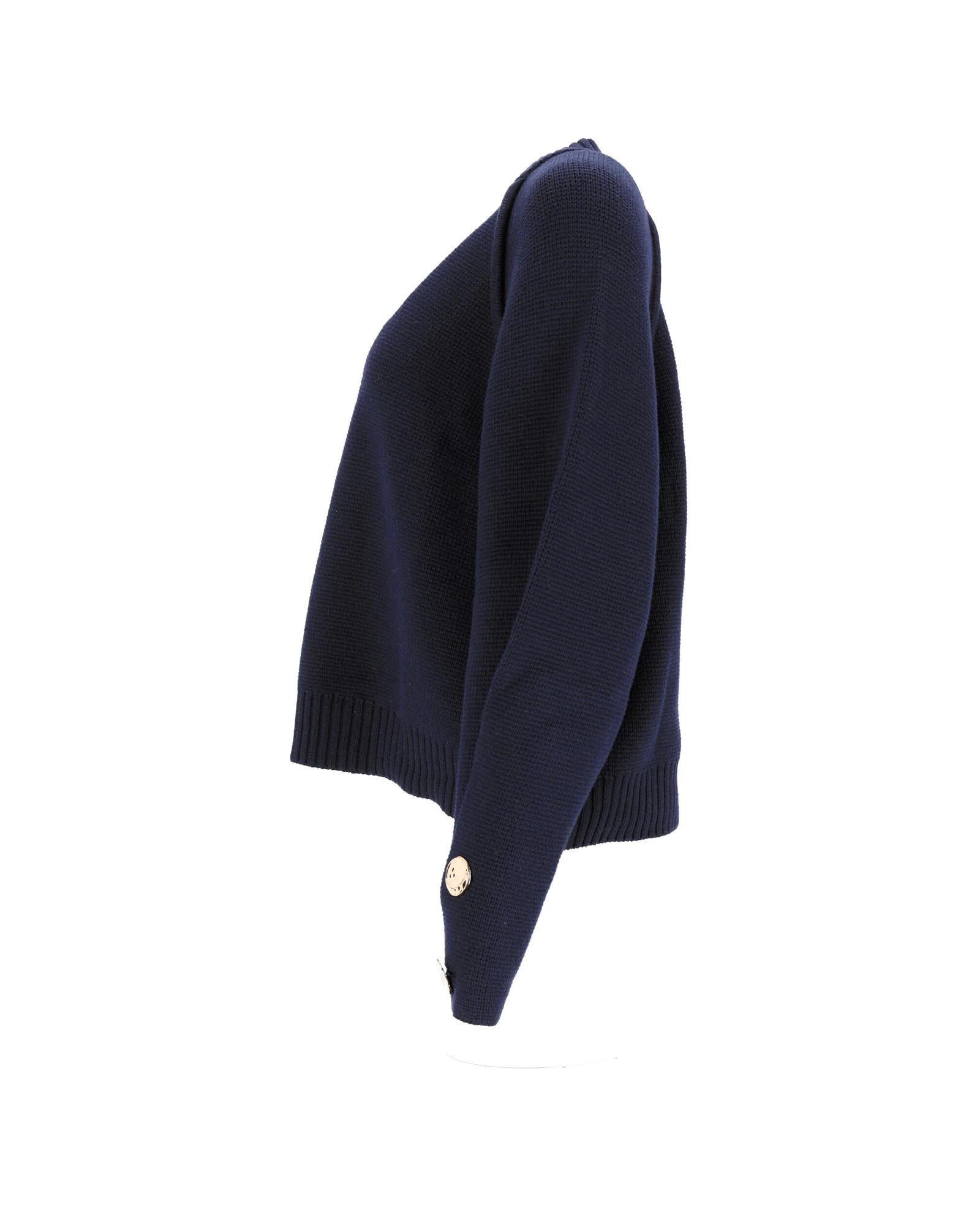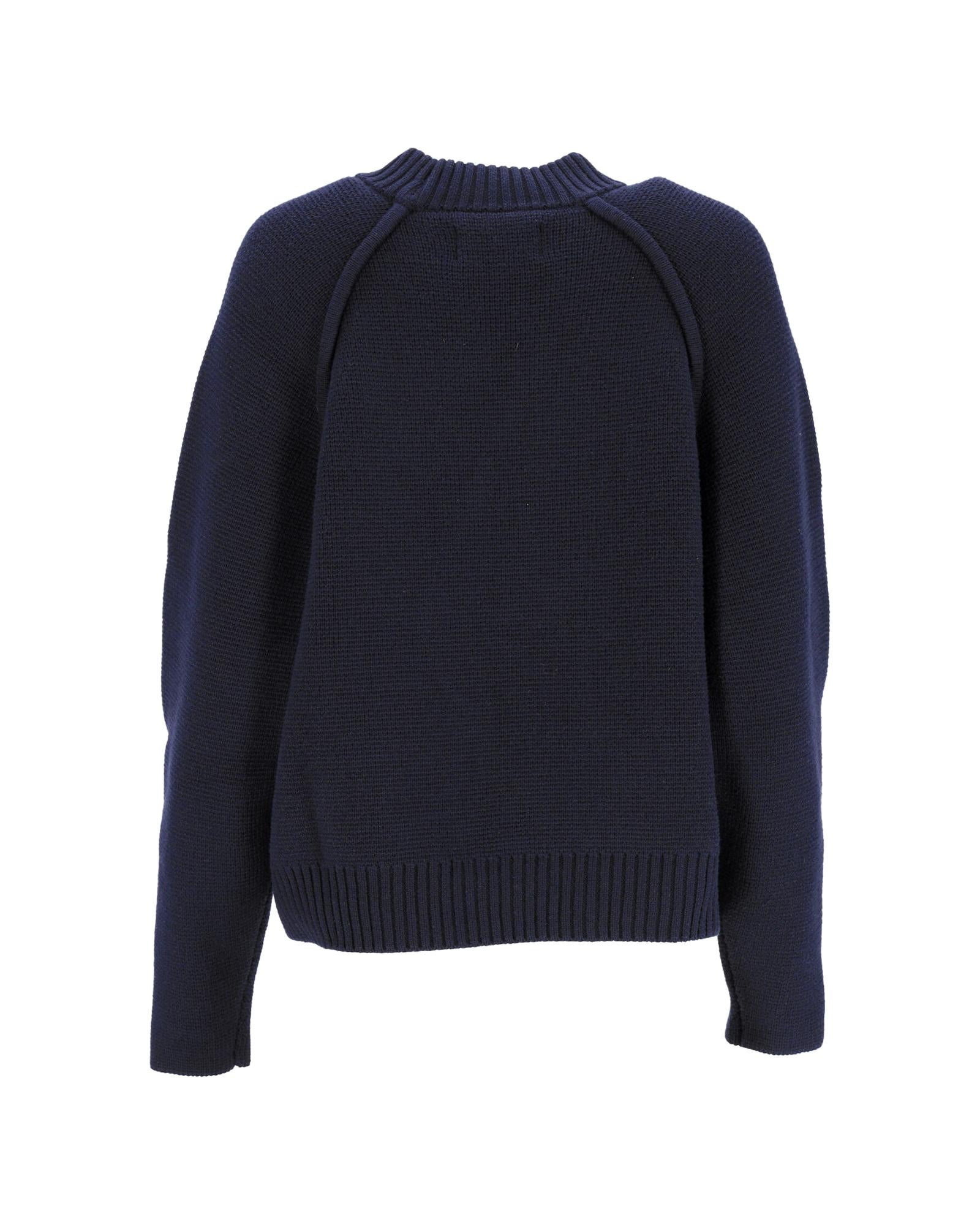 - Embellished Crewneck Sweater in Navy Blue Wool