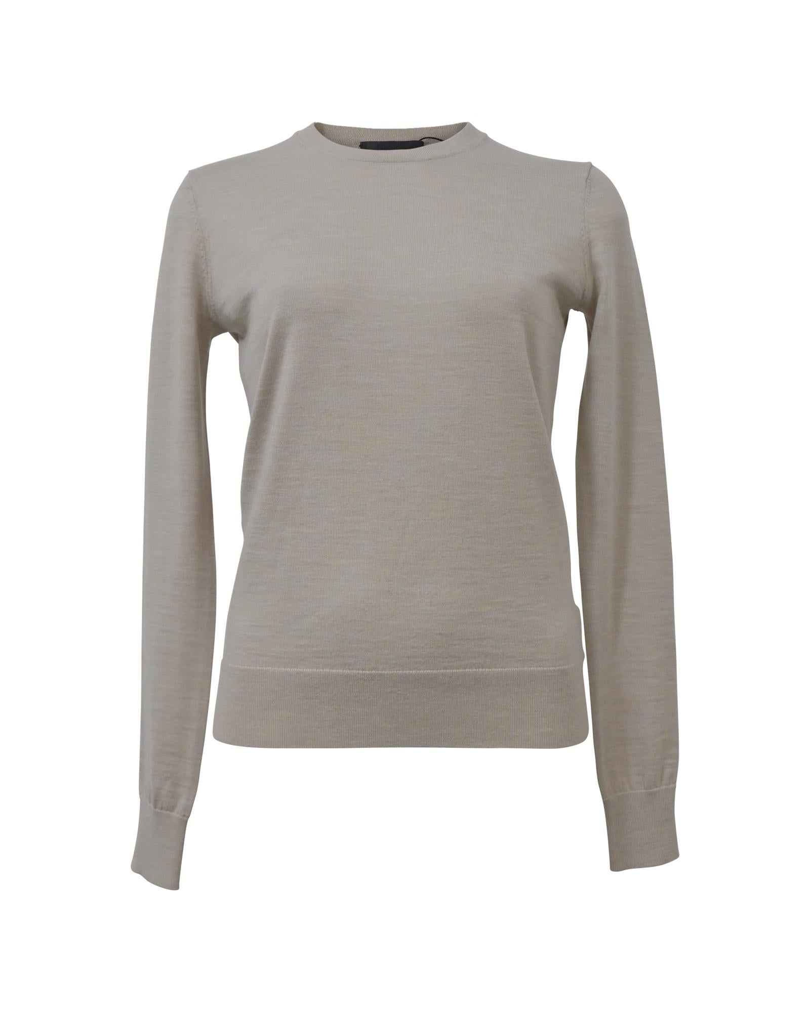 • Classic and versatile Theory Crewneck Regal Sweater in Ecru Wool