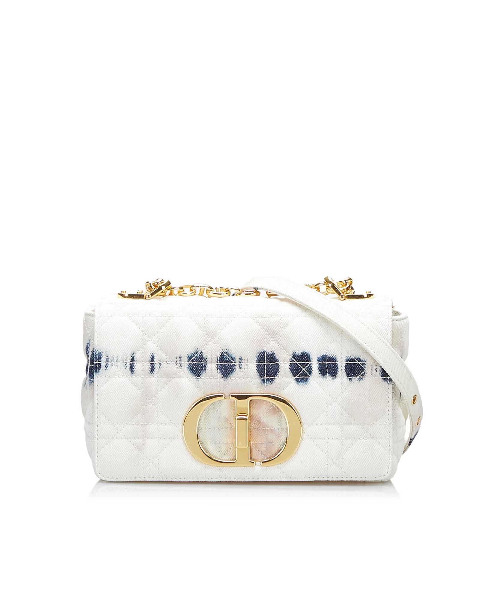 The Caro features a denim body a flat leather and chain shoulder strap a flap with turn lock closure and interior zip and slip pockets.Brand: Dior Vintage