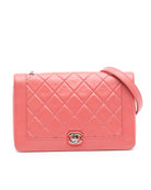 This shoulder bag features a quilted crumpled calf leather body leather-woven chain link straps a top flap with CC turn-lock closure an exterior back slip pocket and an interior zip pocket.Brand: Chanel Vintage