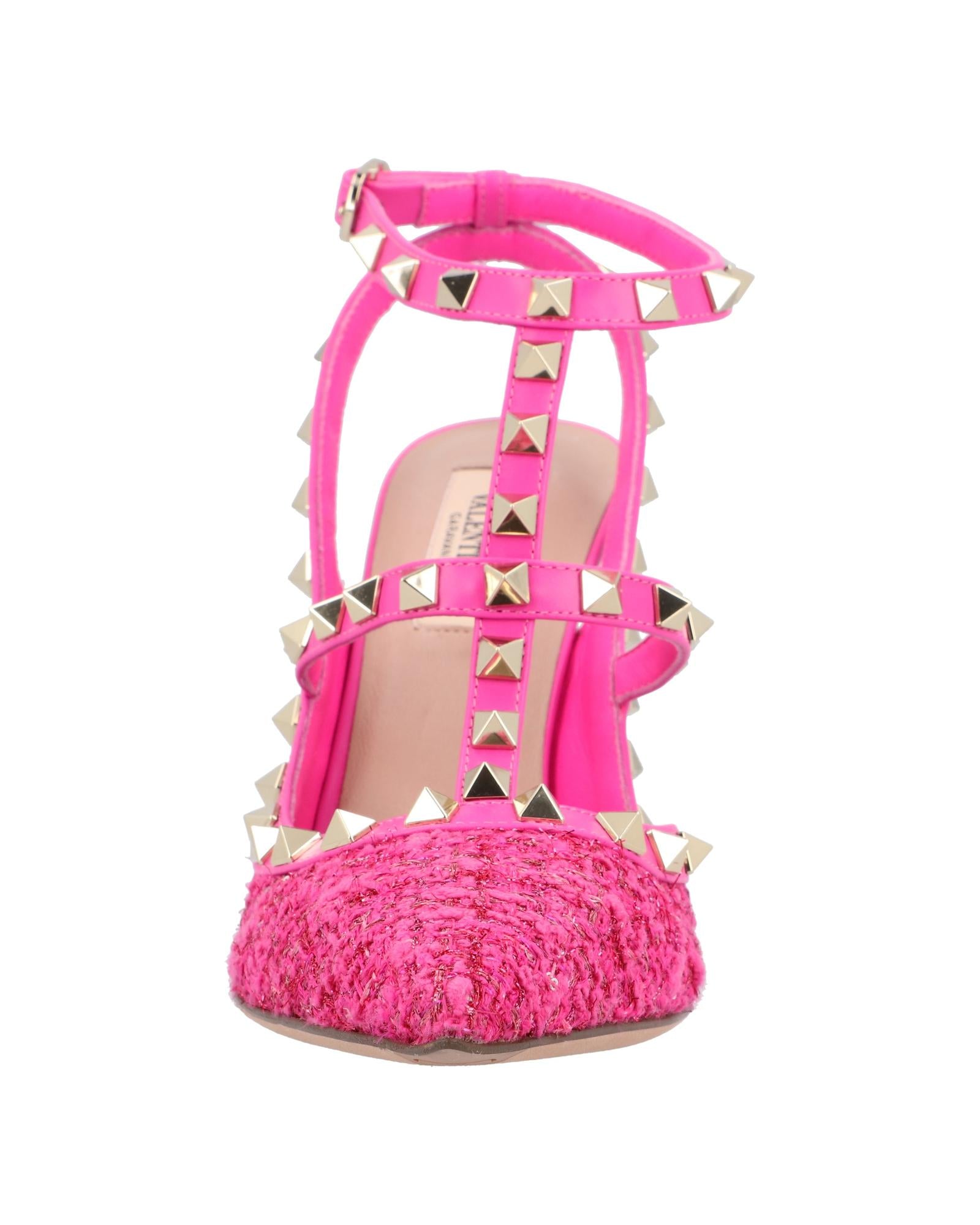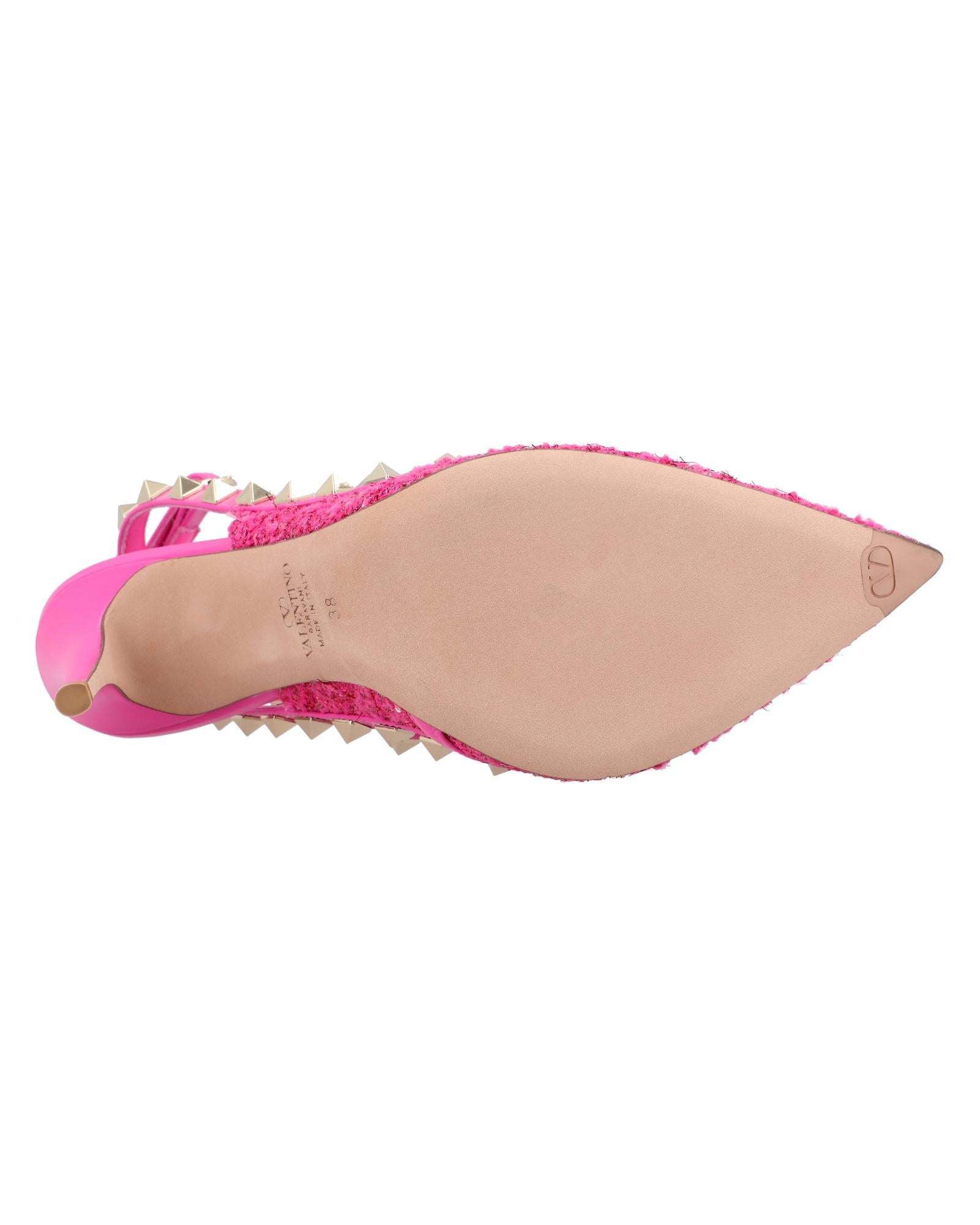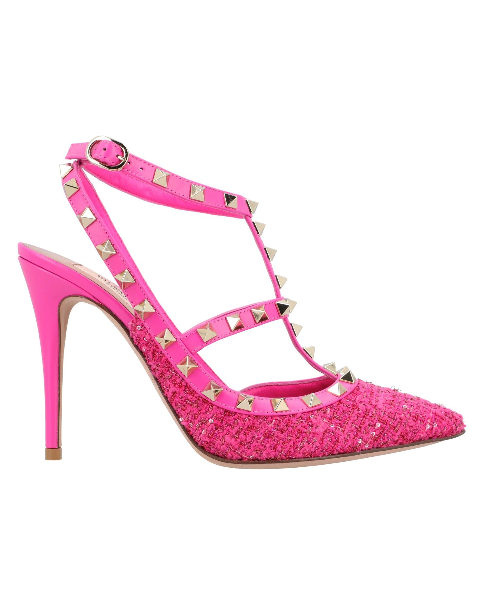 - Valentino Caged 100 Tweed & Leather Pump in pink