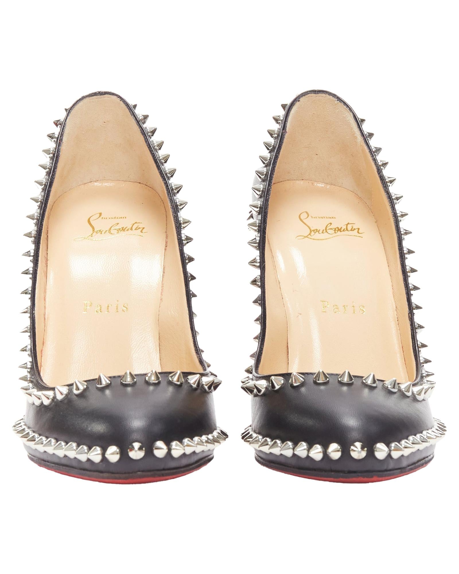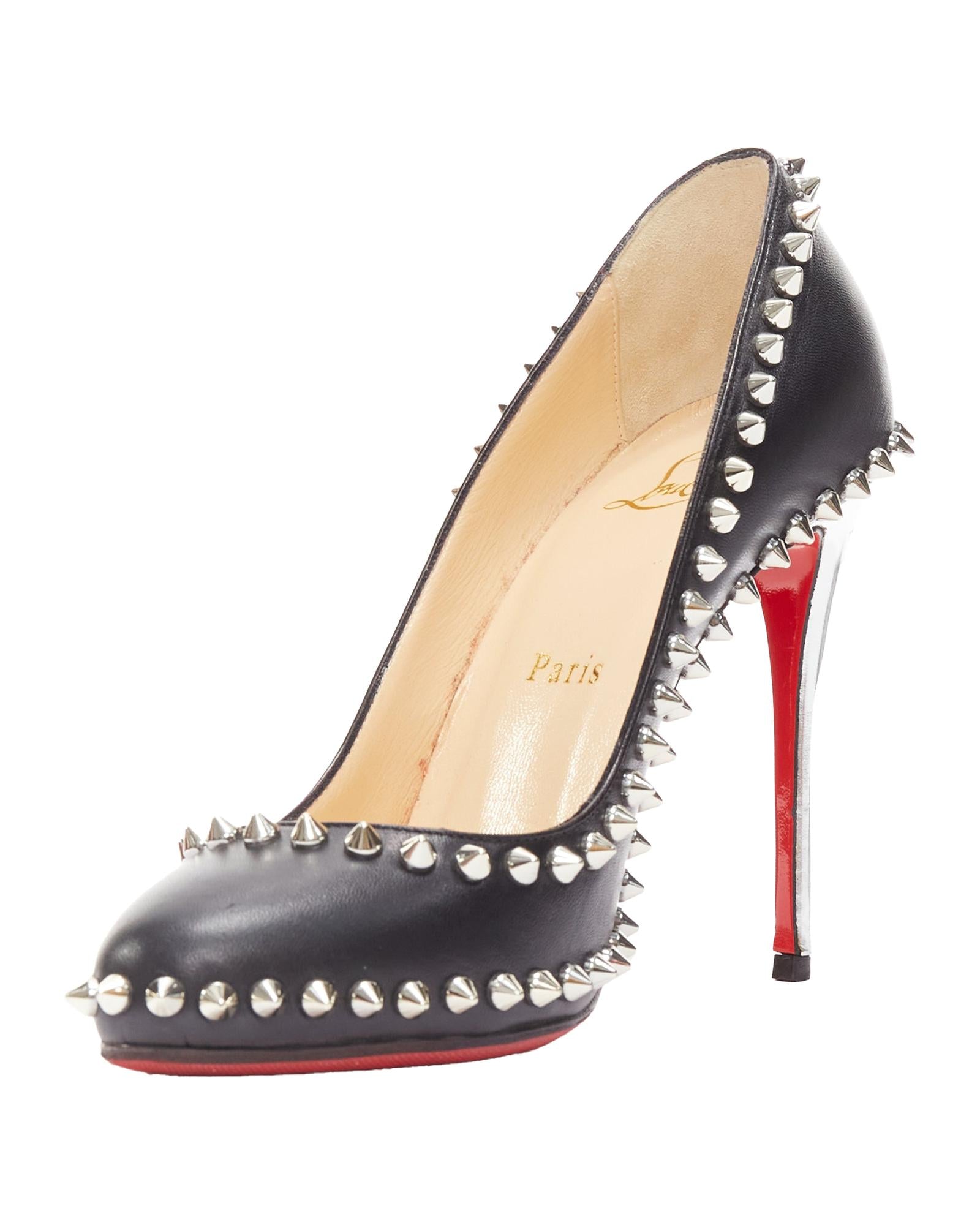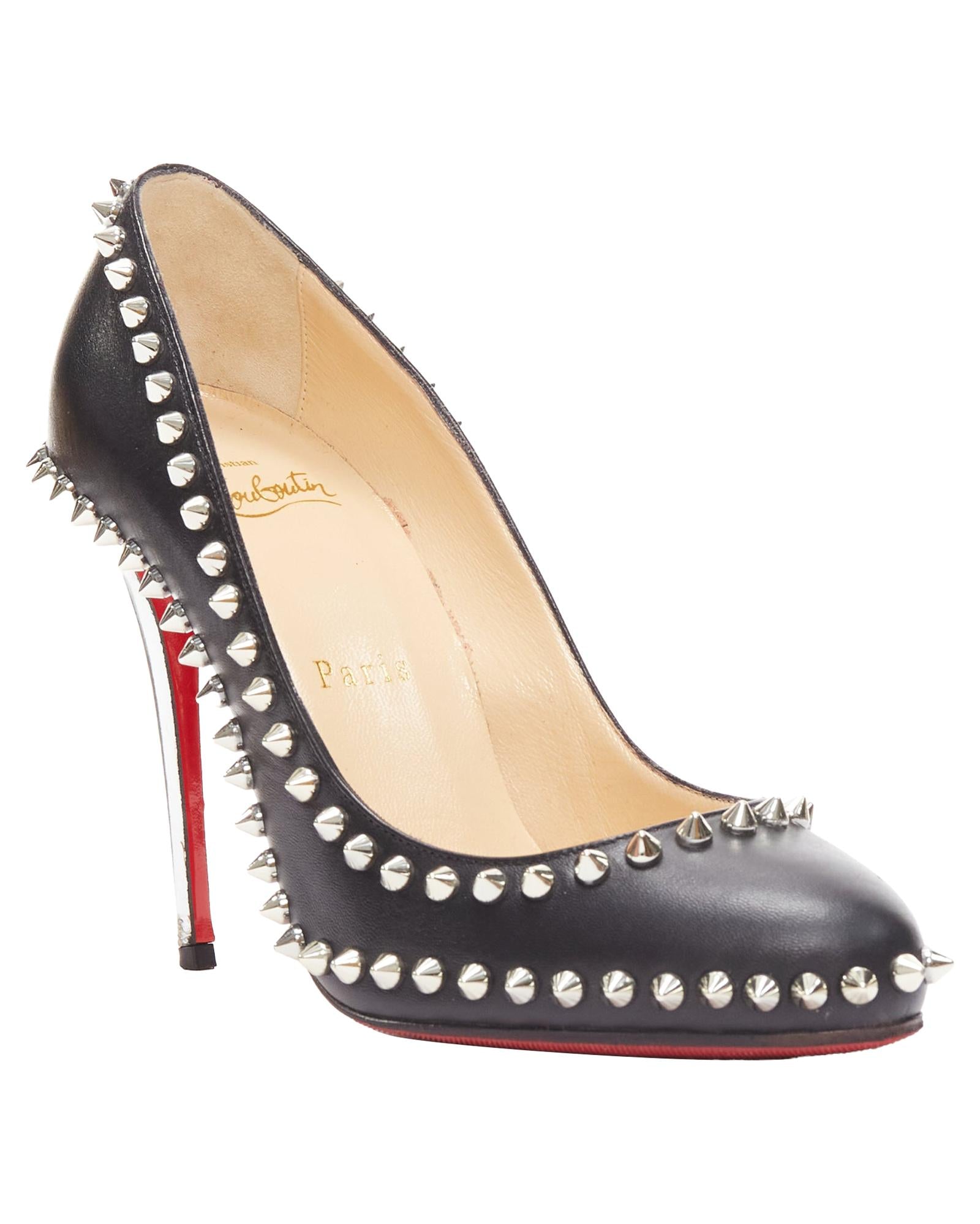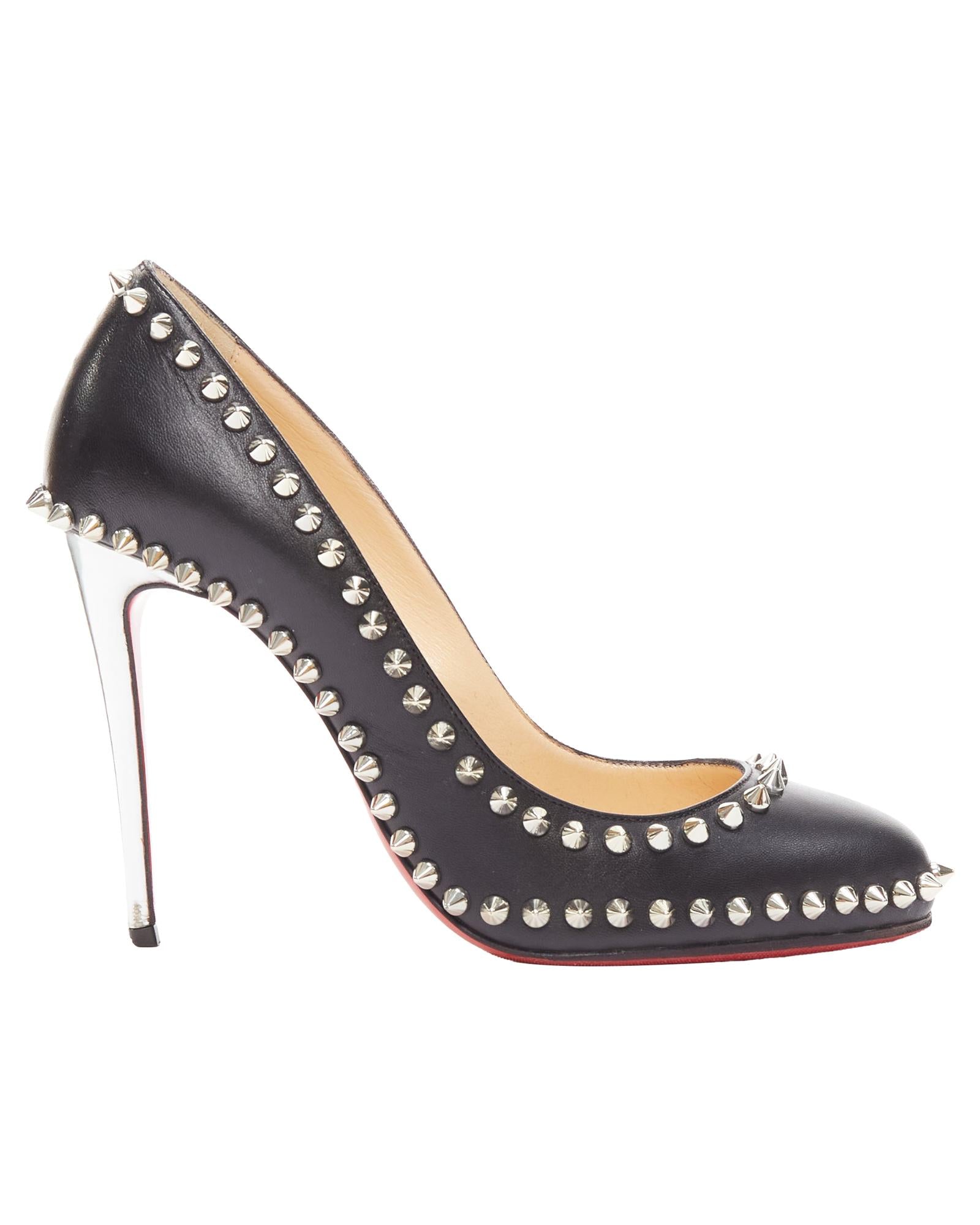 Pre-owned Elegant Pointed-Toe Pumps with Studded Detail and High Heel