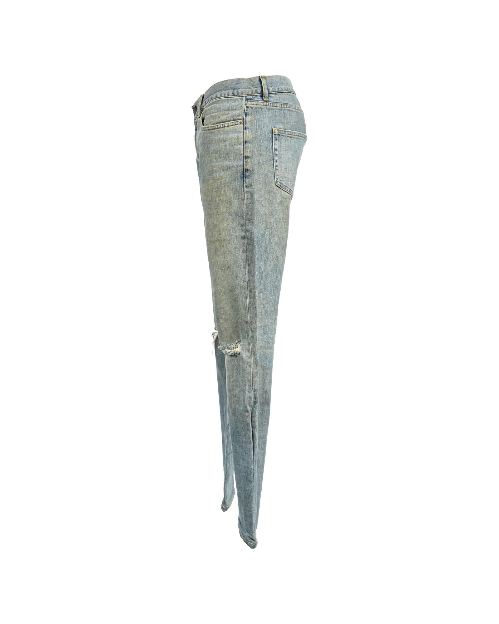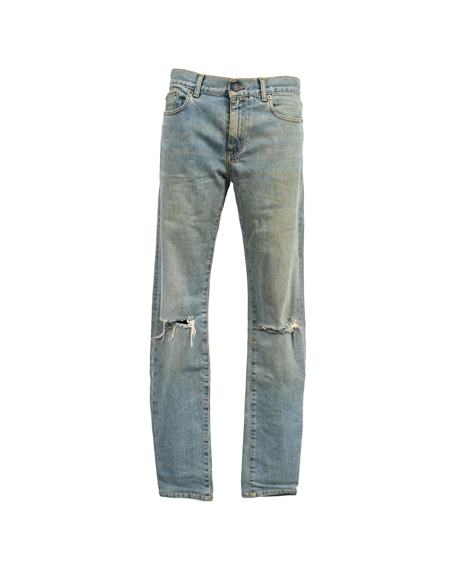 - Saint Laurent Distressed Washed Jeans in Blue Cotton