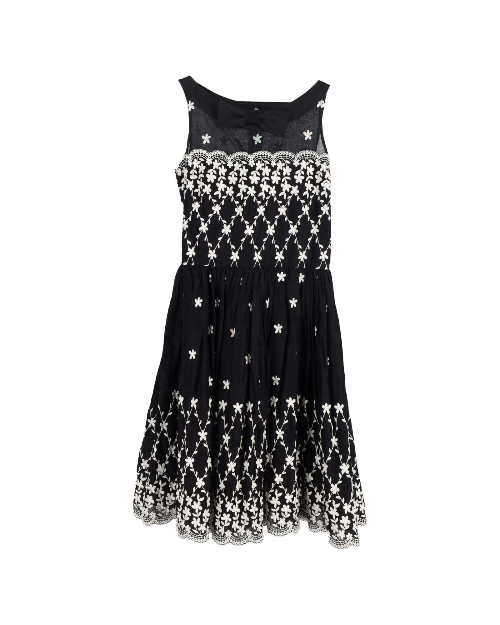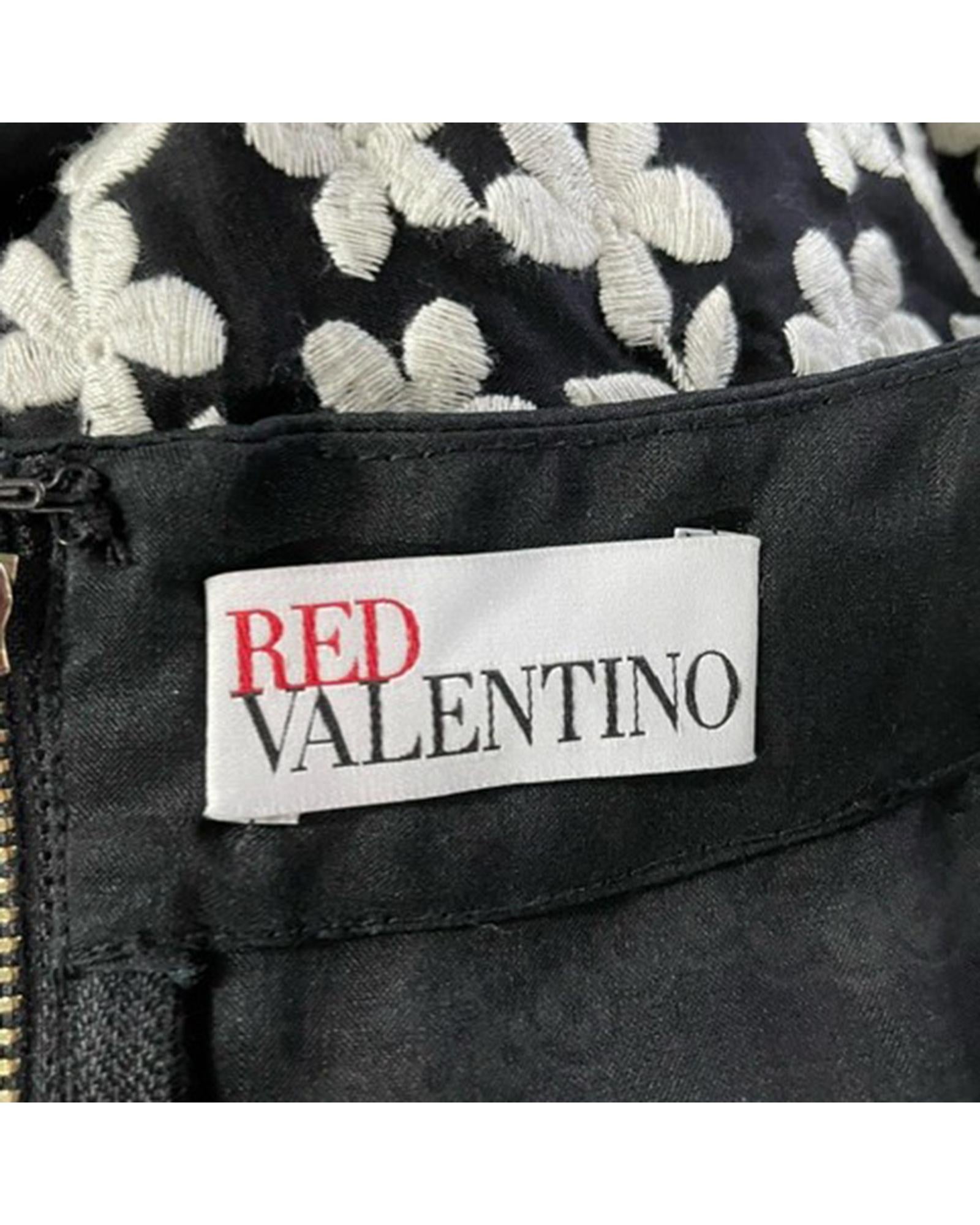 • Red Valentino Mini Embroidered Dress in Black Cotton
