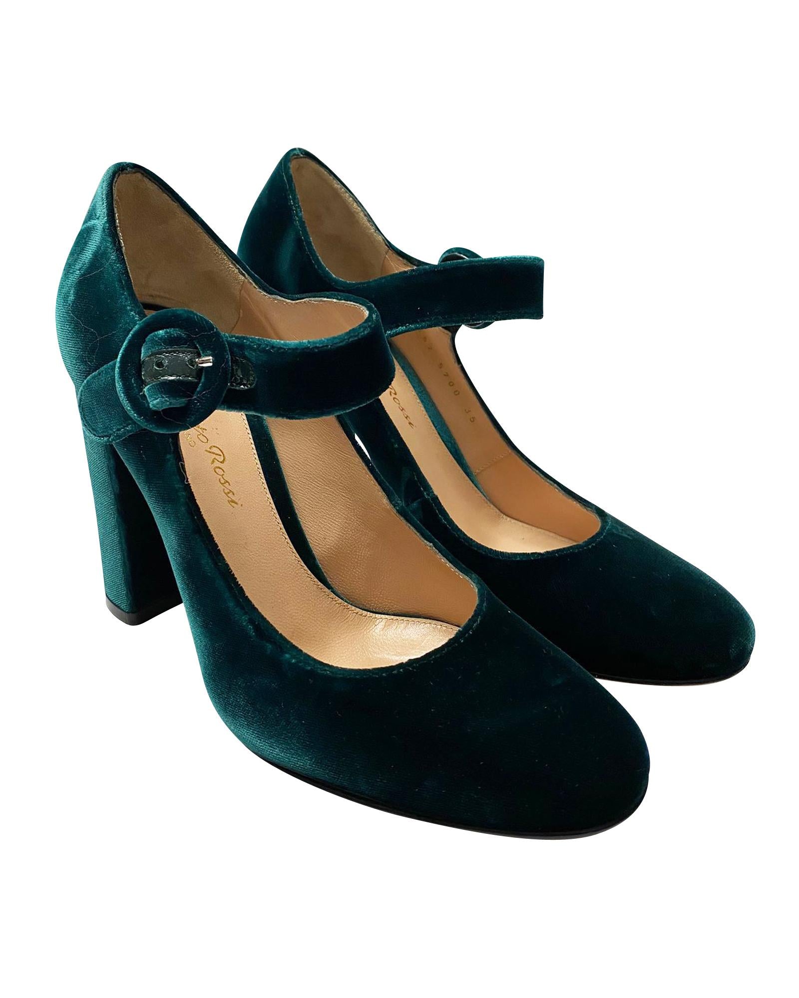 Pre-owned Velvet Buckle Heels