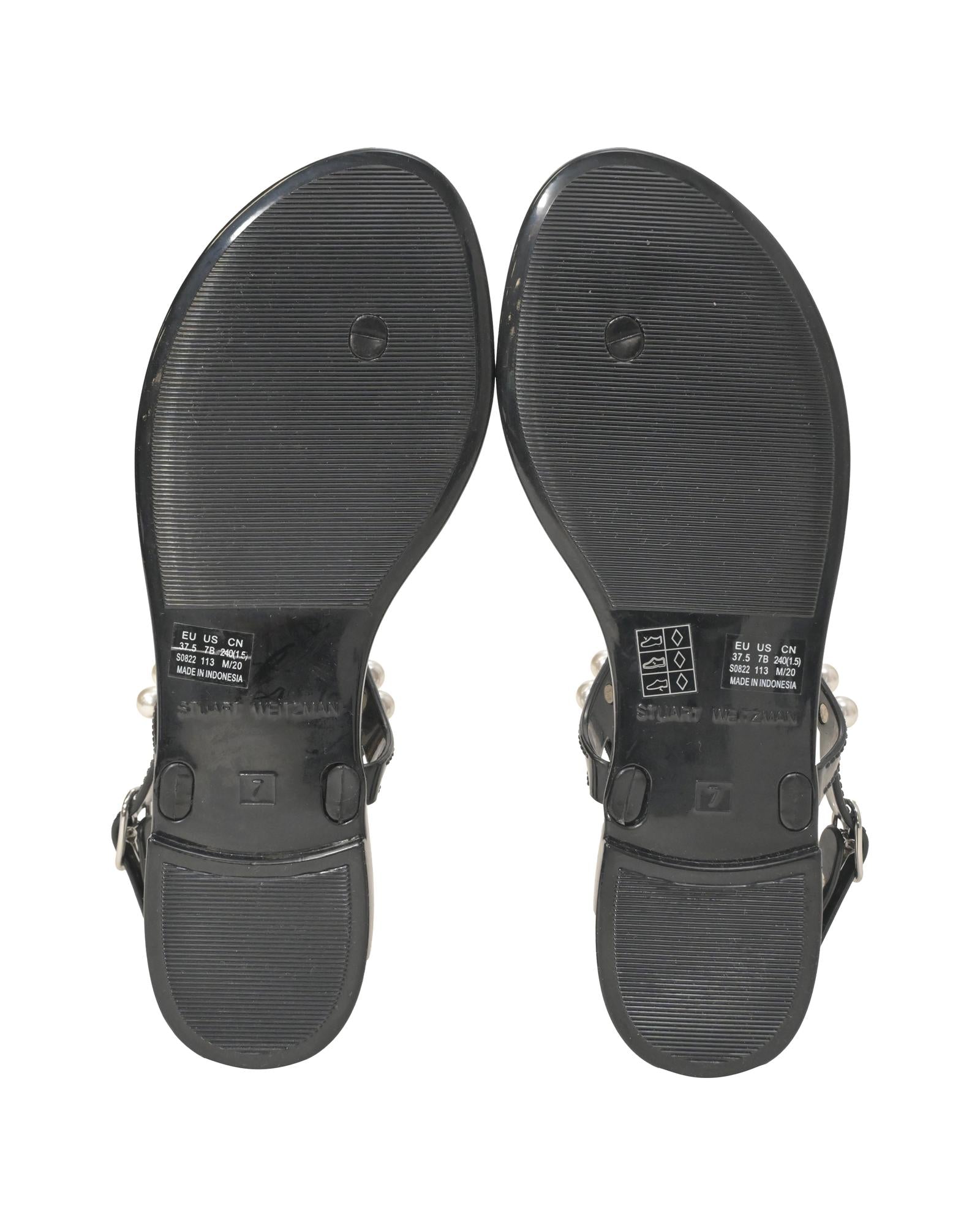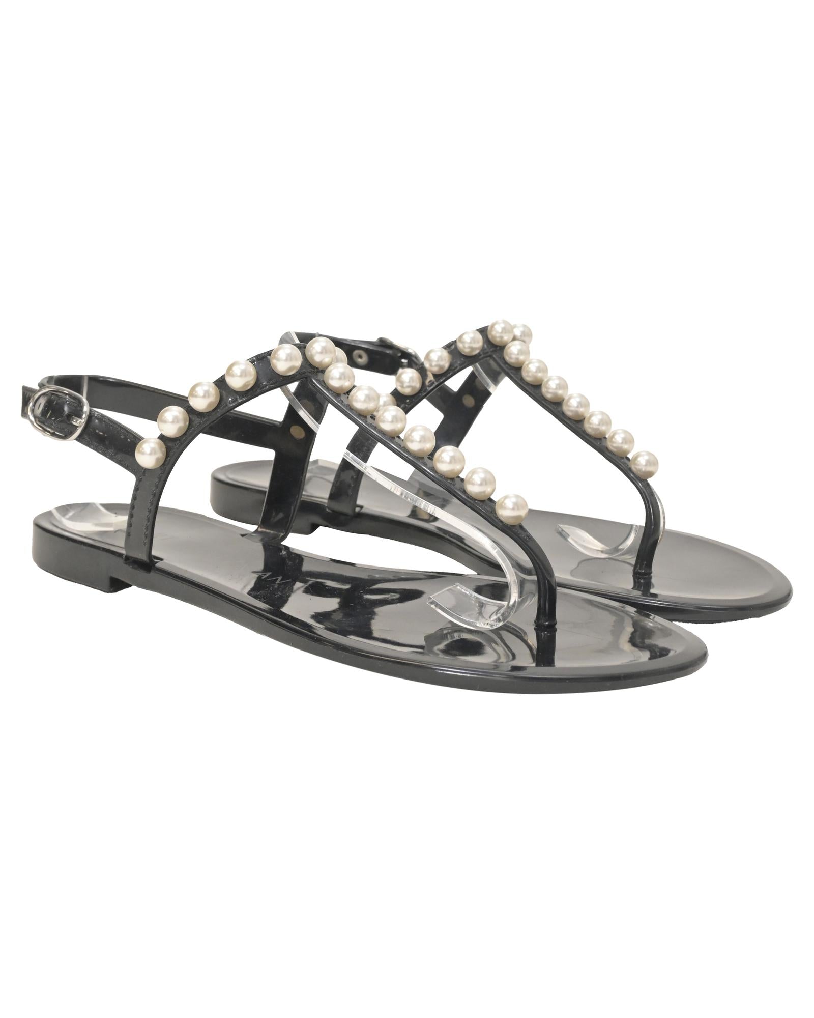 Pre-owned Pearl Embellished Flat Sandals