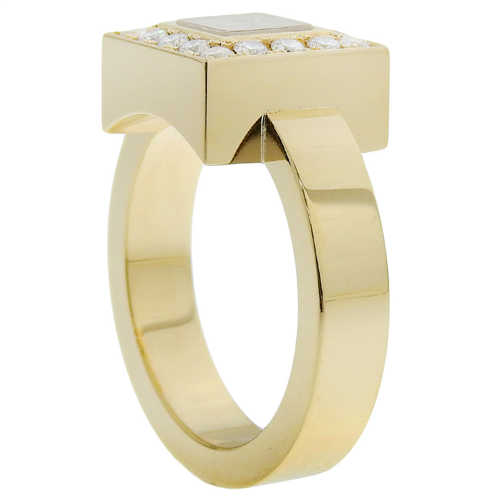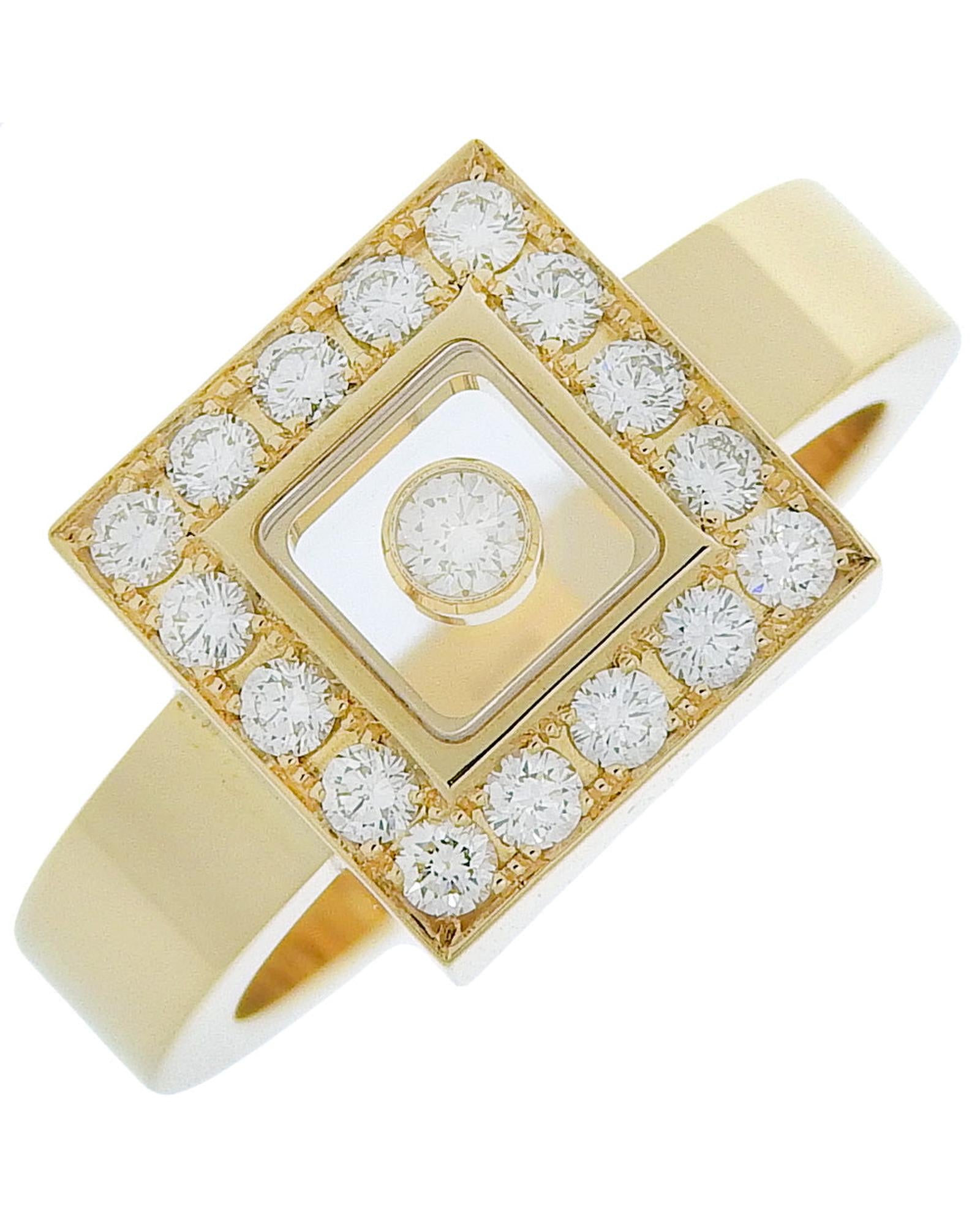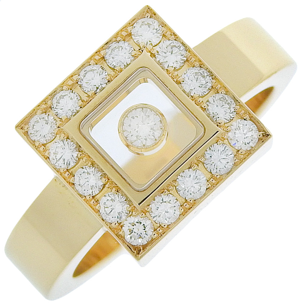 Brand: Chopard Model: Happy diamonds Color: Gold Material: Yellow Gold Inclusions: / Dimensions: Size 50 Ring width 10mm Weight] Approx. 10.8g Serial number: 3020384 Country of origin: Switzerland Condition: AB - good condition. Introducing the Chopard Happy Diamonds Square Ring a true epitome of elegance in the world of ladies' accessories. This exquisite piece hails from the prestigious jewelry traditions of Switzerland renowned for its craftsmanship and precision. Crafted from luxurious K18 yellow gold and adorned with dazzling diamonds this ring embodies a fusion of opulence and sophistication. As for its condition you may observe some subtle minute scratches on the metal part which are minor imperfections in an otherwise splendid jewelry piece adding a touch of character to its allure. We recommend that you look at all the pictures before making your purchase to ensure that you are satisfied with the condition of the item.