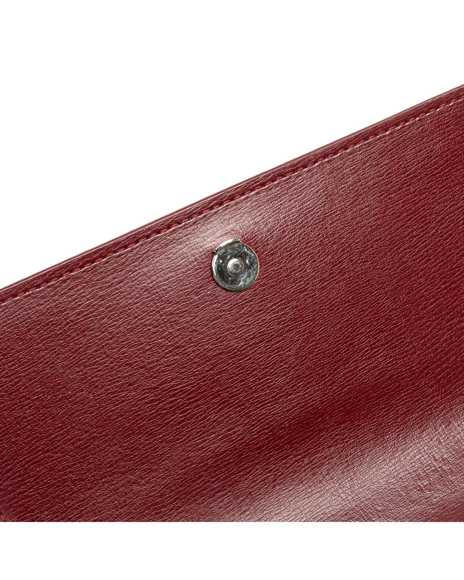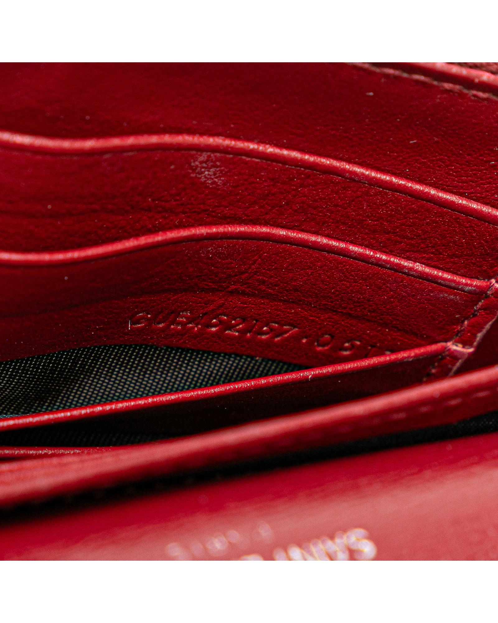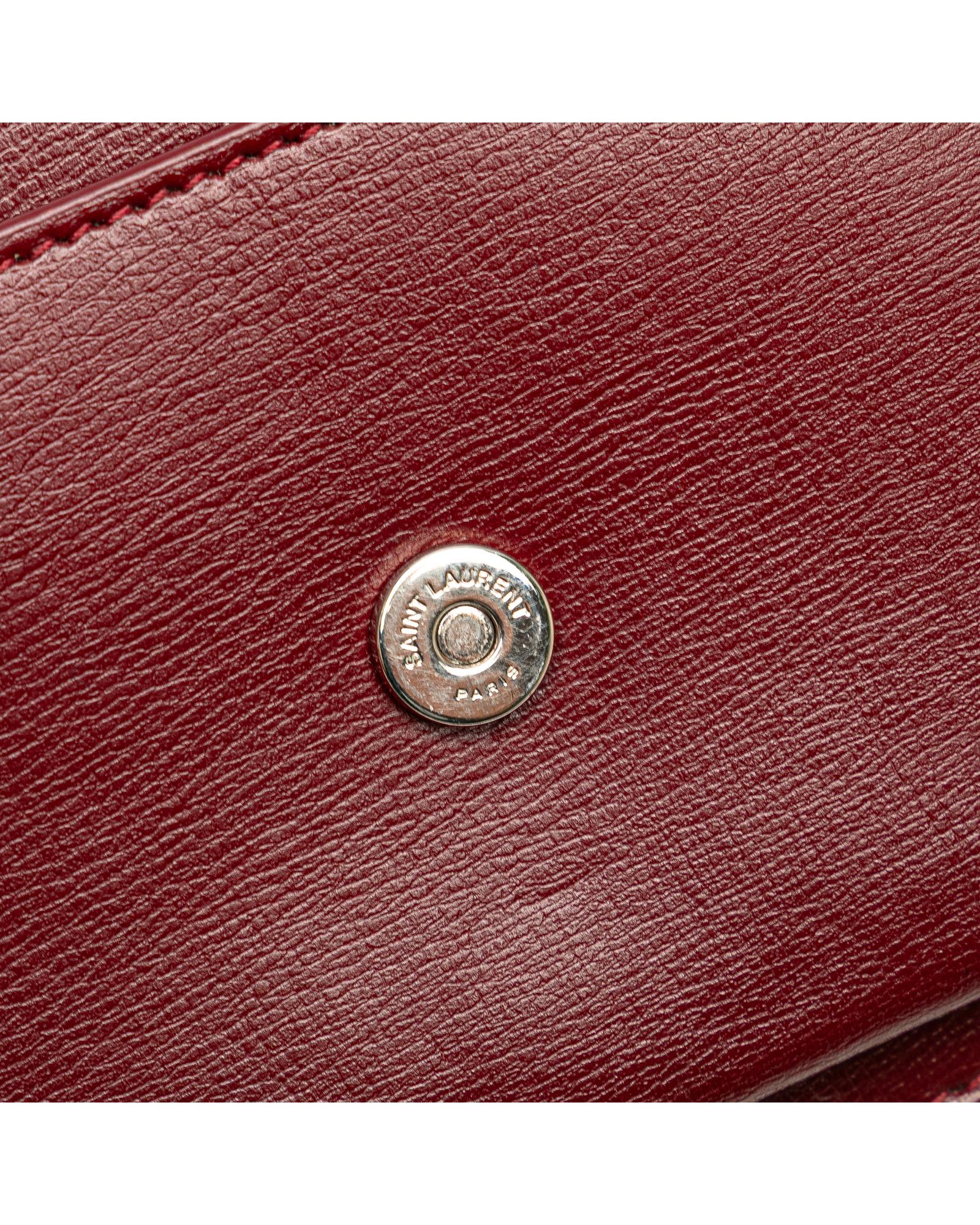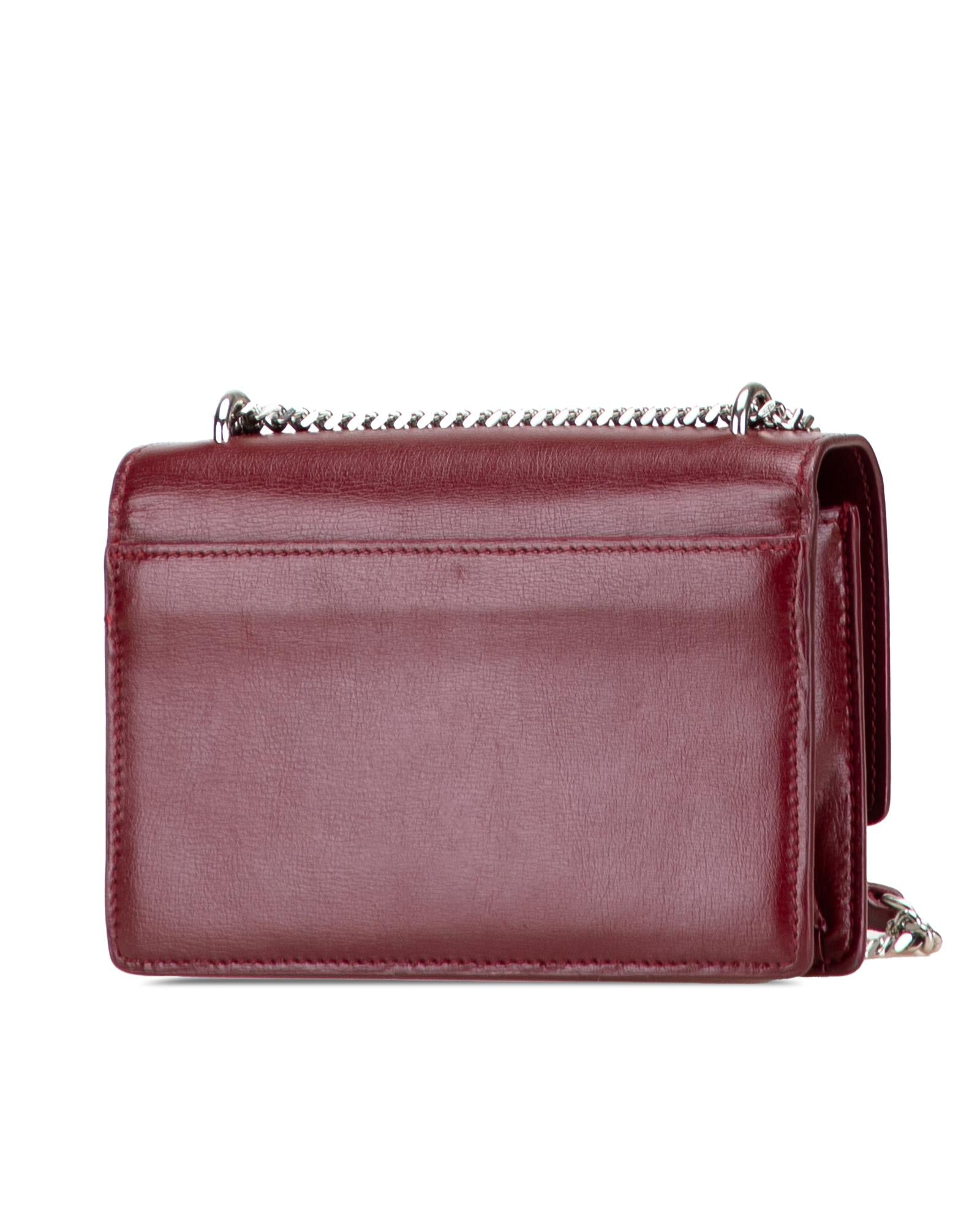 The Sunset chain wallet features a leather body a chain link shoulder strap with leather guard a top flap with magnetic snap button closure an exterior front open pocket and interior zip and slip compartments.Brand: Saint Laurent Vintage