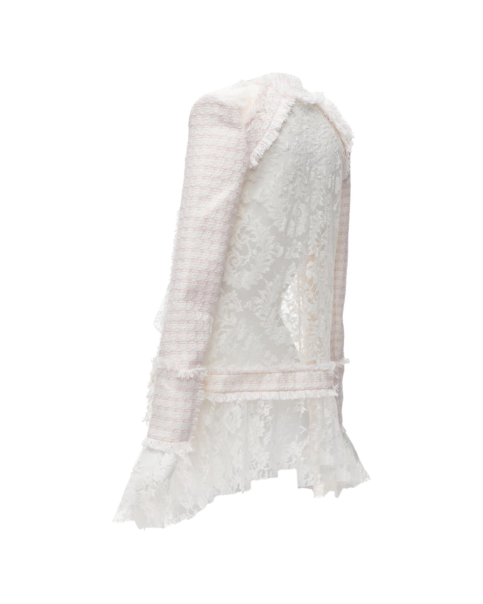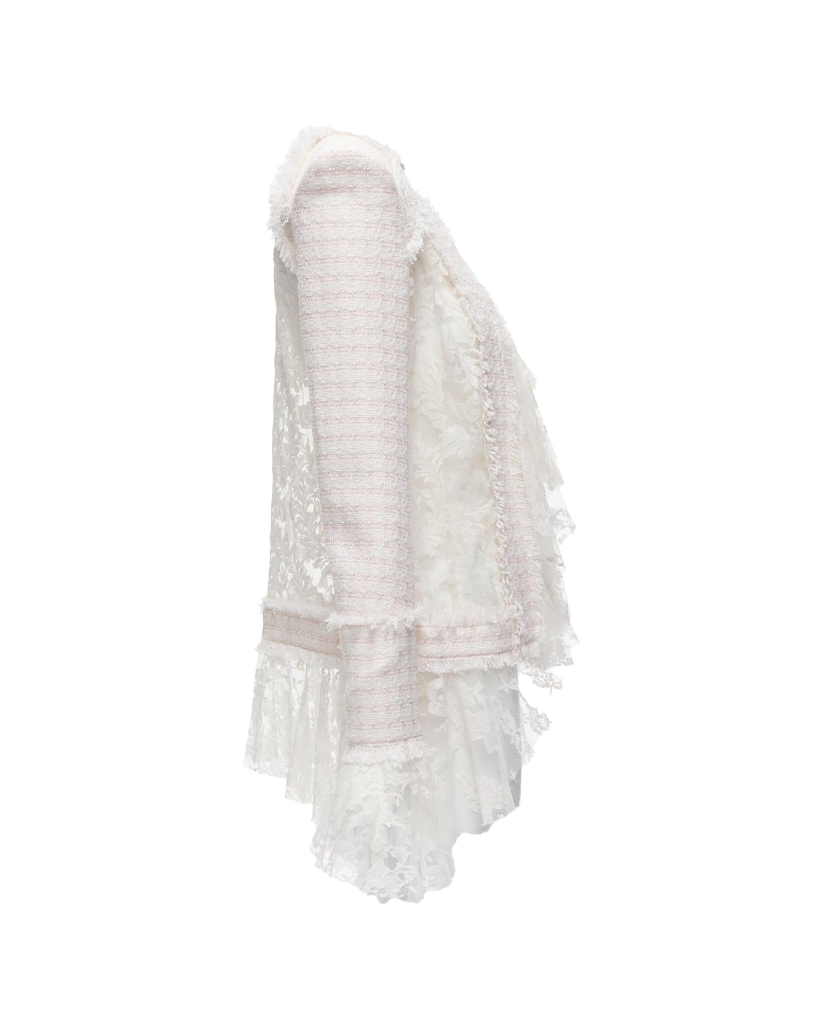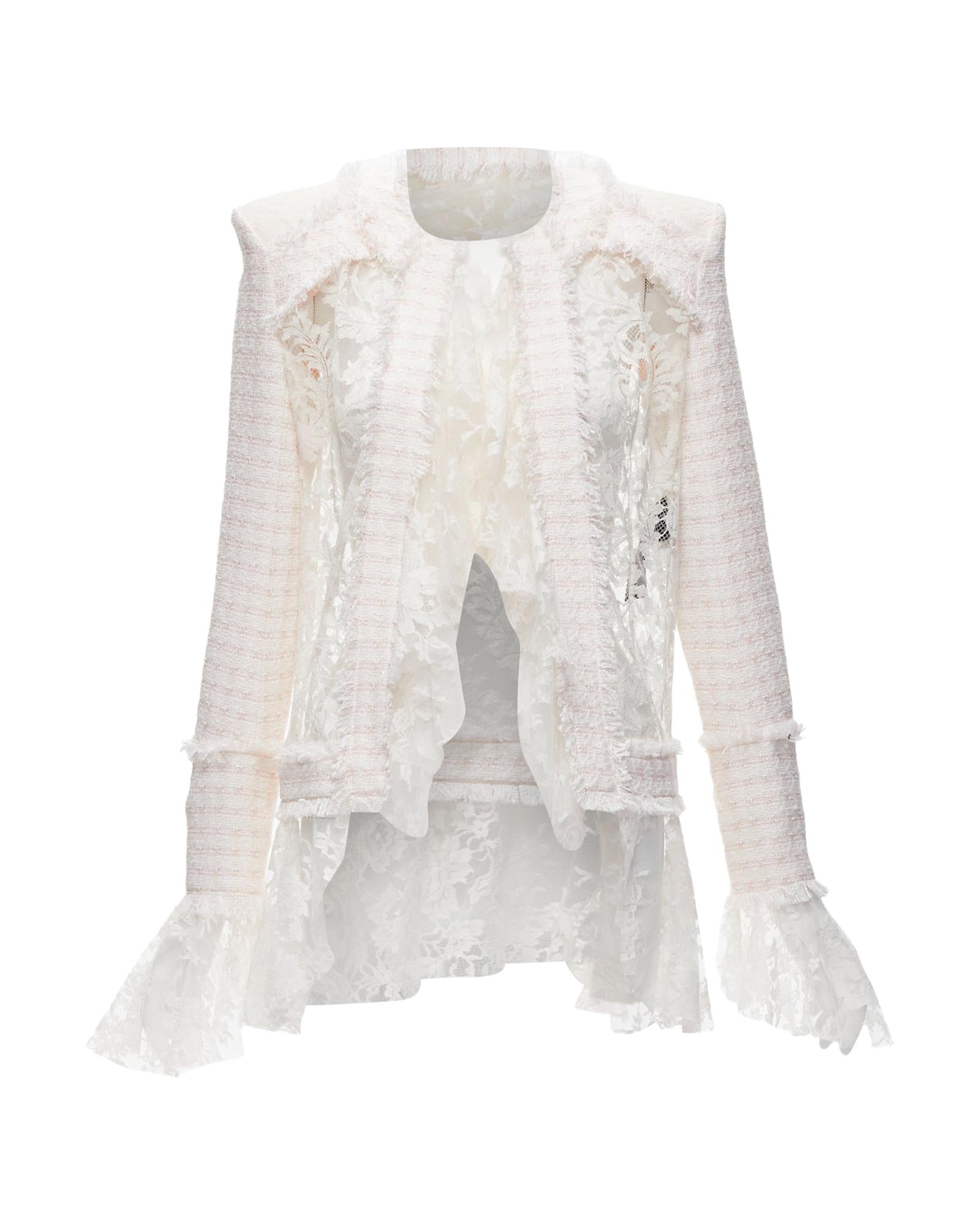 Pre-owned Elegant Lace Trim Tweed Layered Long Sleeve Jacket