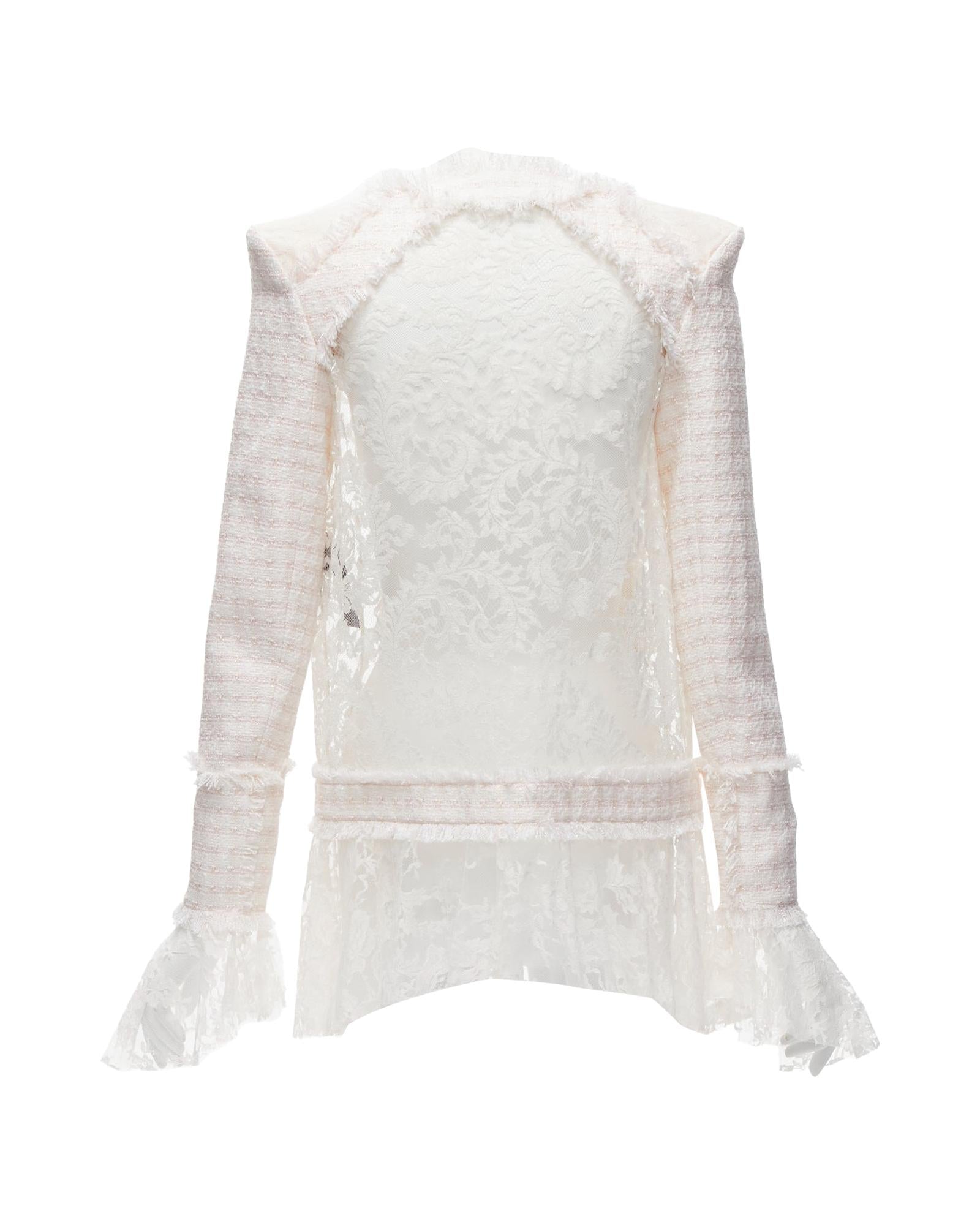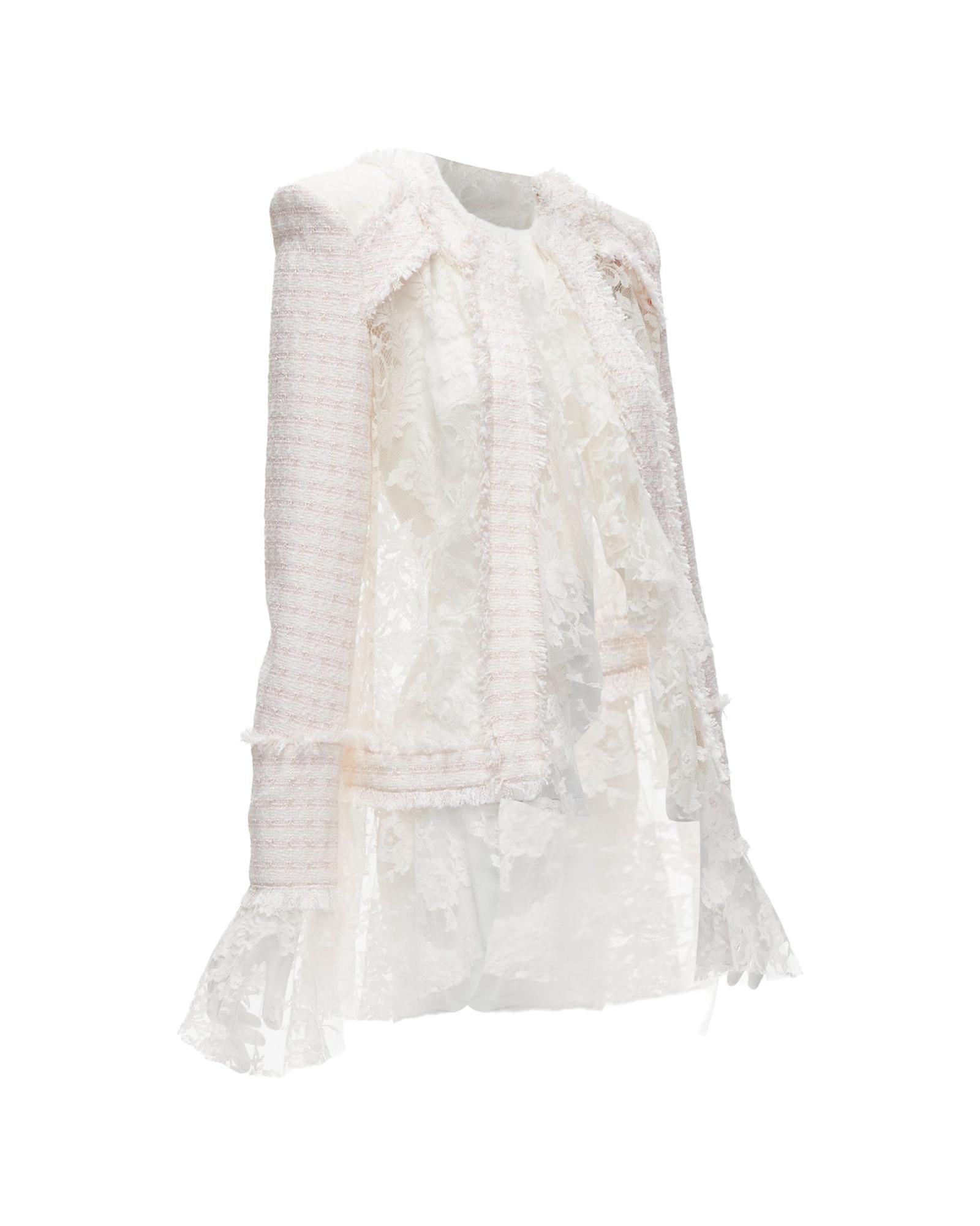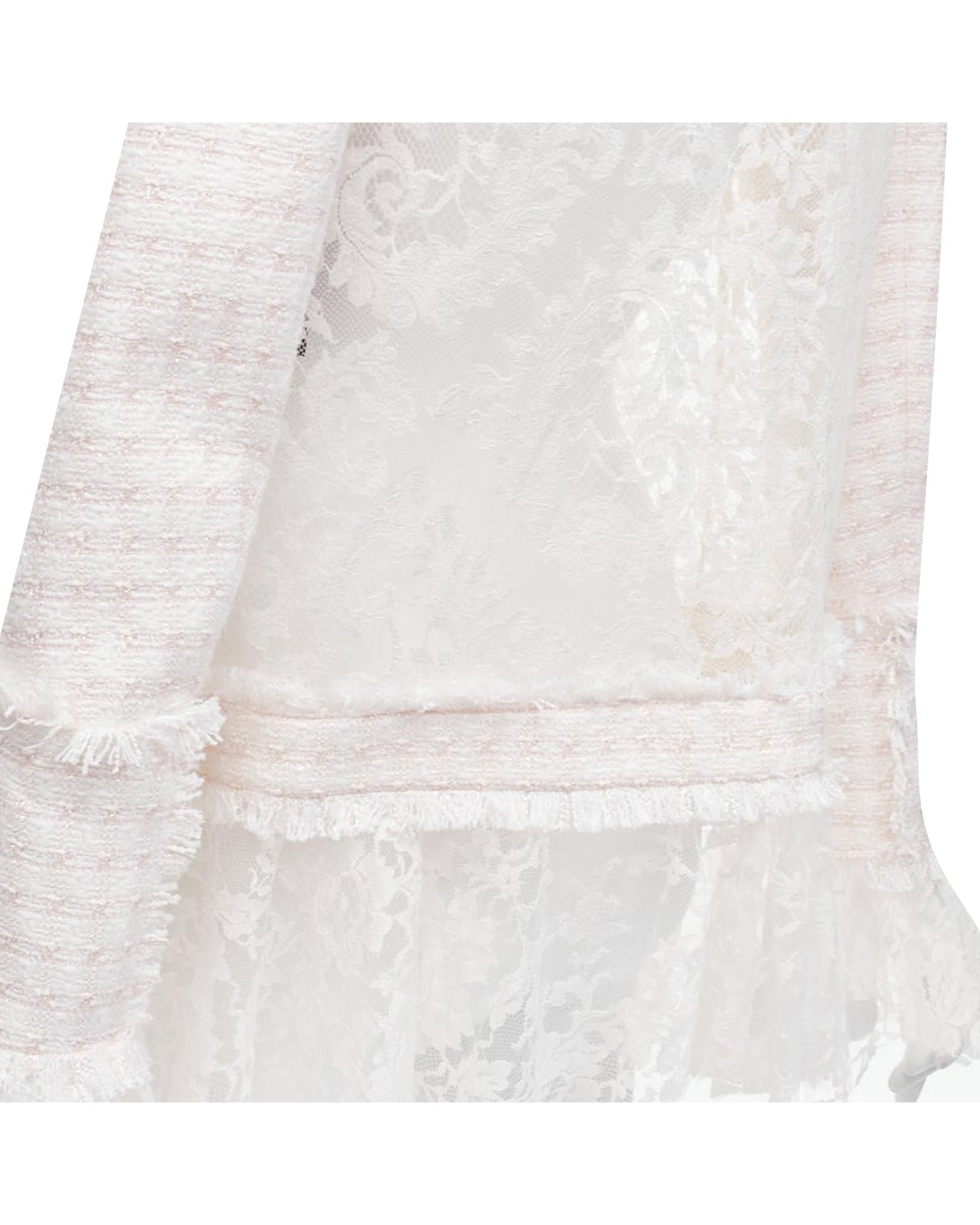 Pre-owned Elegant Lace Trim Tweed Layered Long Sleeve Jacket