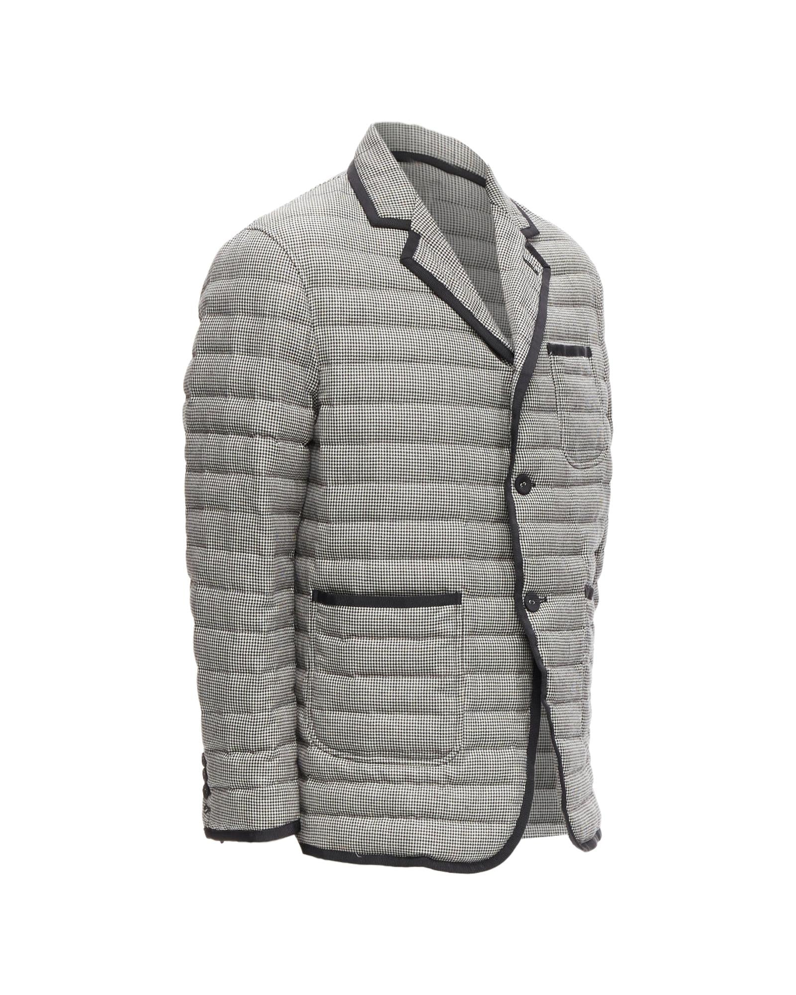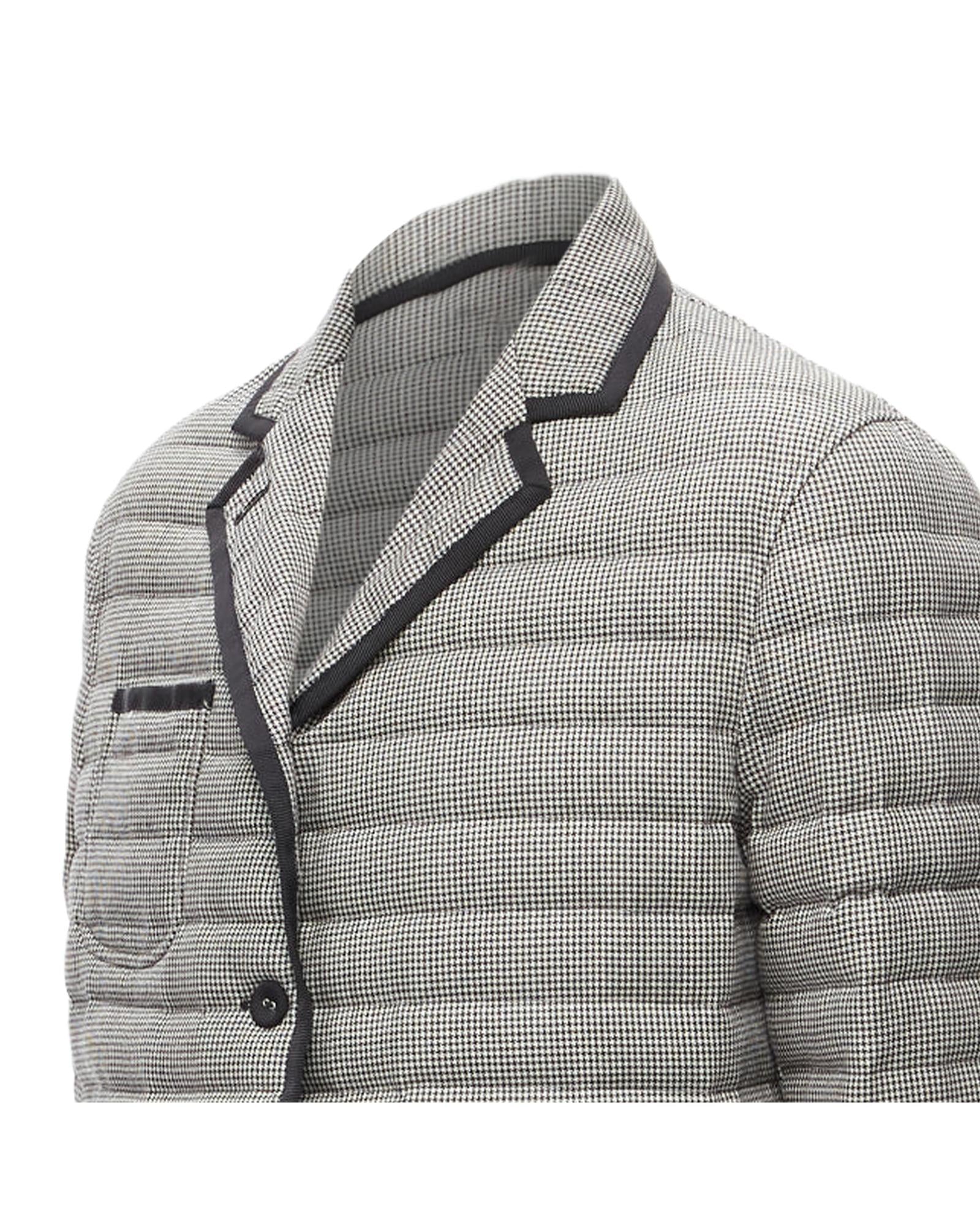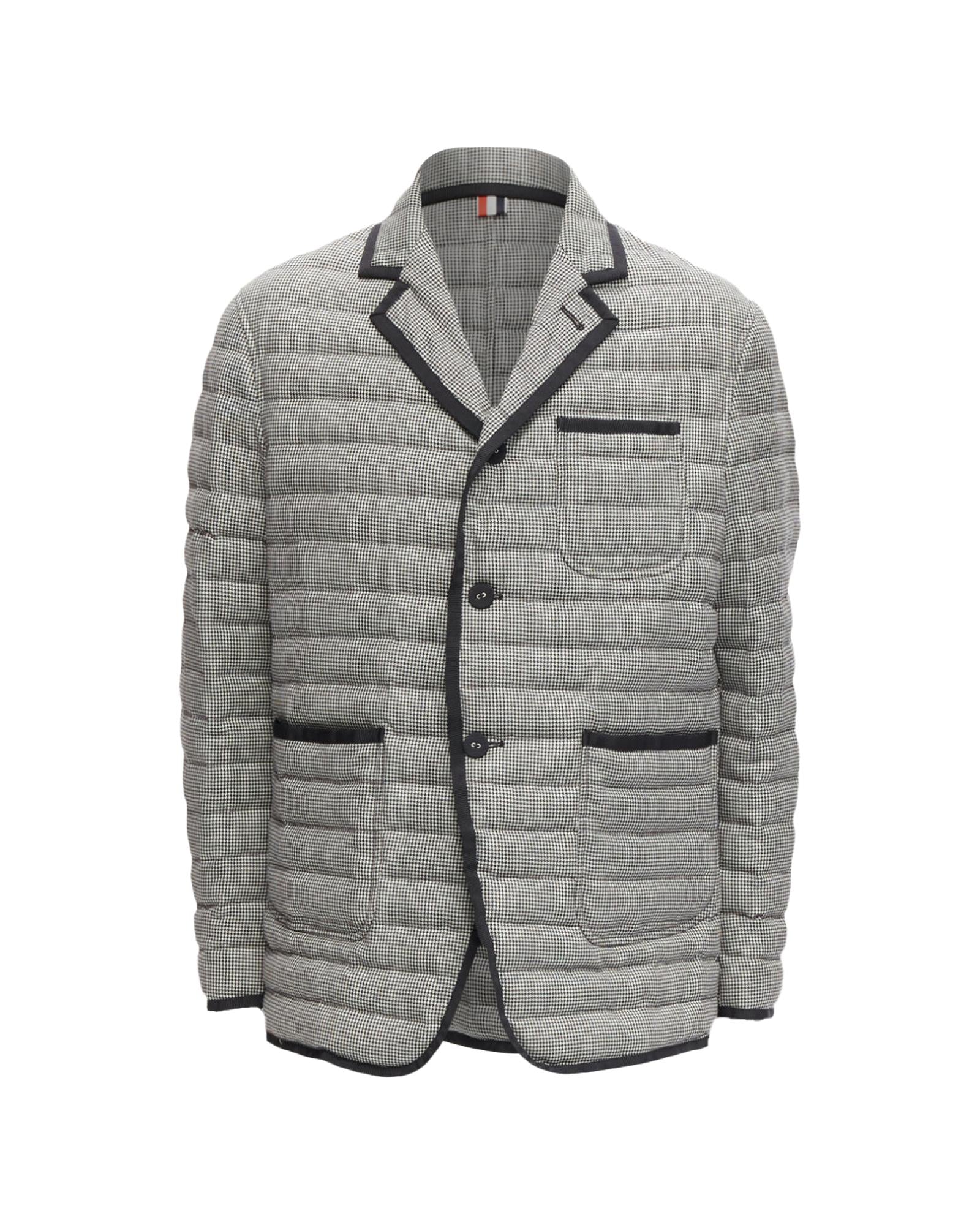 Pre-owned Houndstooth Padded Blazer with Notched Lapel and Button Closure