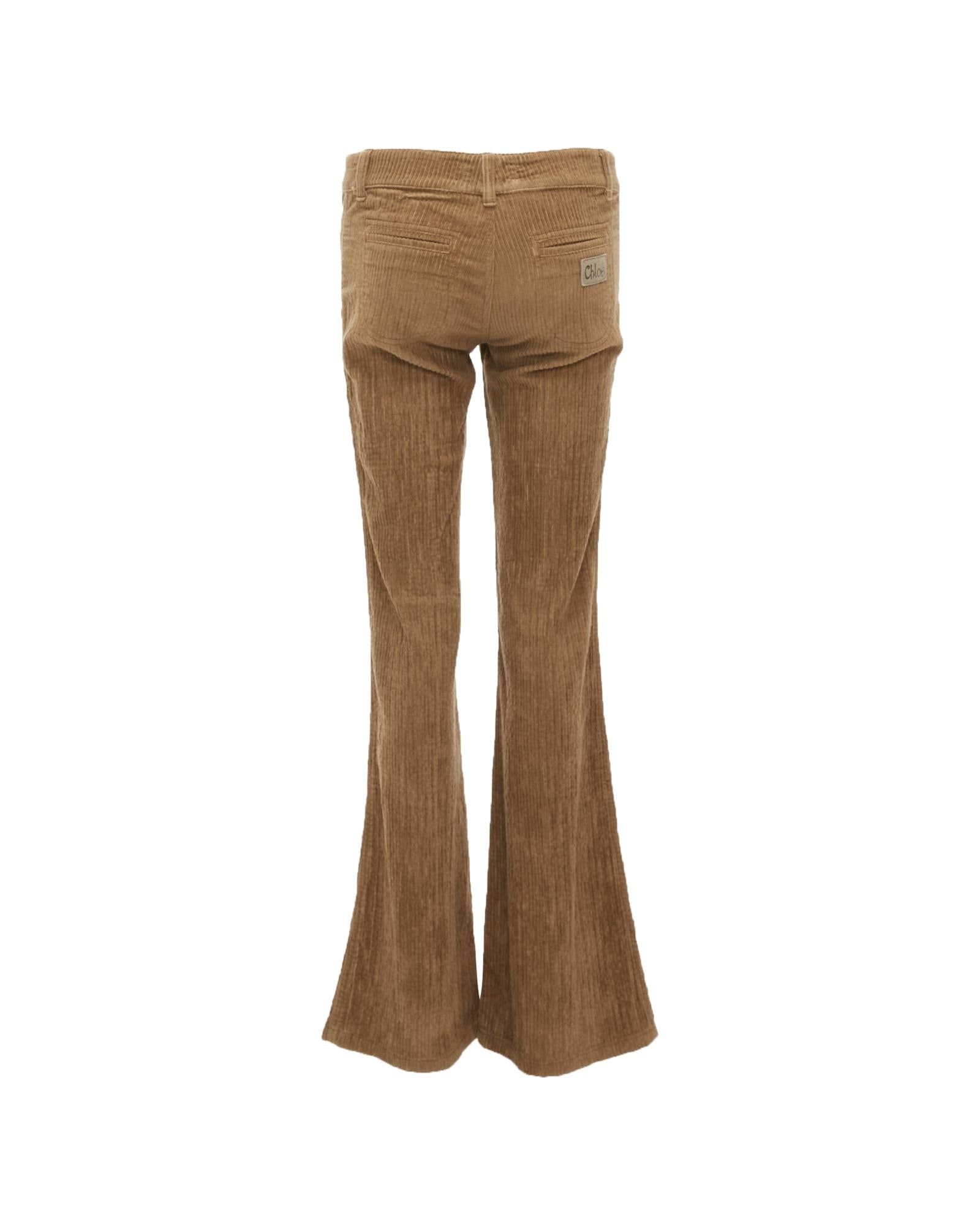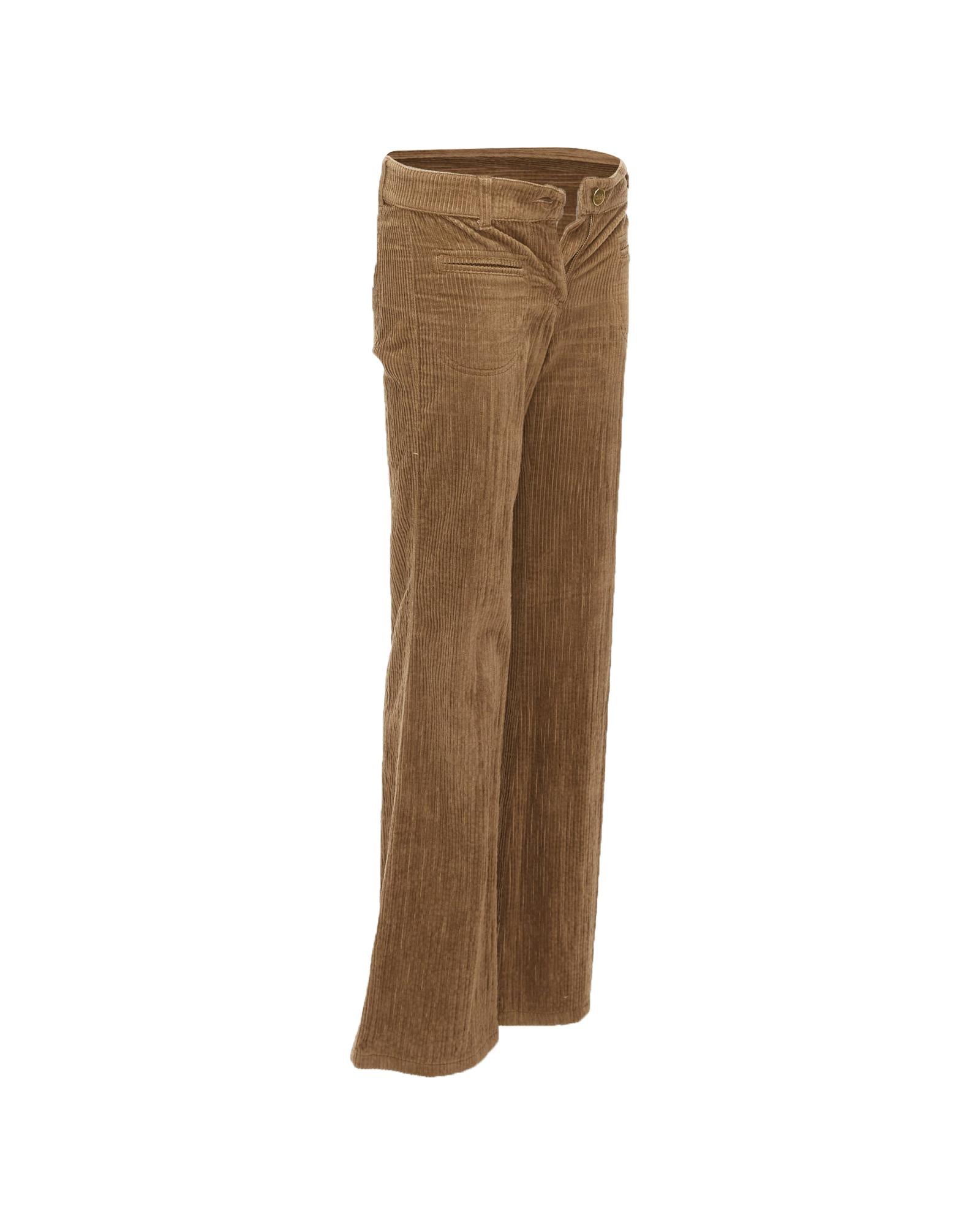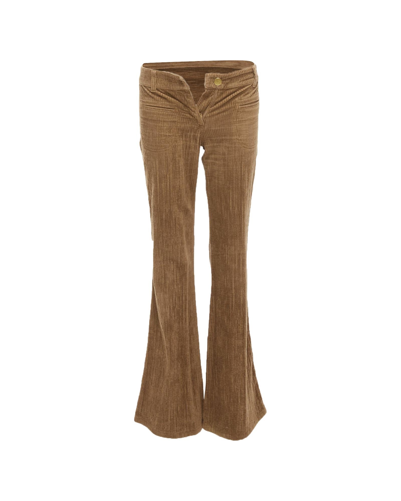 Pre-owned Corduroy Bootcut Pants with Pockets and Button Closure