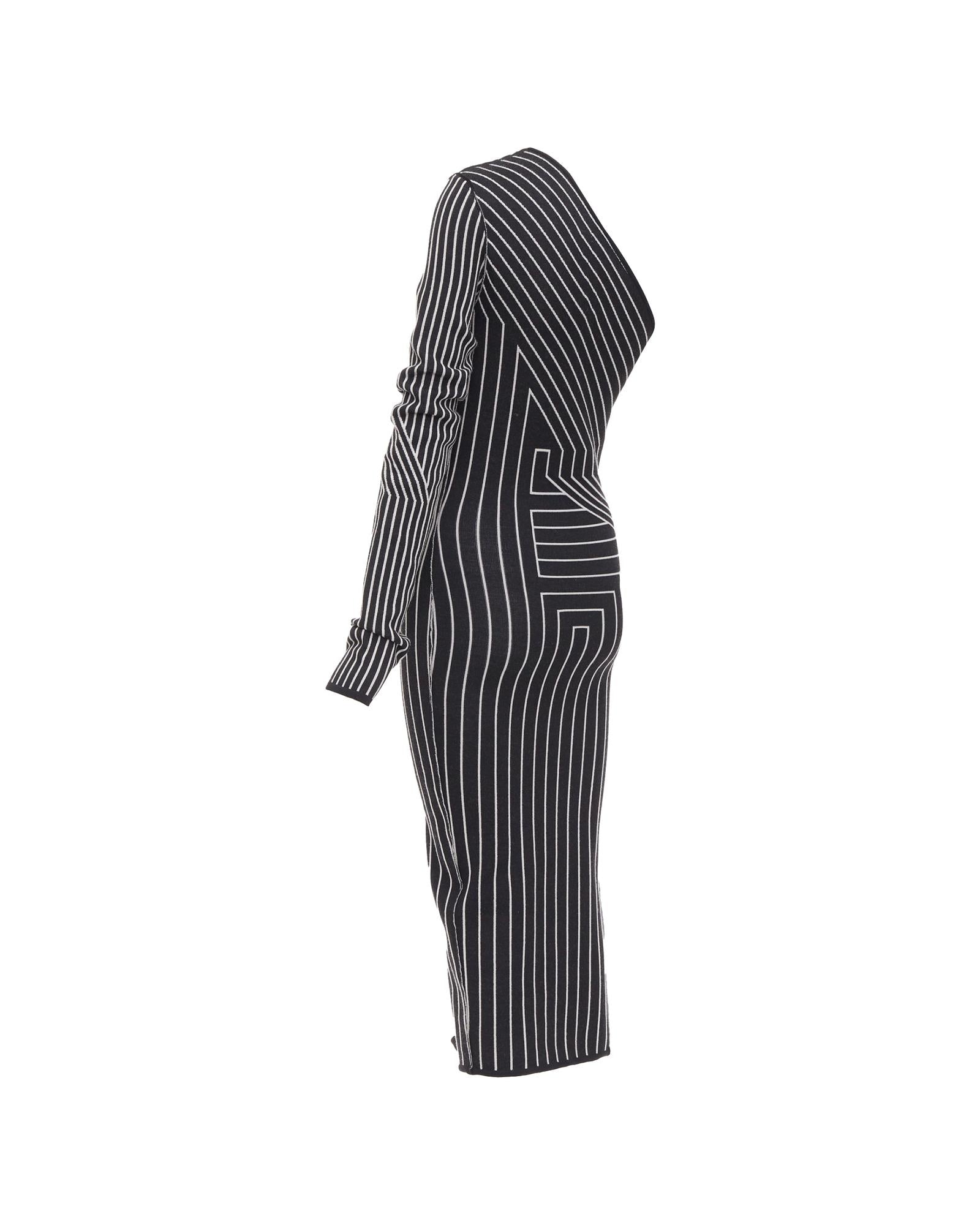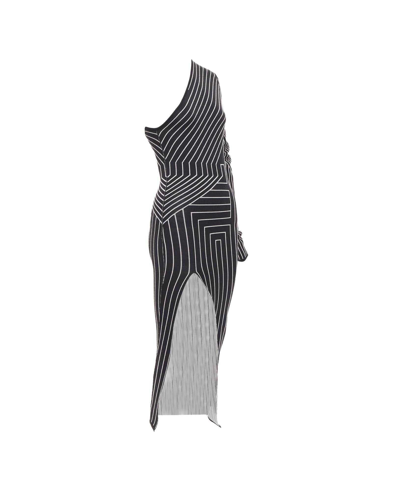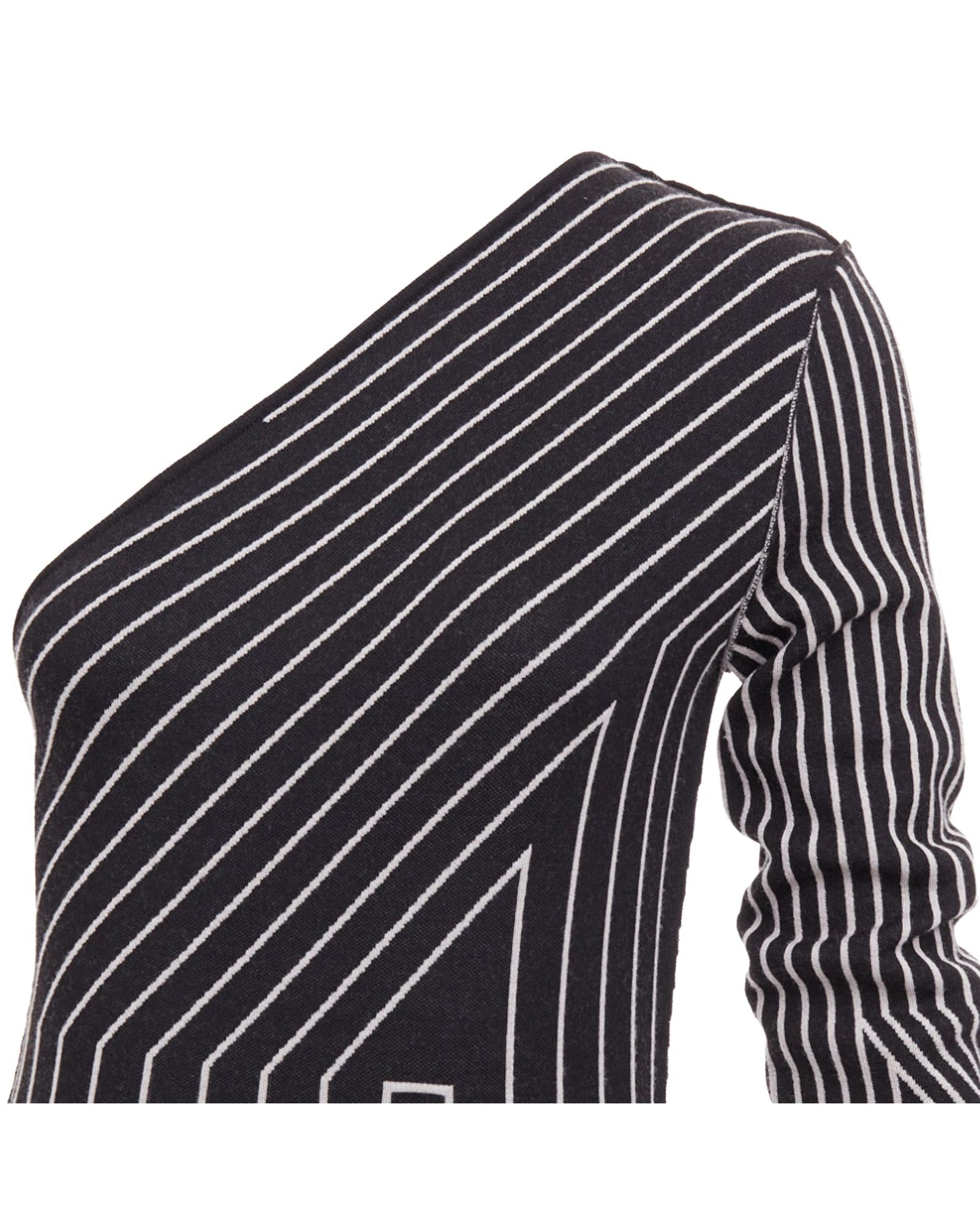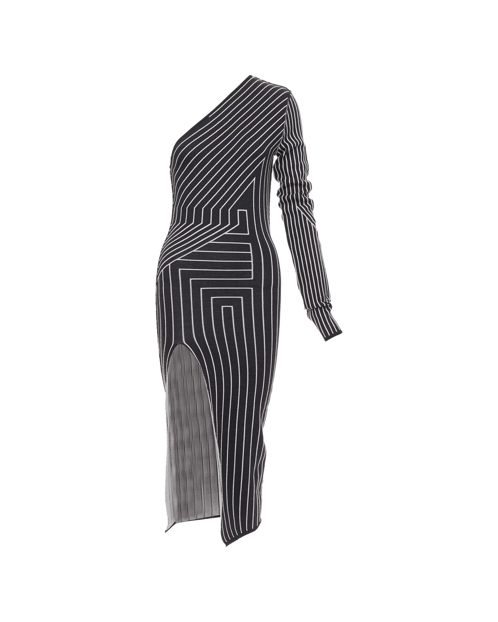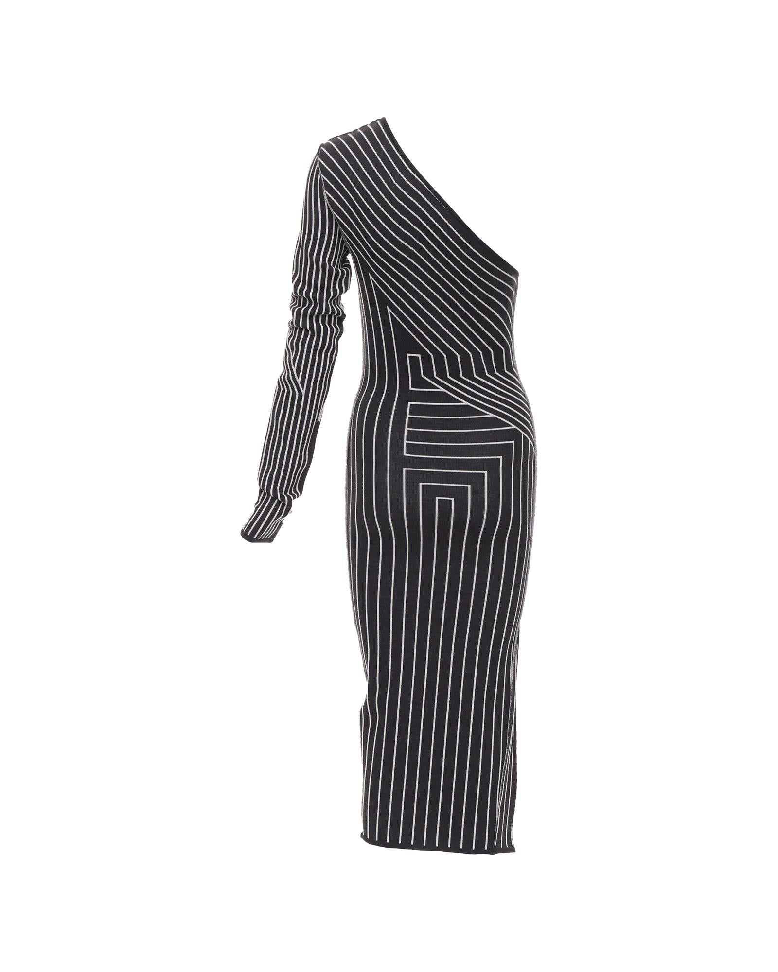 Pre-owned Stylish One-Shoulder Midi Dress with Long Sleeve and Unique Geometric Pattern