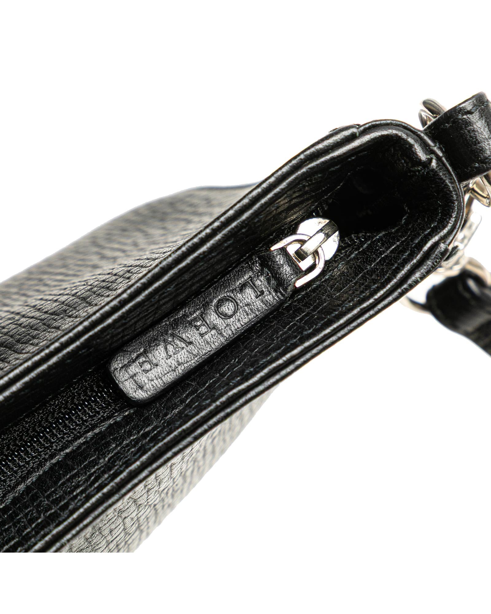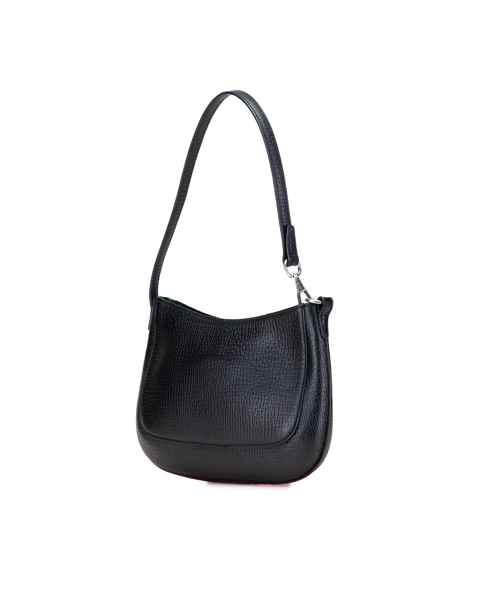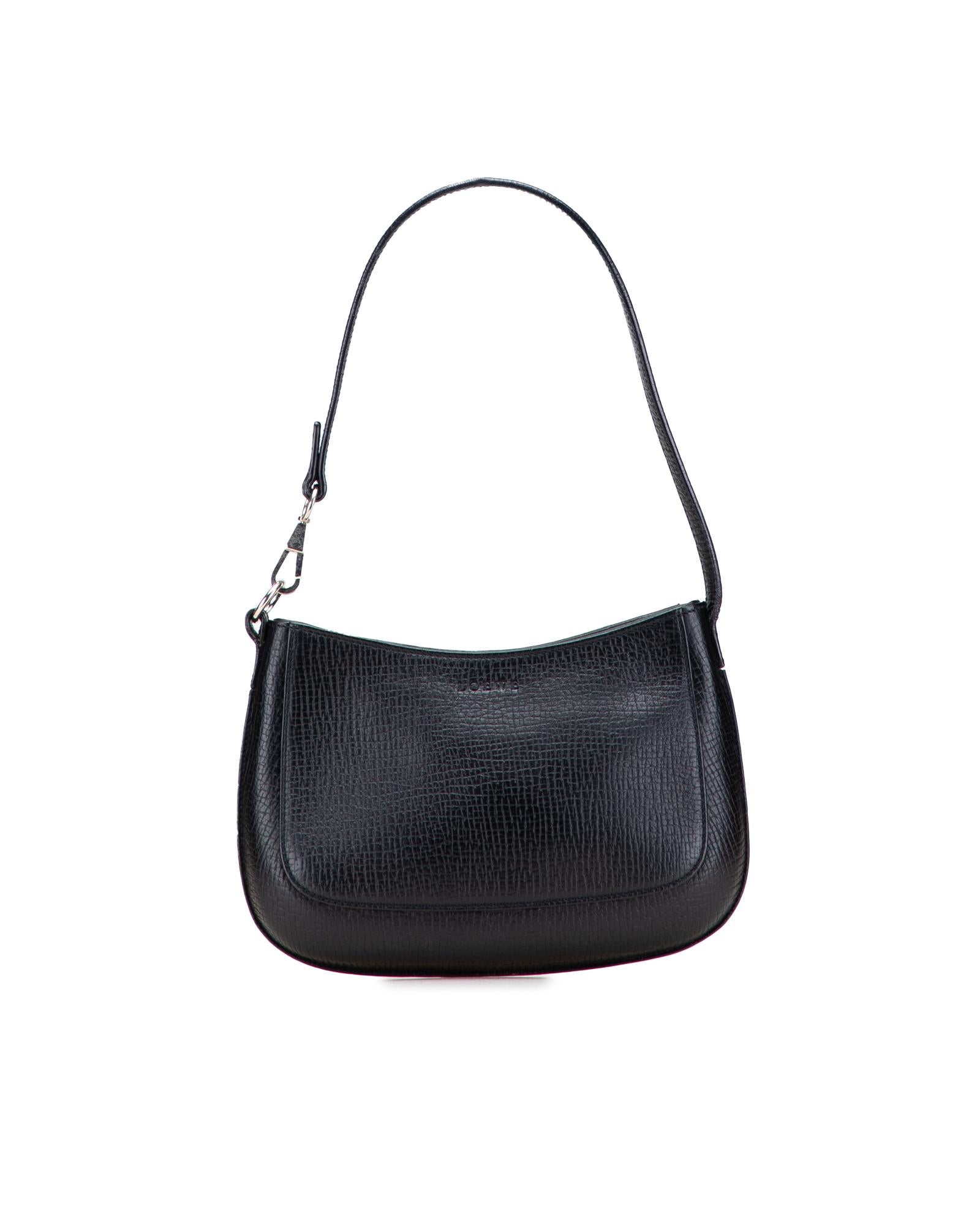 This shoulder bag features a leather body a flat strap and a top zip closure.