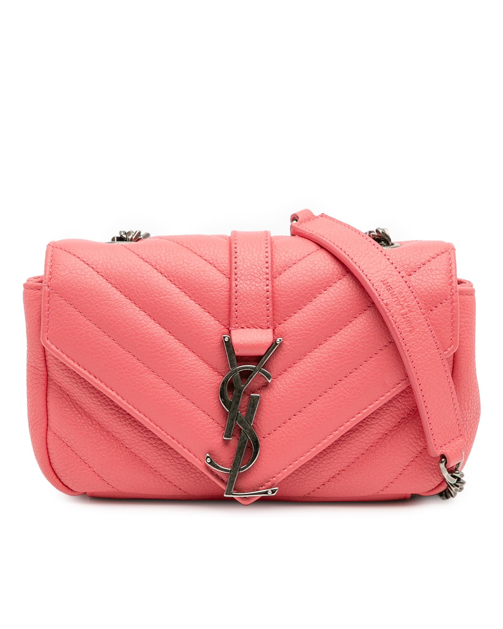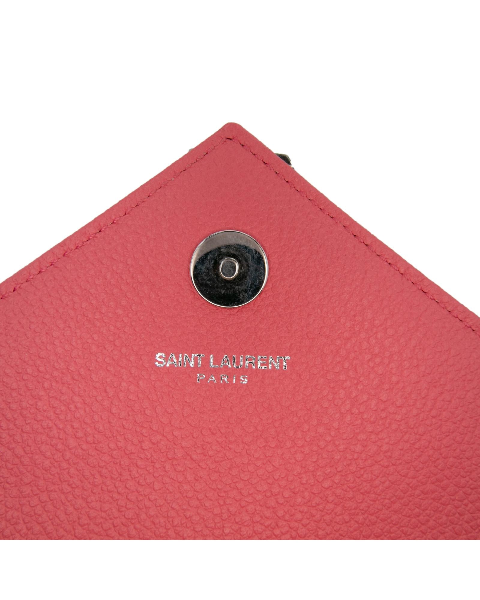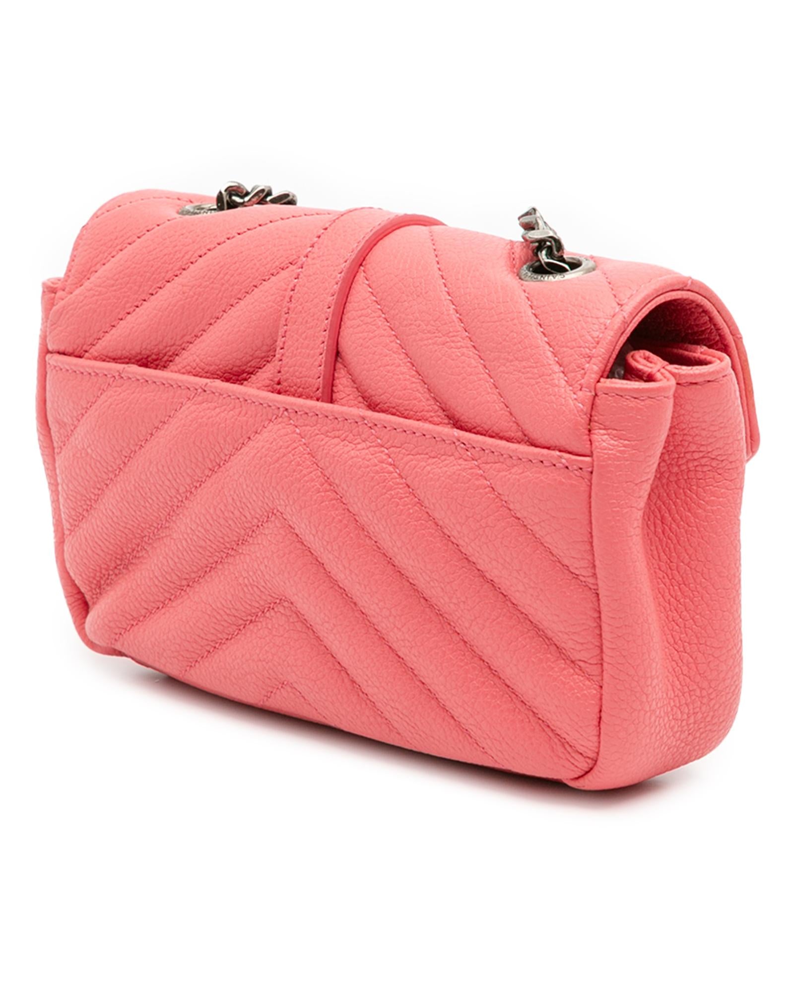 This crossbody bag features a quilted leather body a curb chain strap with leather guard a front flap with magnetic closure an exterior slip pocket and interior slip pockets.Brand: Saint Laurent Vintage