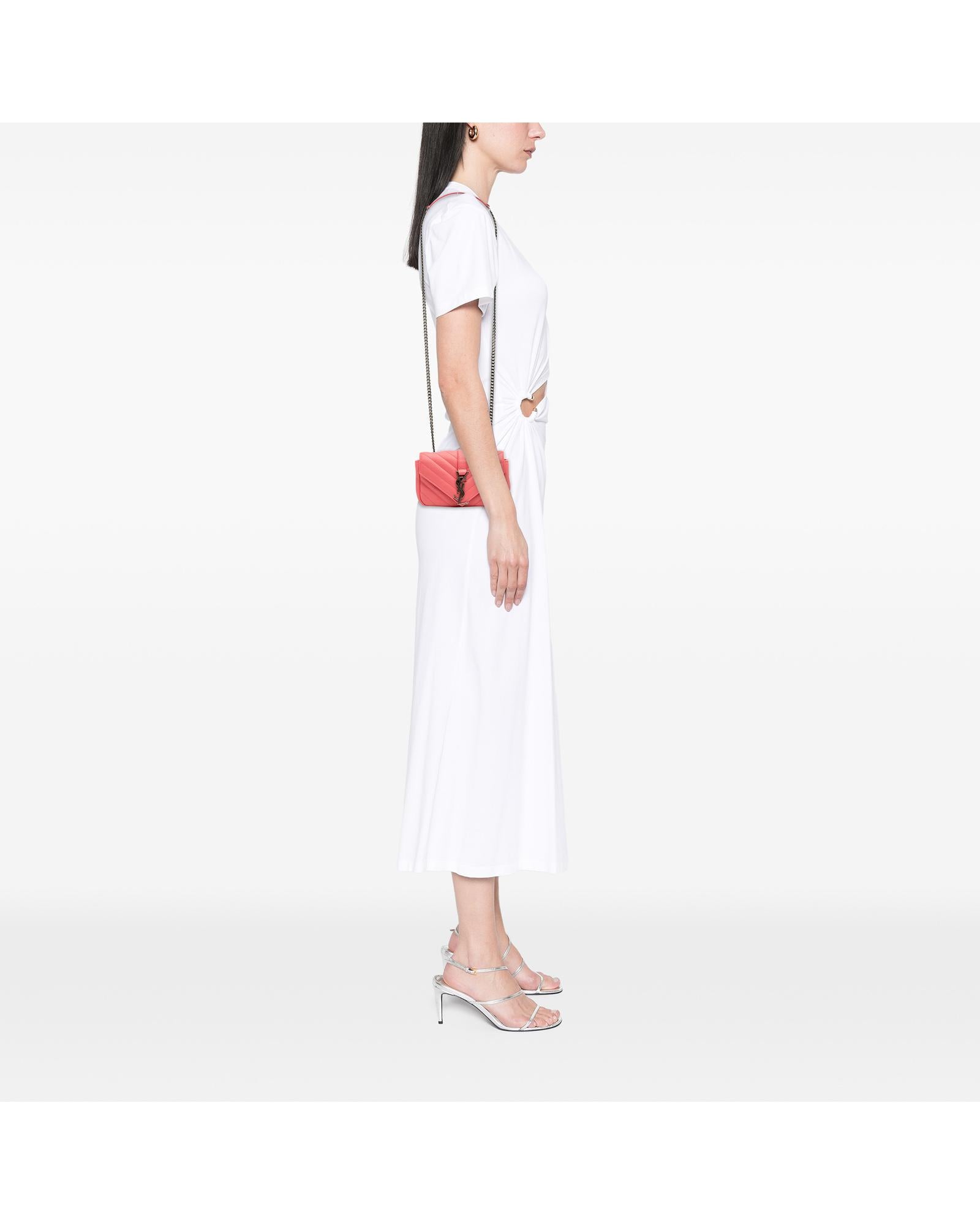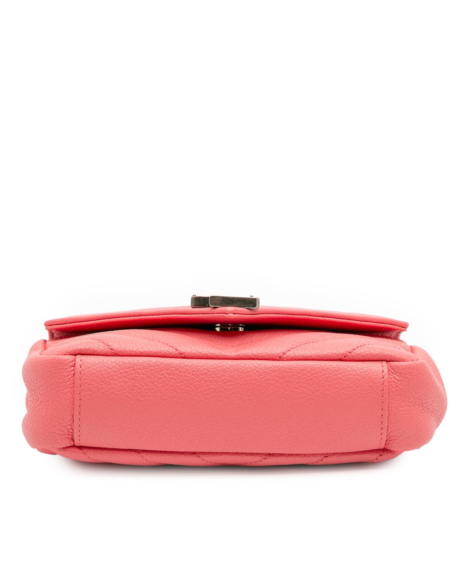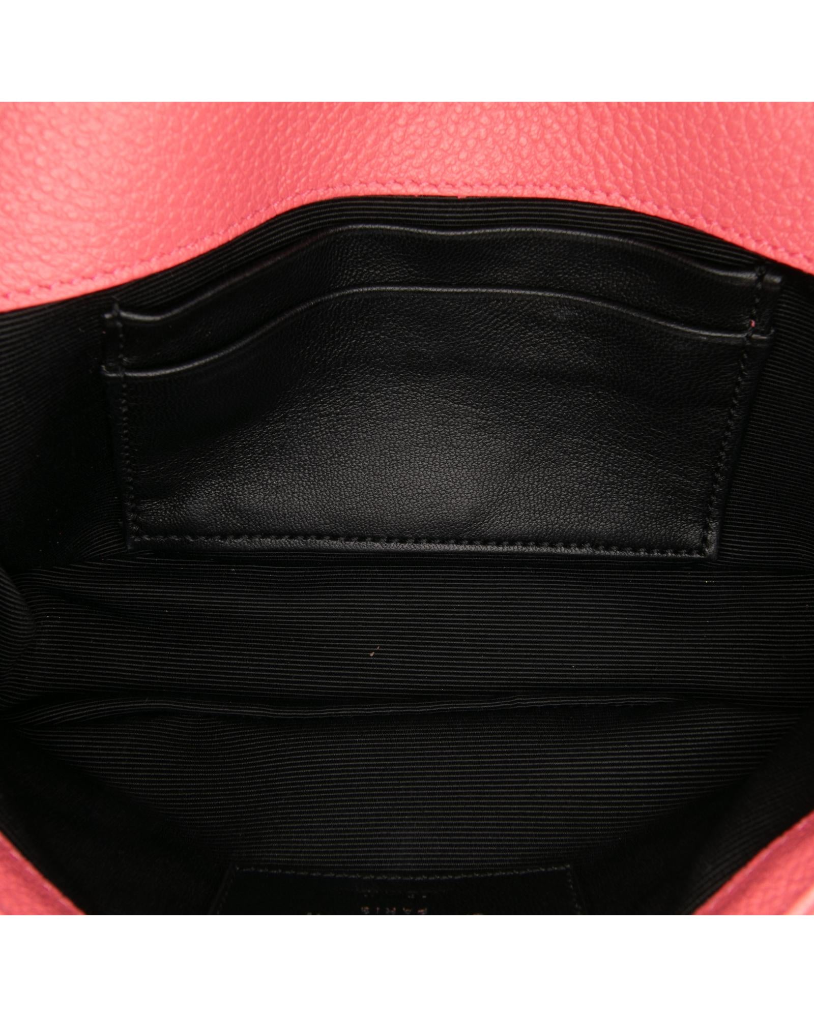 This crossbody bag features a quilted leather body a curb chain strap with leather guard a front flap with magnetic closure an exterior slip pocket and interior slip pockets.Brand: Saint Laurent Vintage