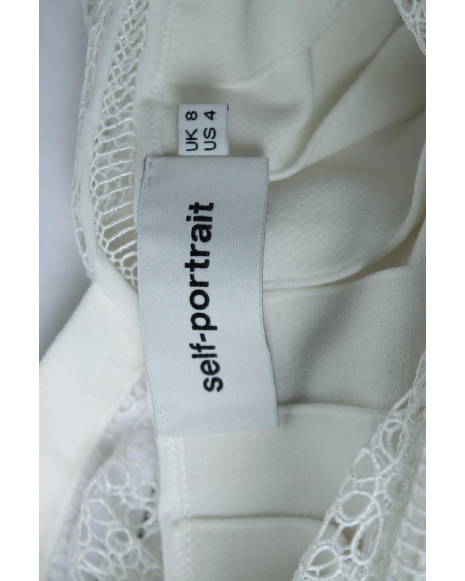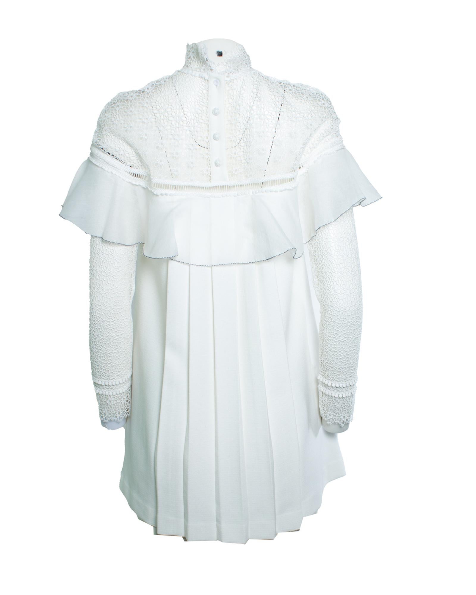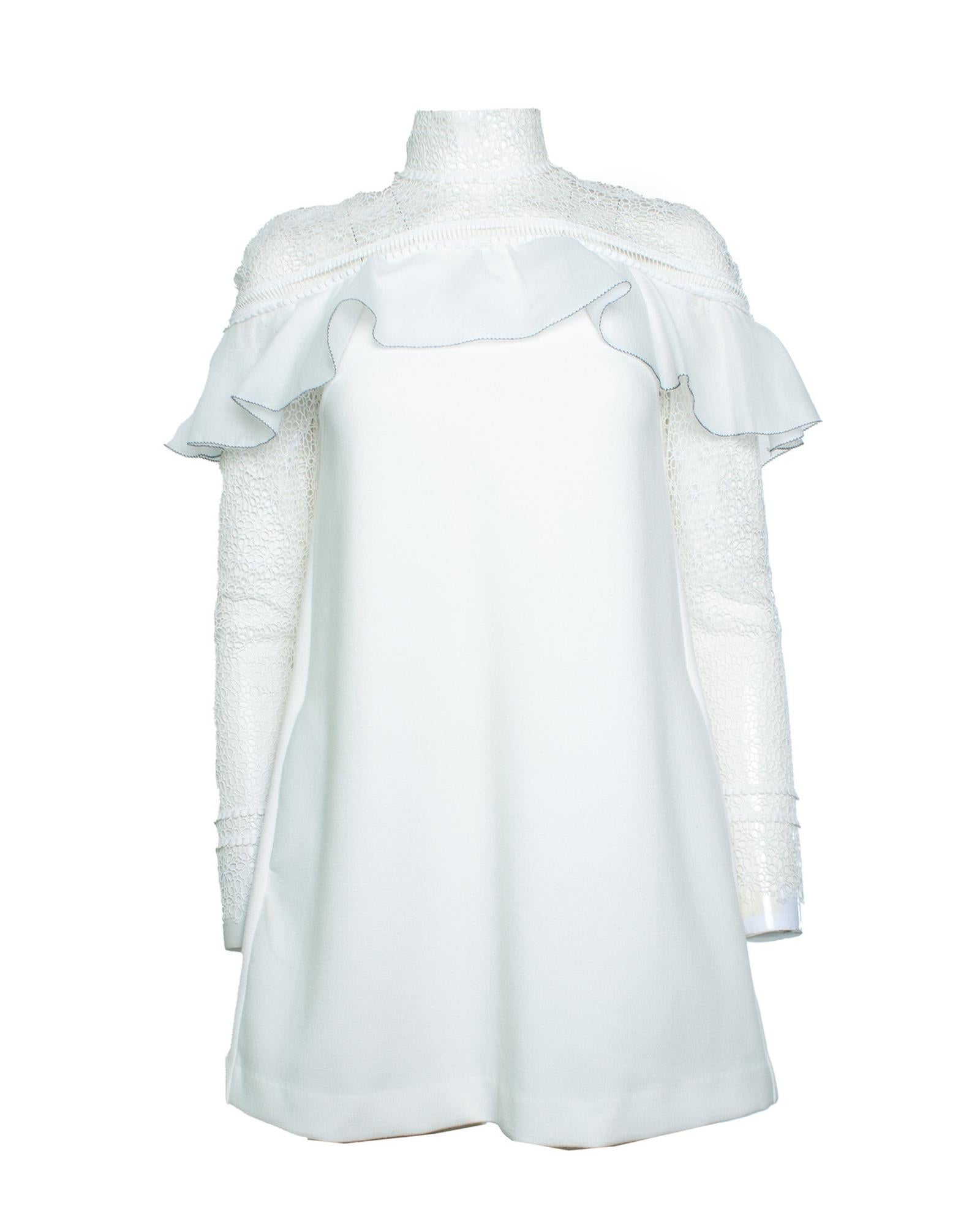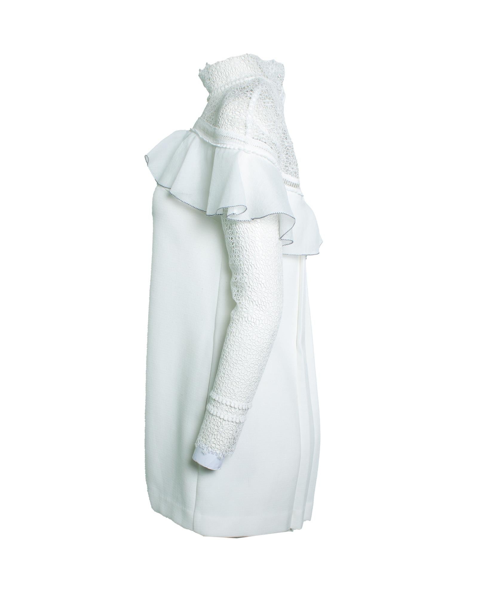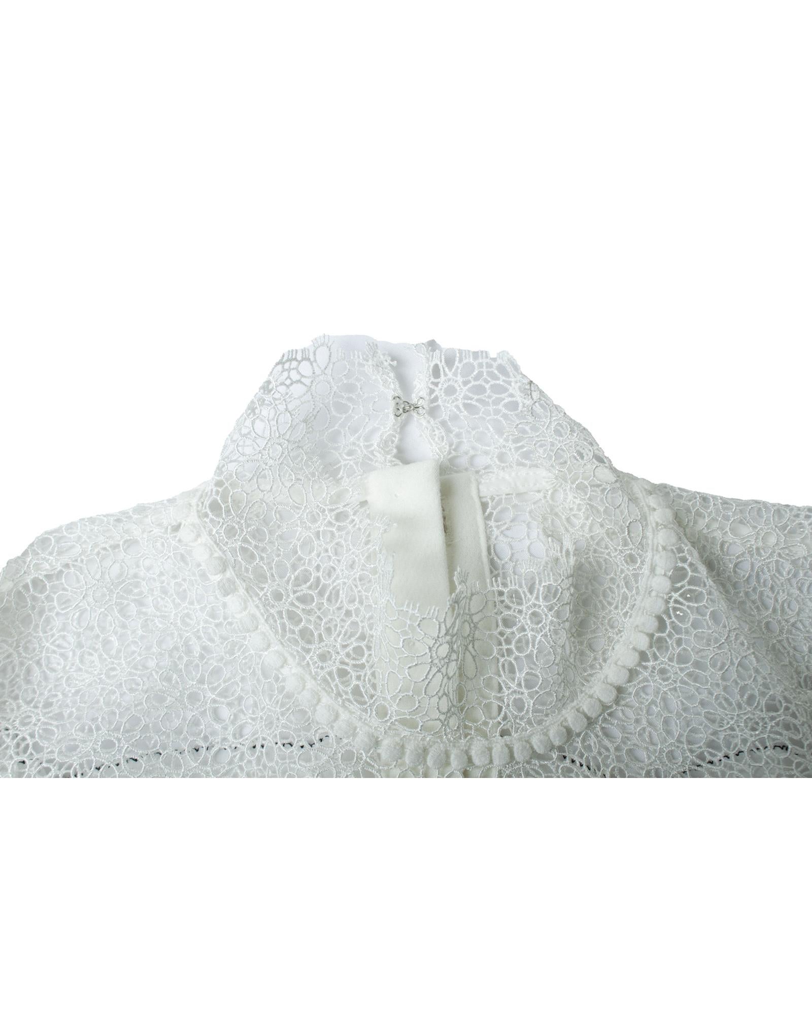 • White dress with lace and ruffle detailing