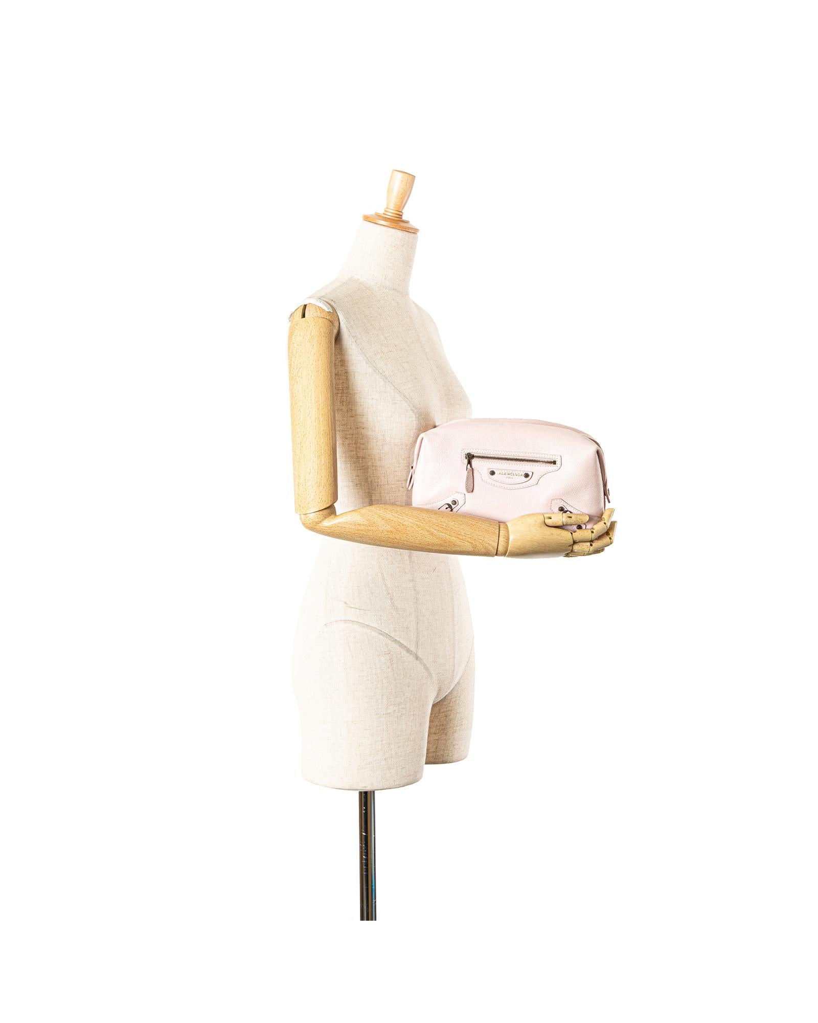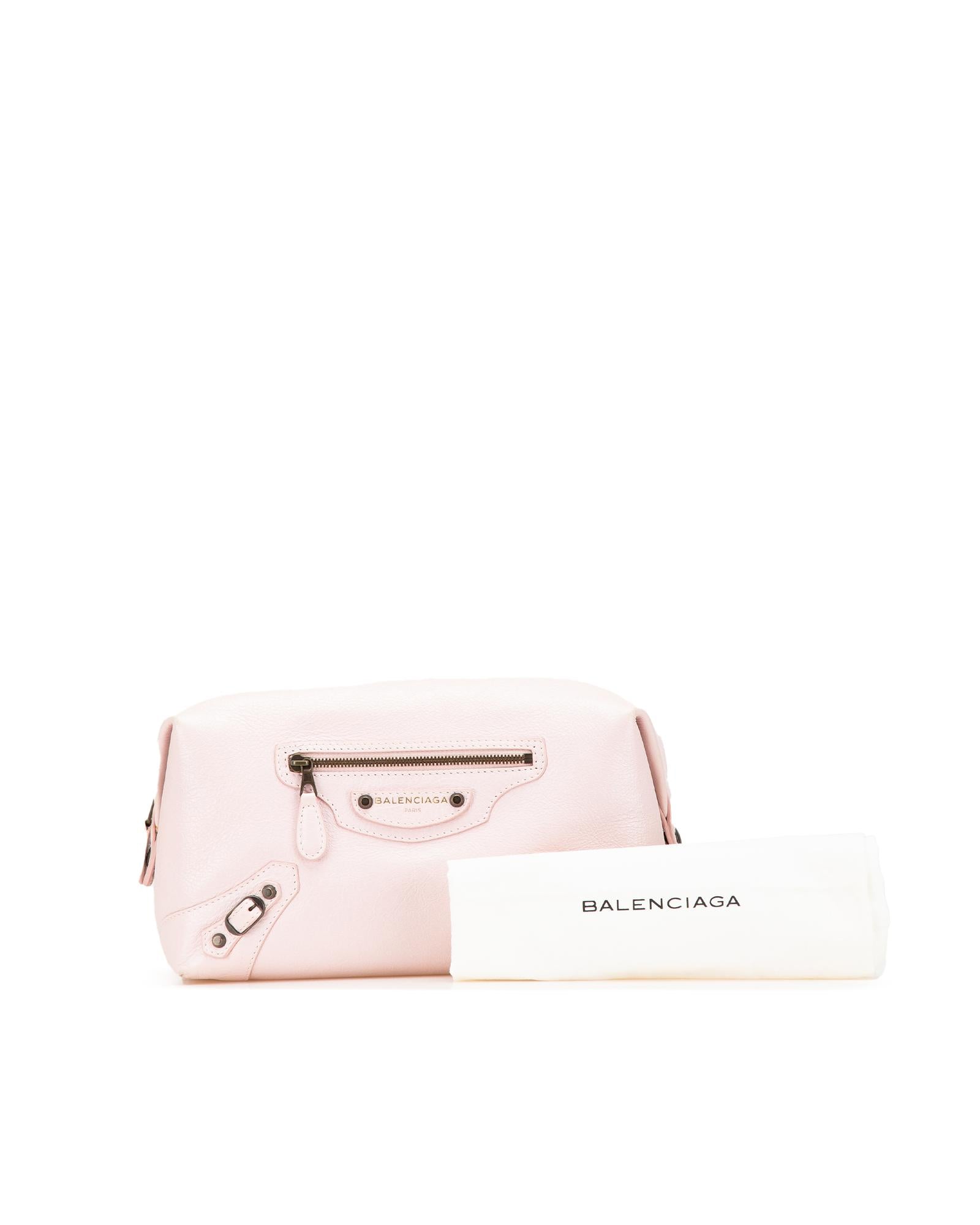 This pouch features a lambskin leather body a top zip closure an exterior front zip pocket and an interior zip pocket.Brand: Balenciaga Vintage