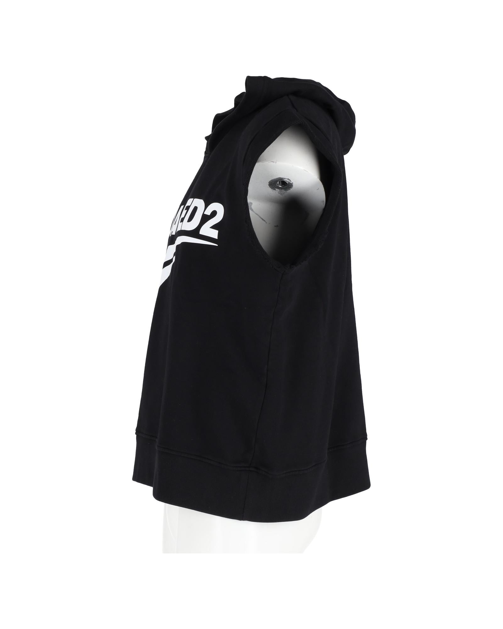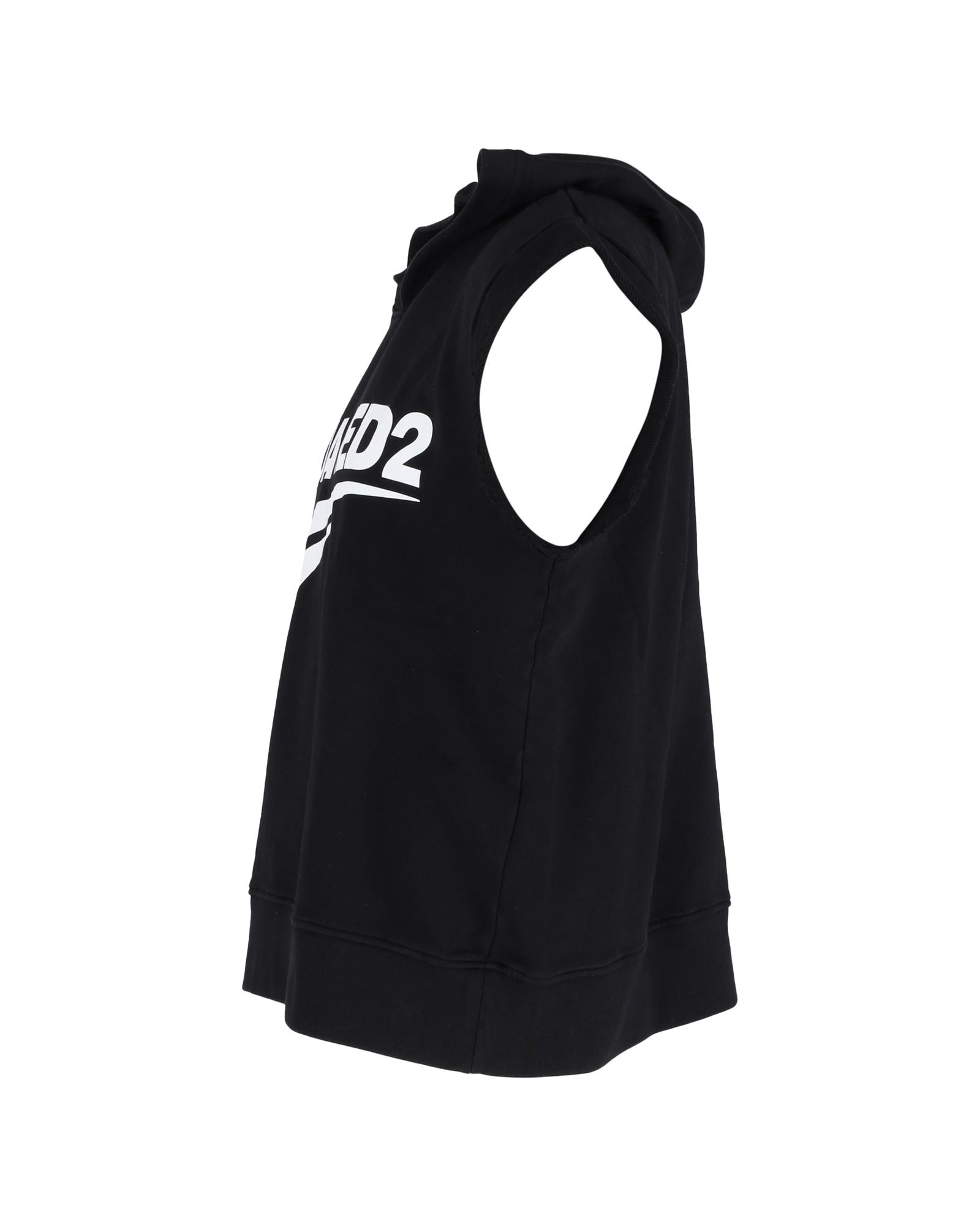 - Sleeveless hoodie in black cotton