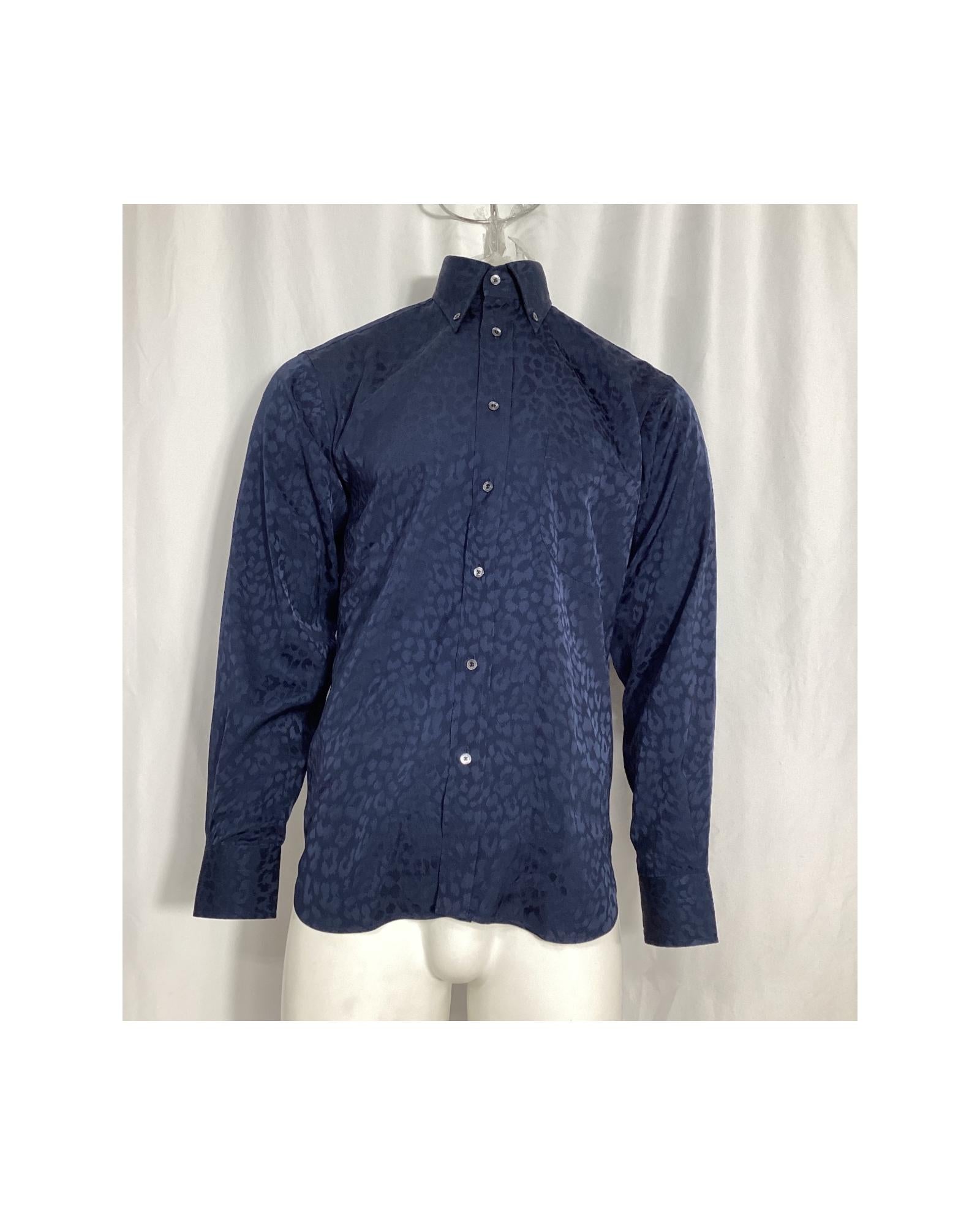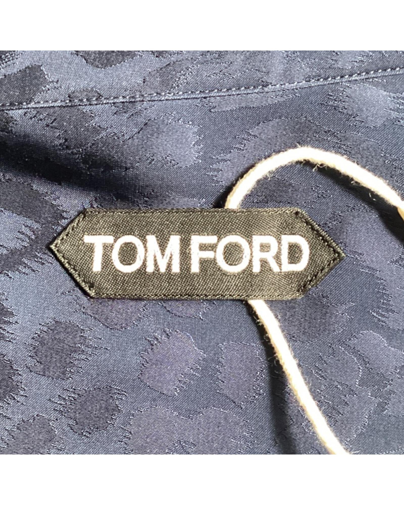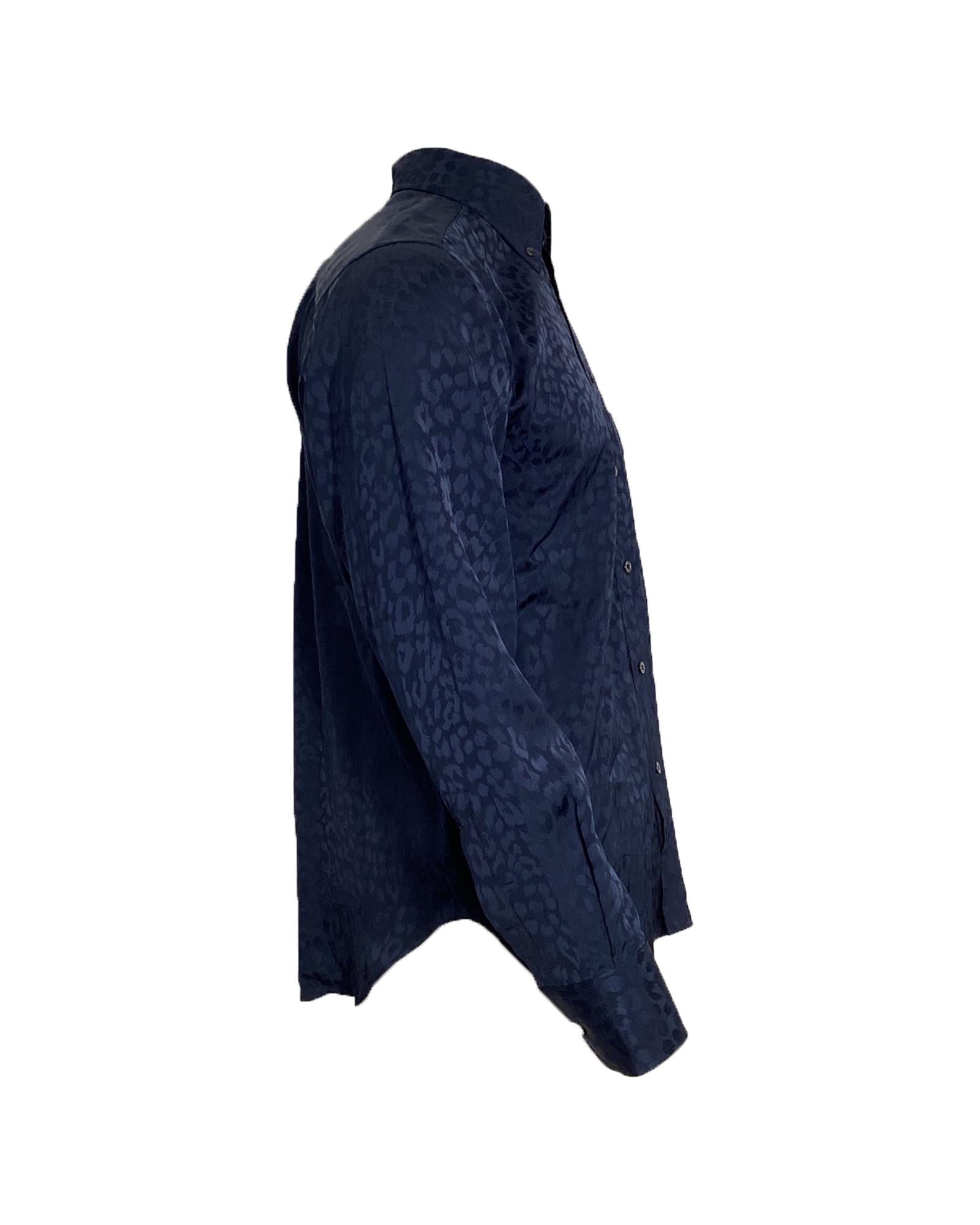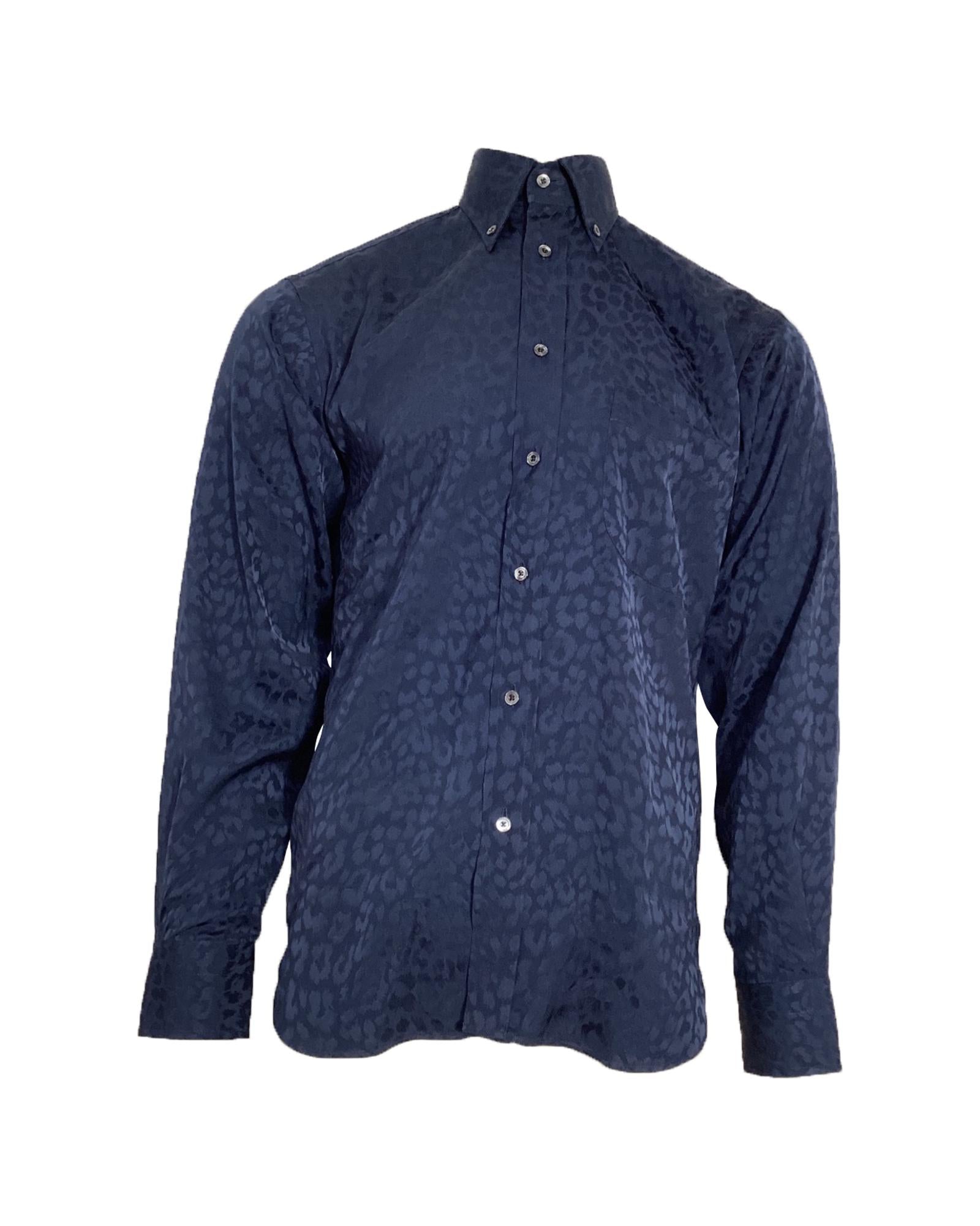 - Tom Ford Leopard Print Long Sleeve Shirt in Navy Blue Silk
