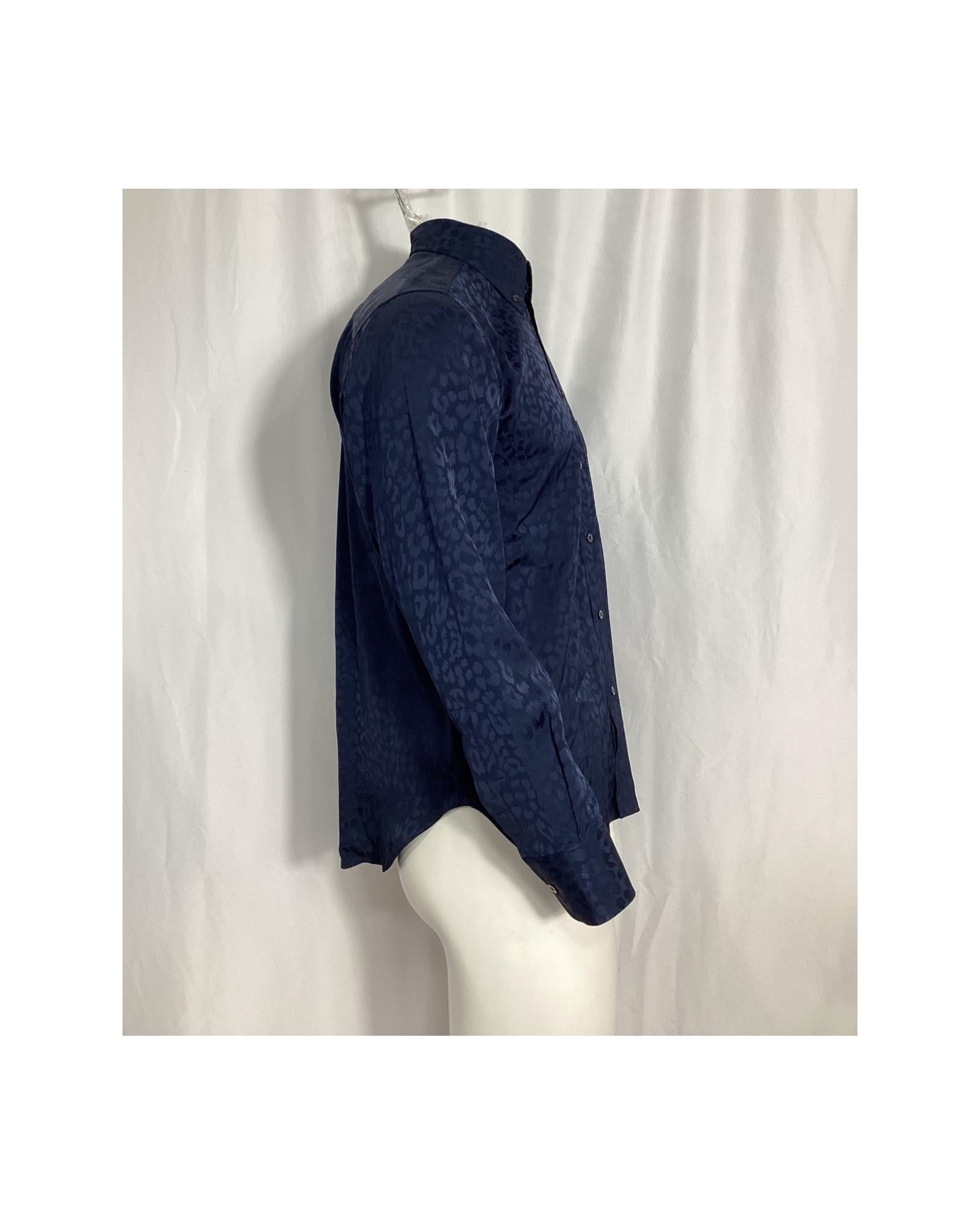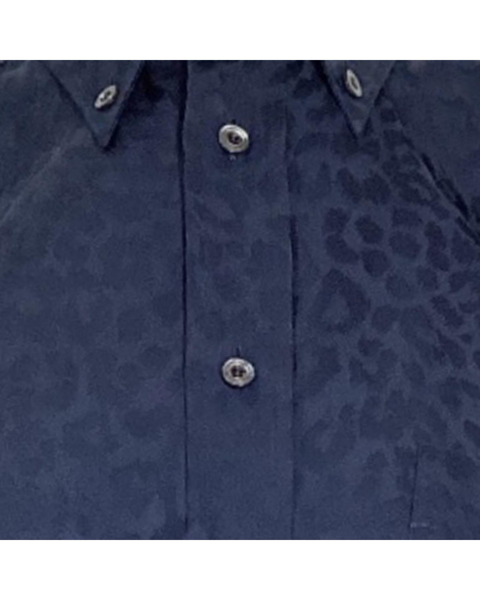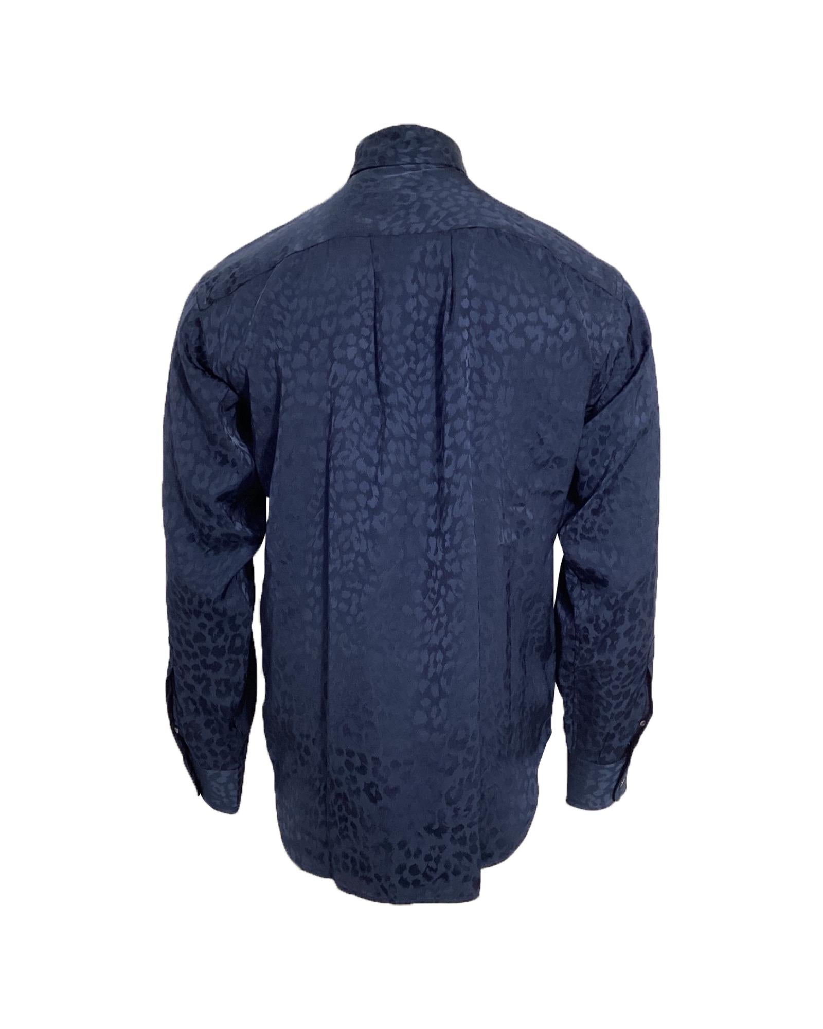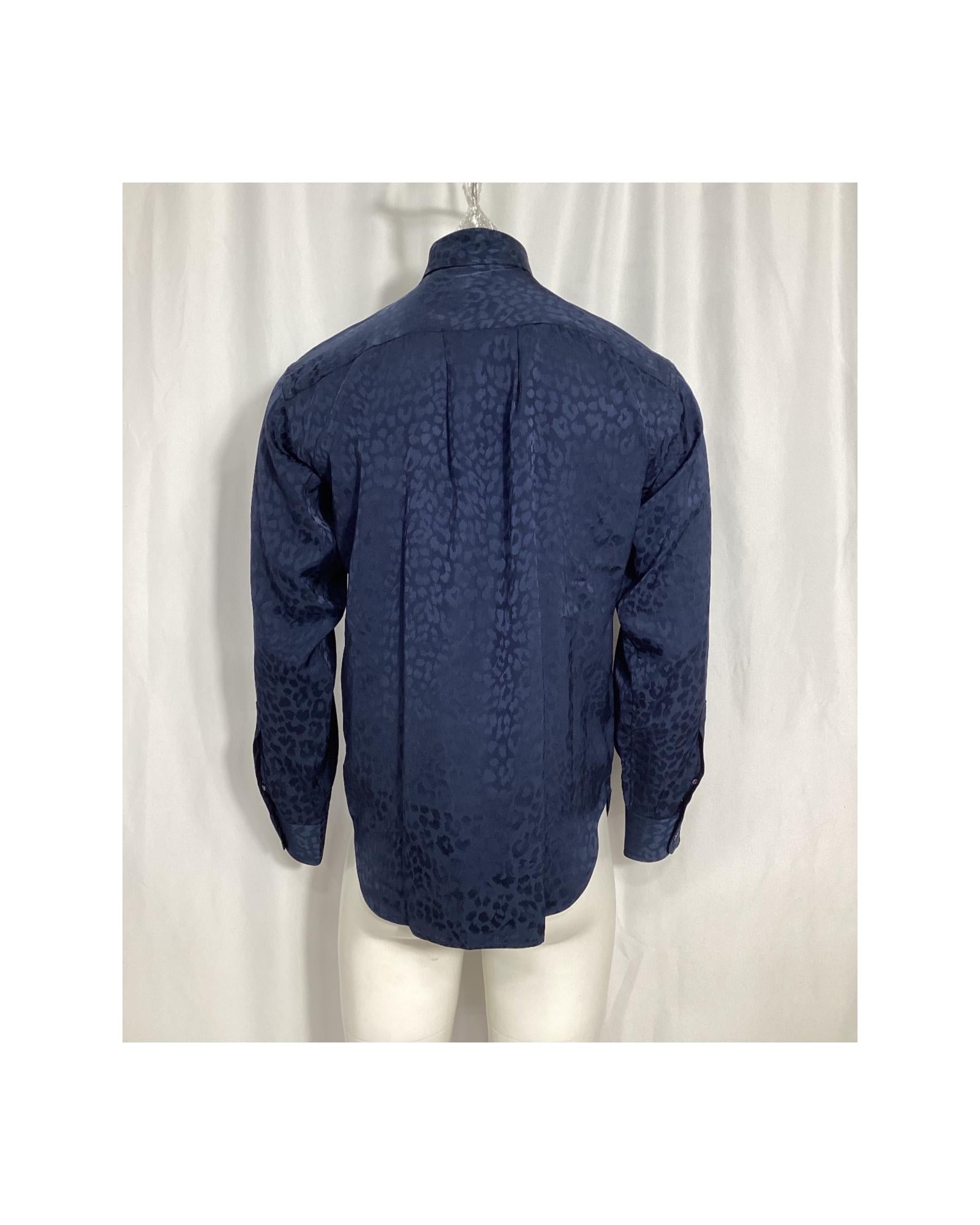 - Tom Ford Leopard Print Long Sleeve Shirt in Navy Blue Silk