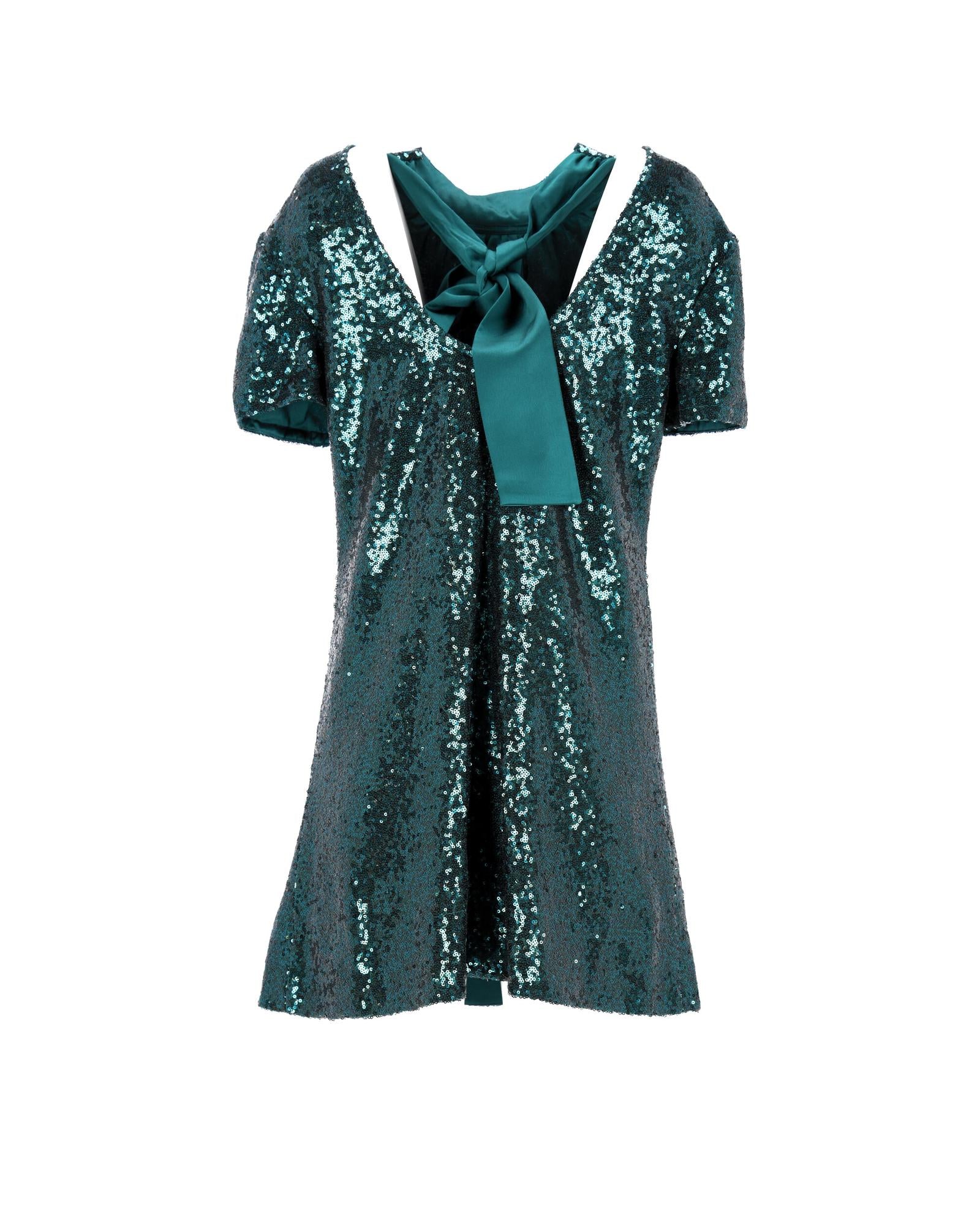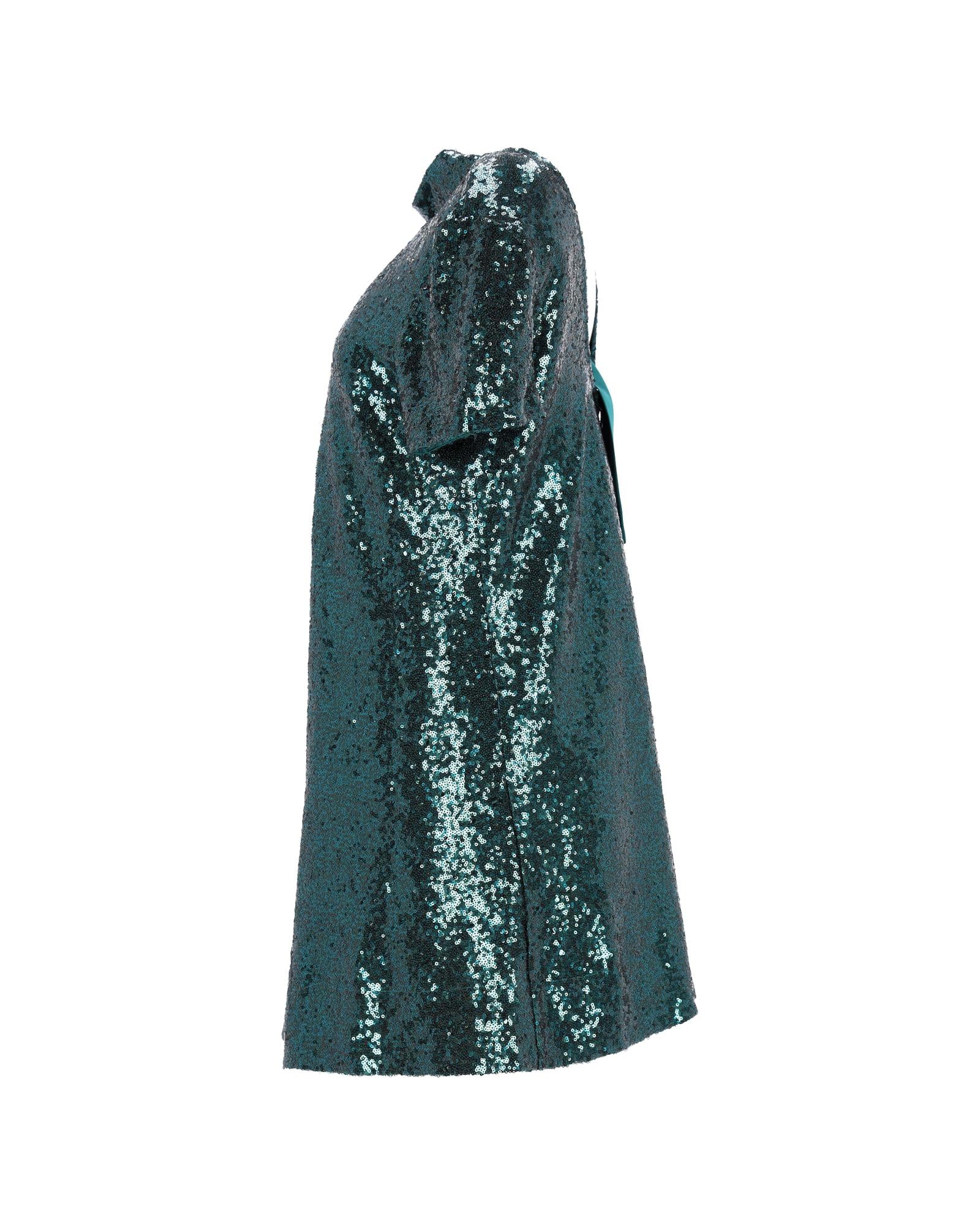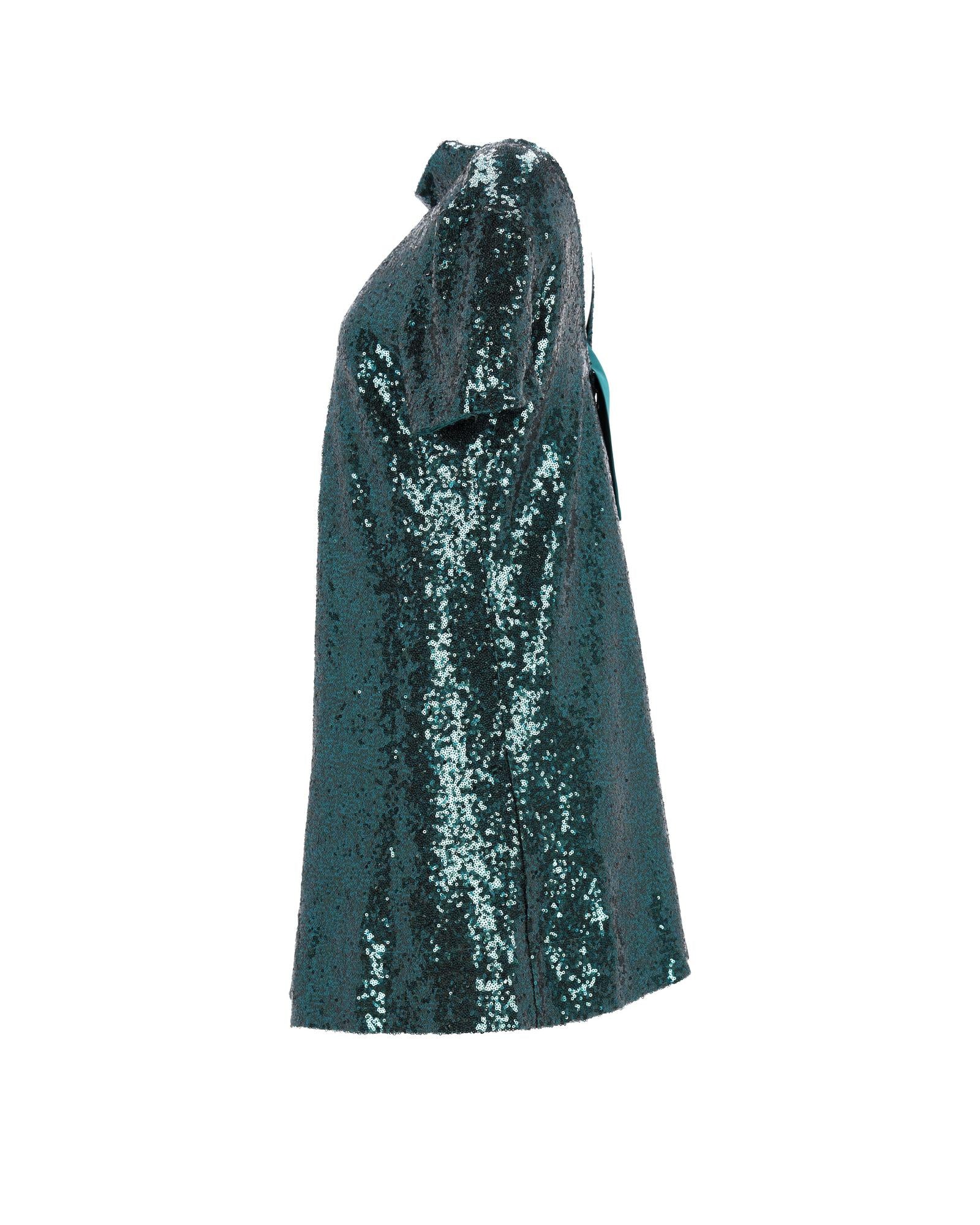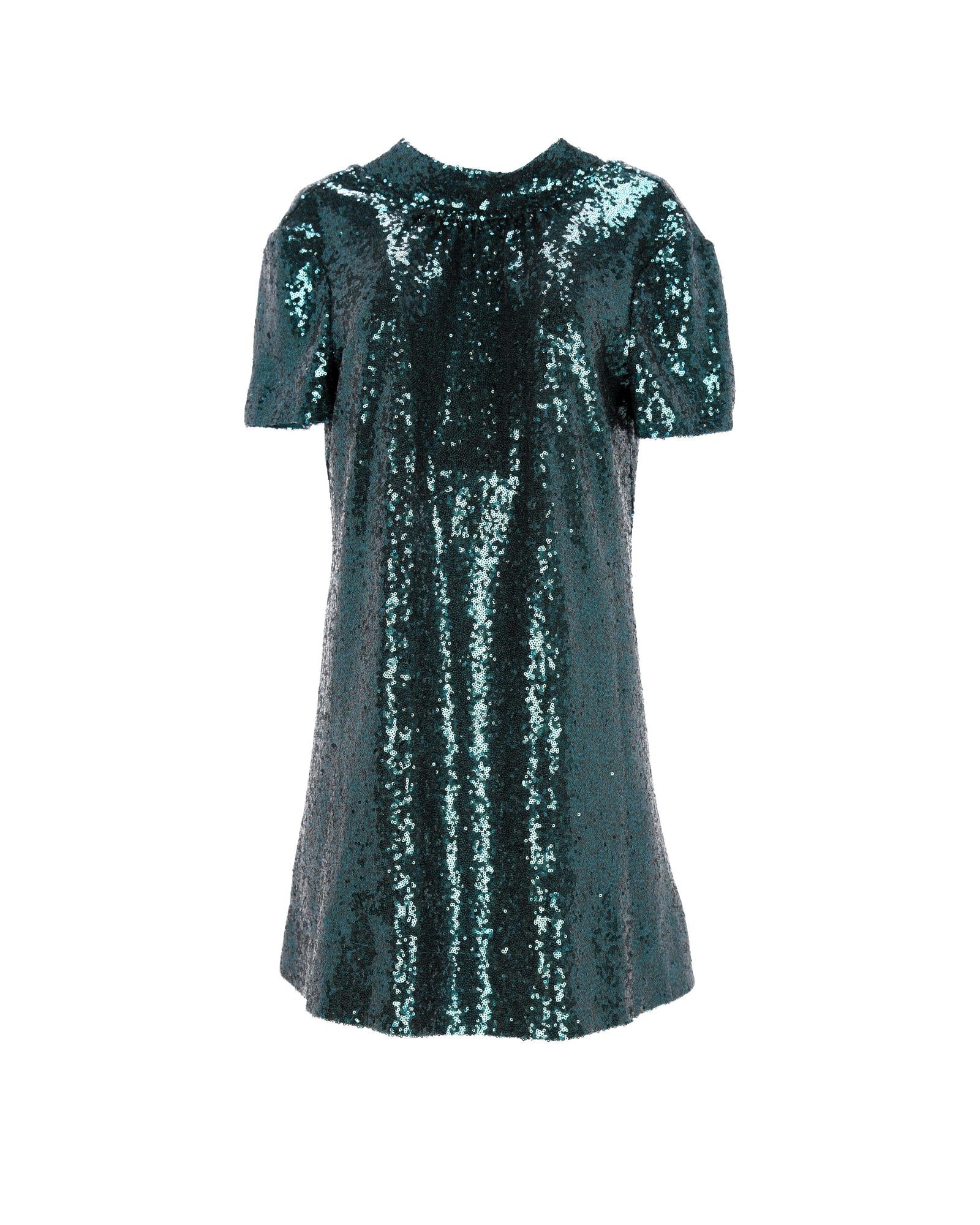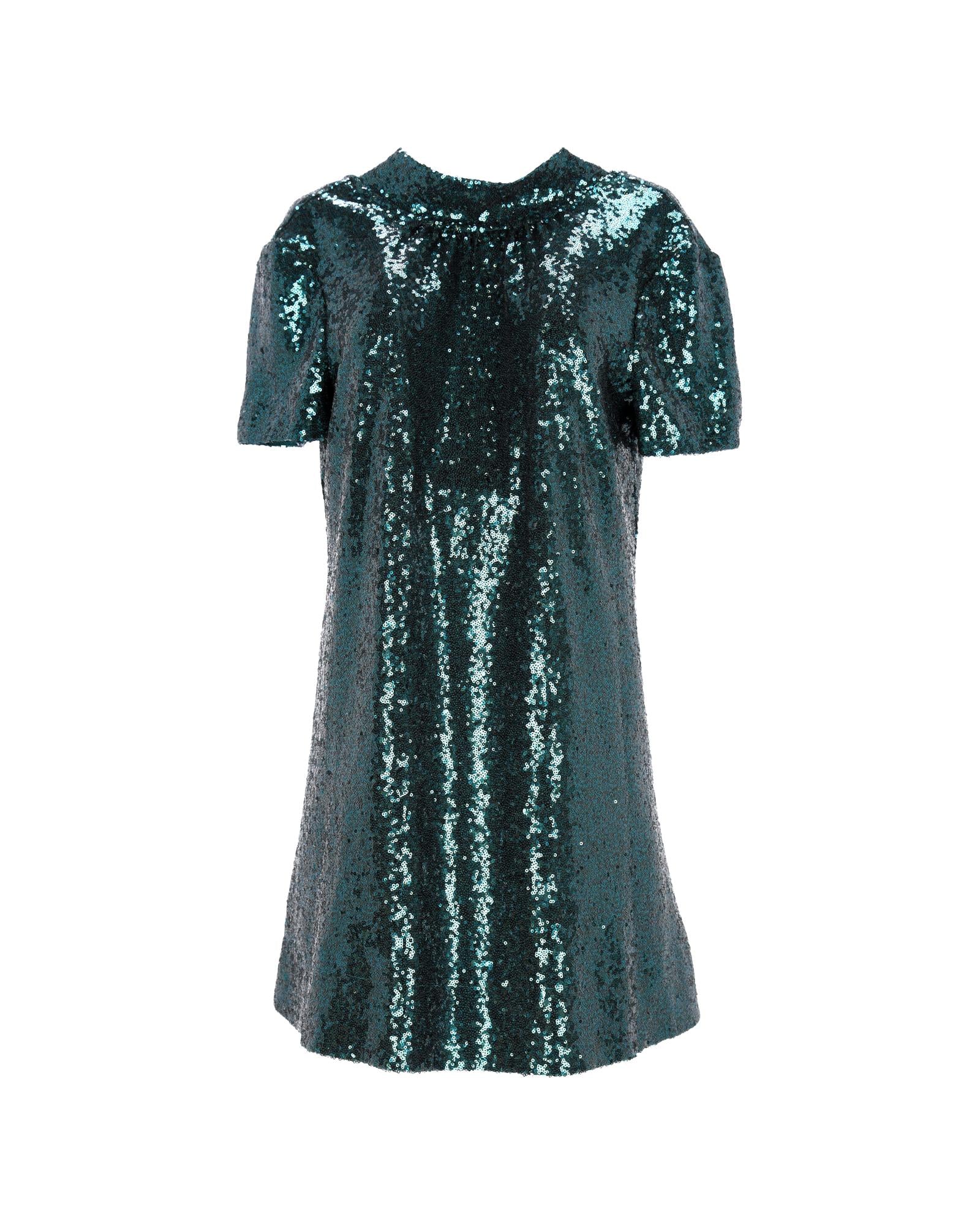 - Staud Mock Neck Mini Sequined Dress in Green Nylon