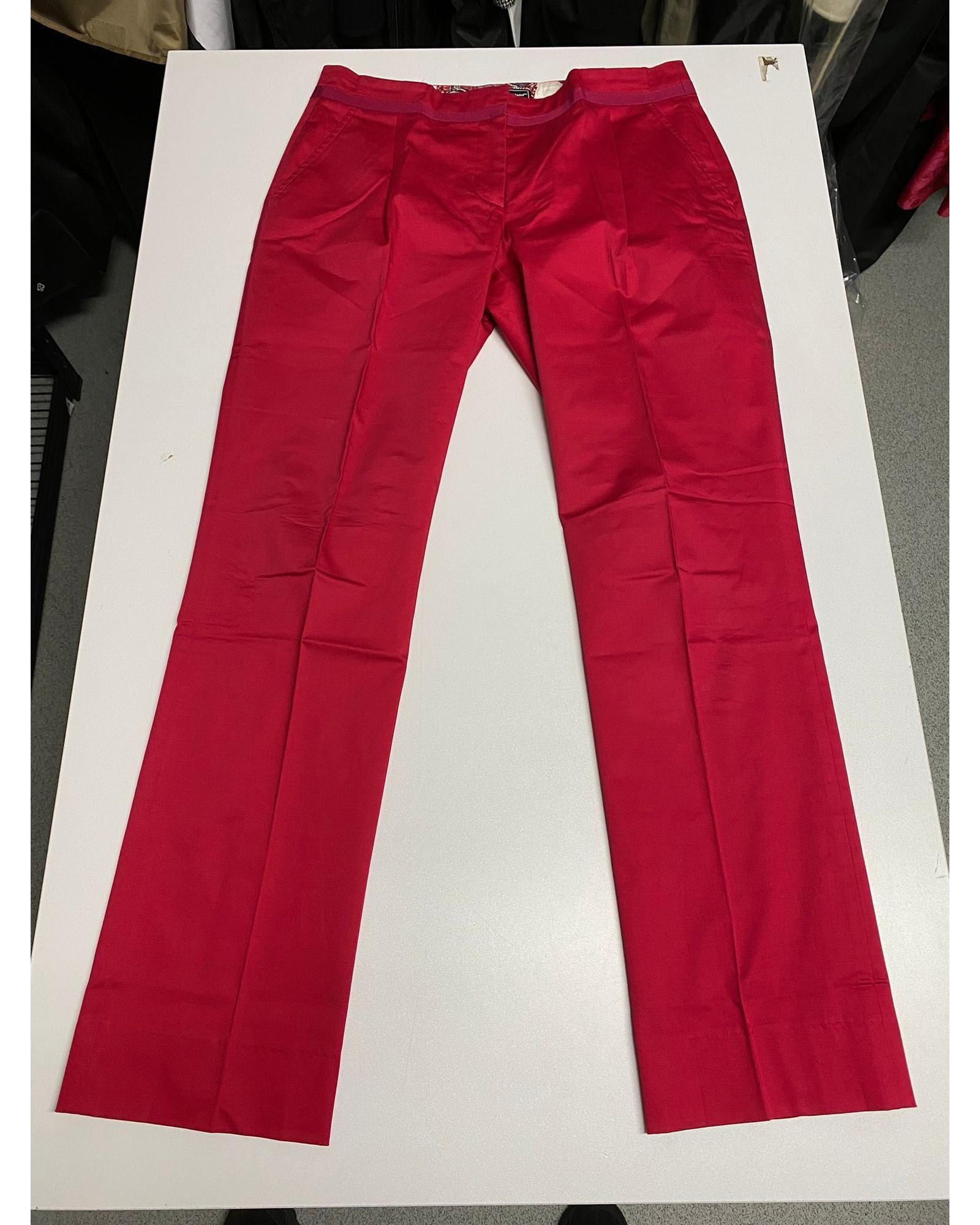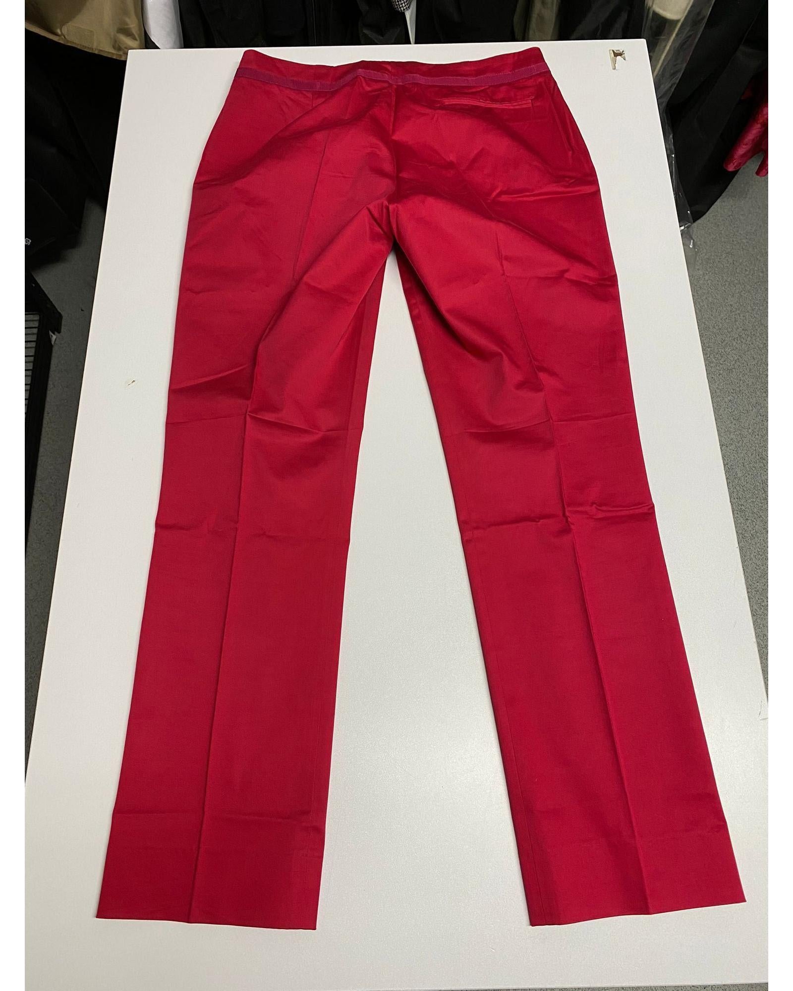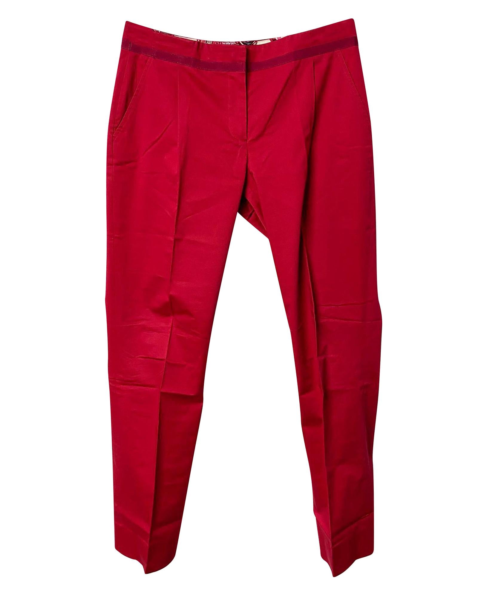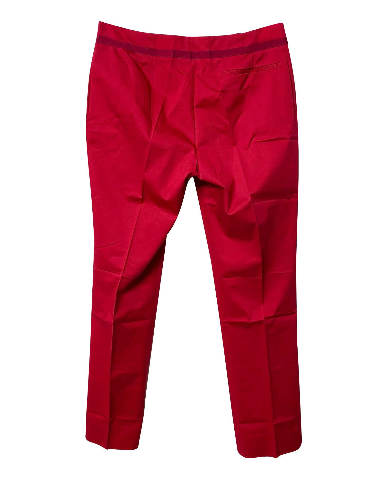 - Timeless and elegant red cotton trousers from Salvatore Ferragamo.