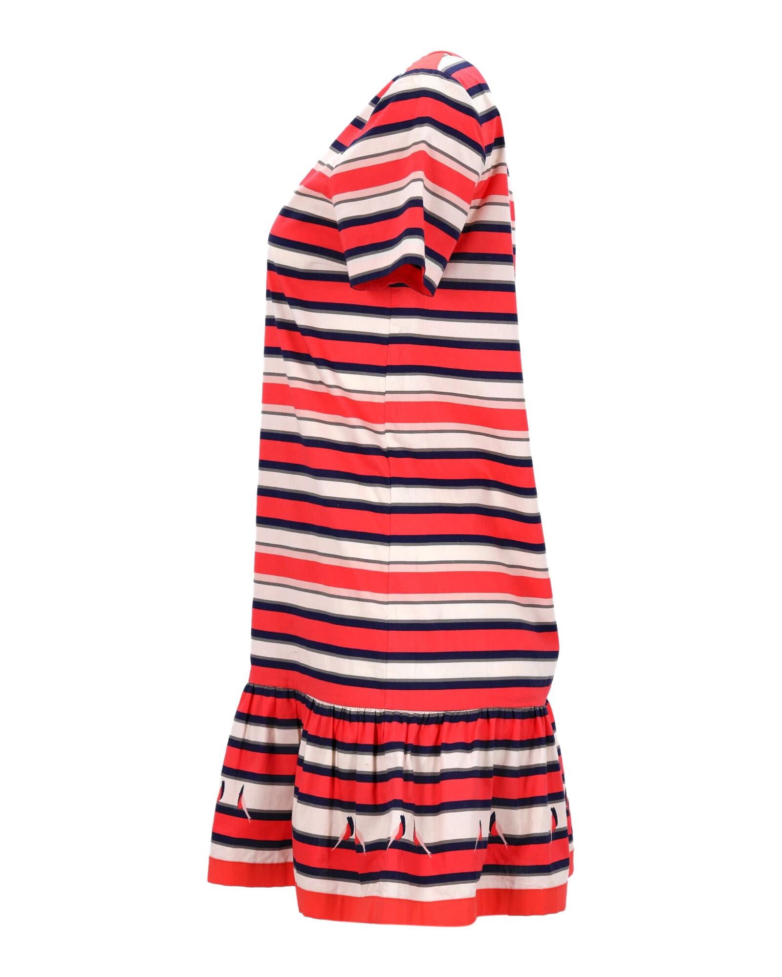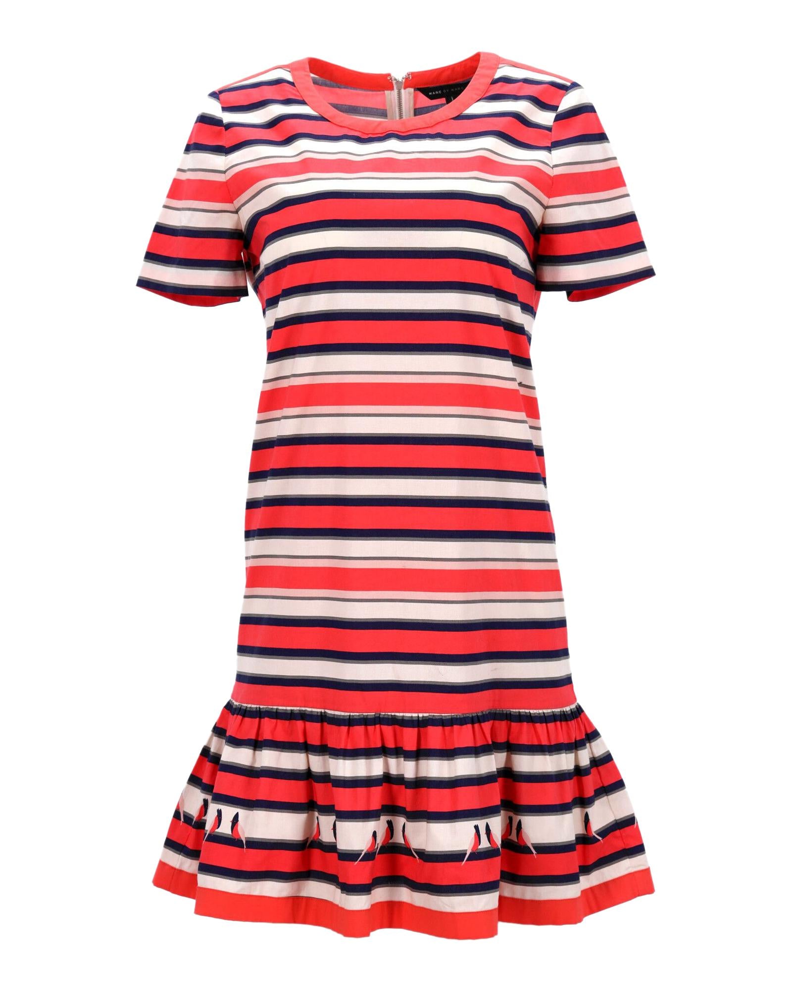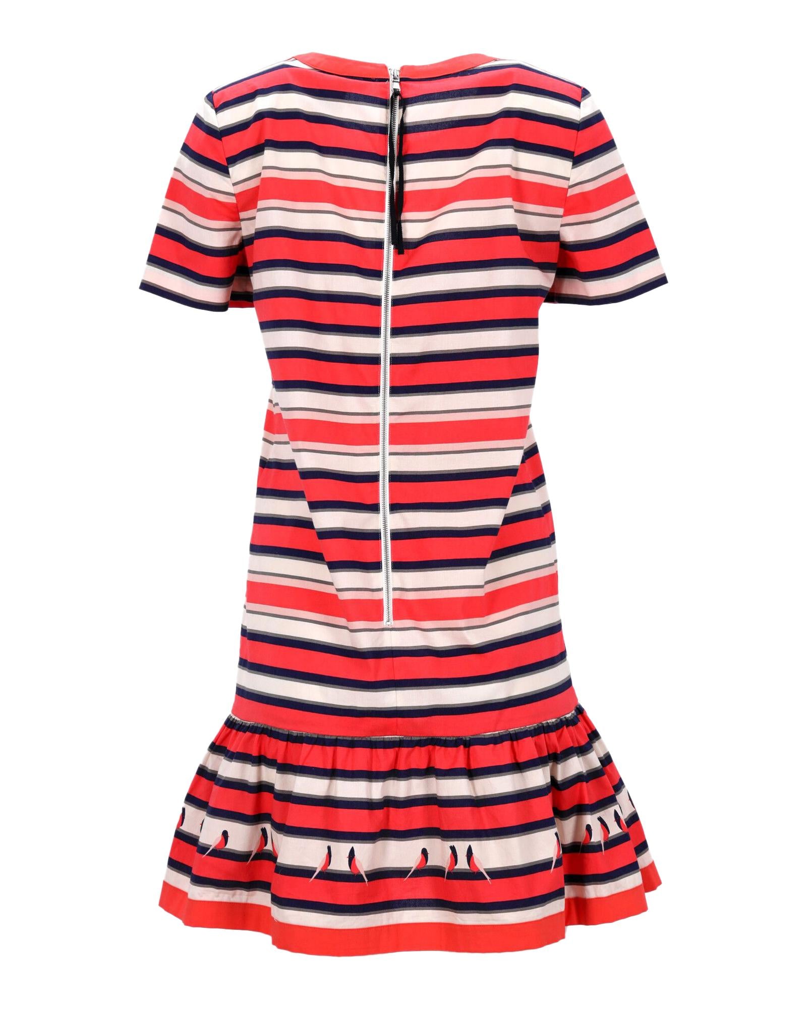Pre-owned Short Sleeve Striped Dress Bird Print