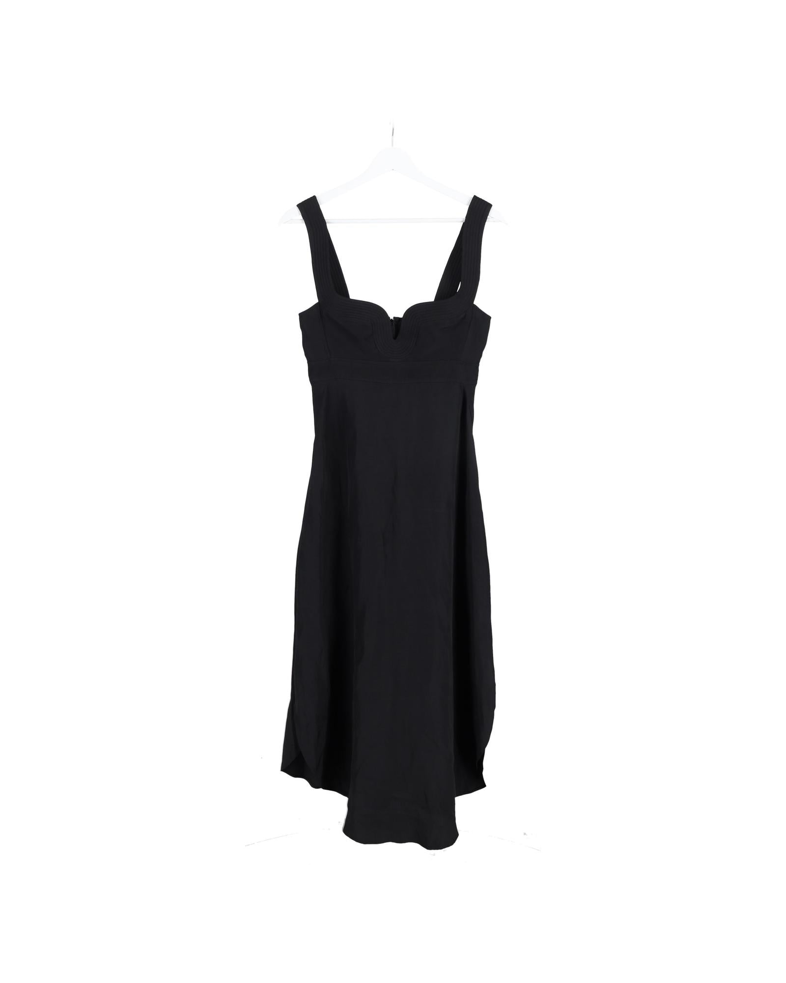 • Stella McCartney Midi Detailed Neckline Sleeveless Dress in Black Viscose