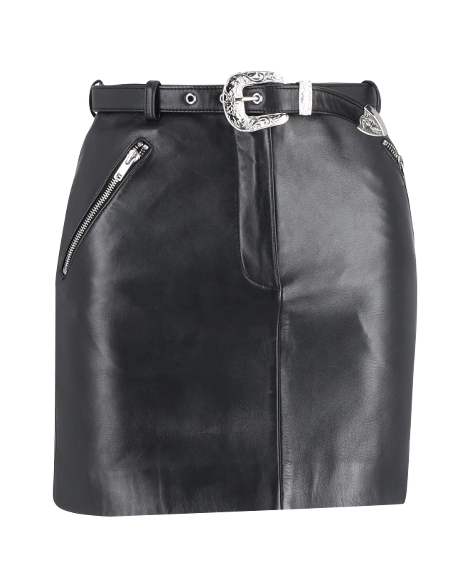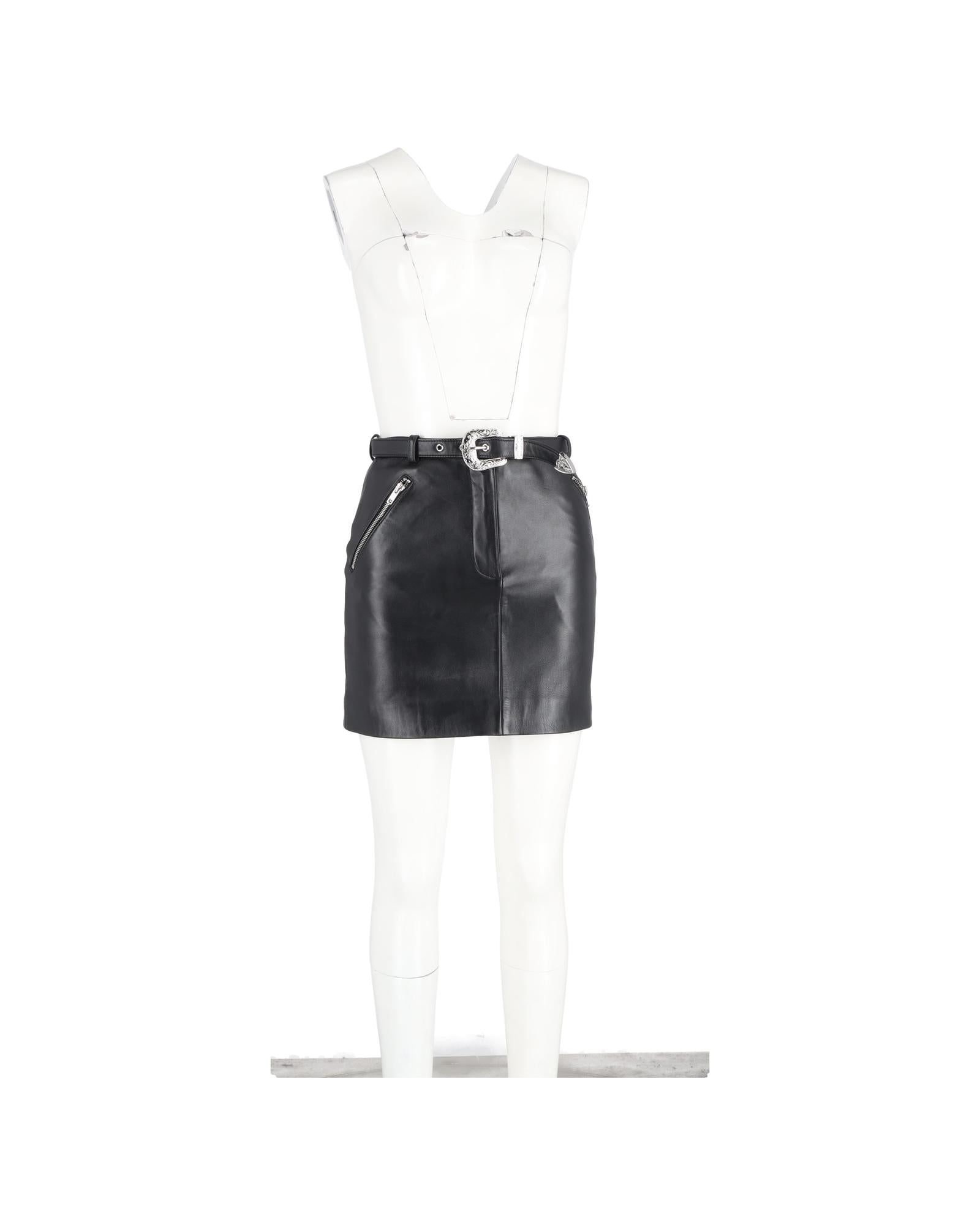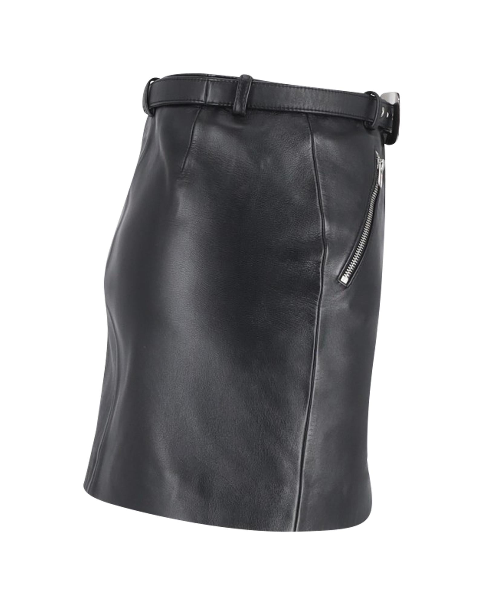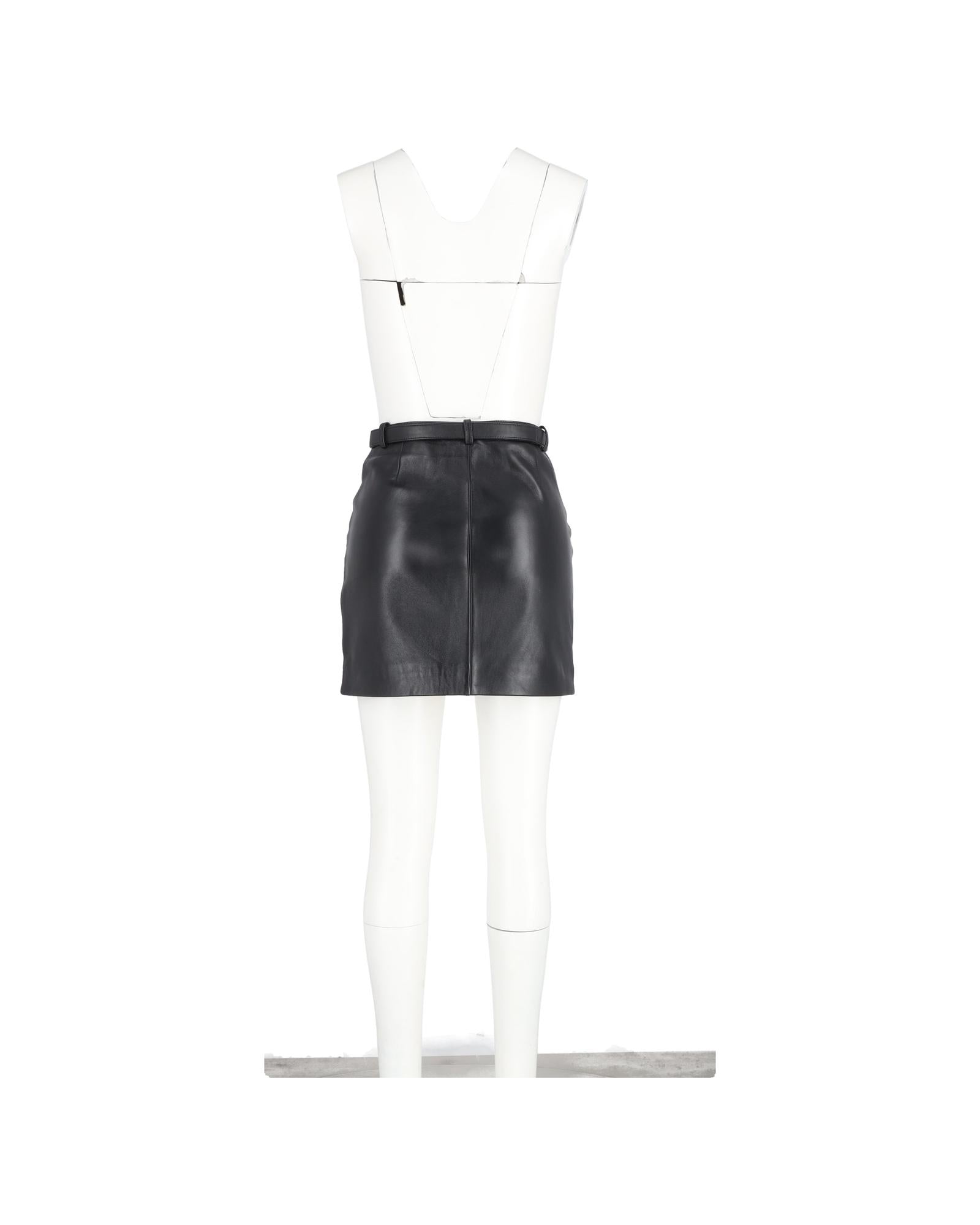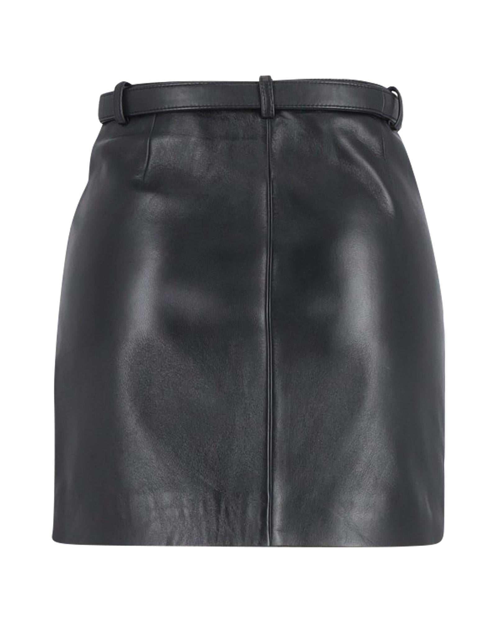 • Maje Jerto Belted Mini Skirt in Black Leather