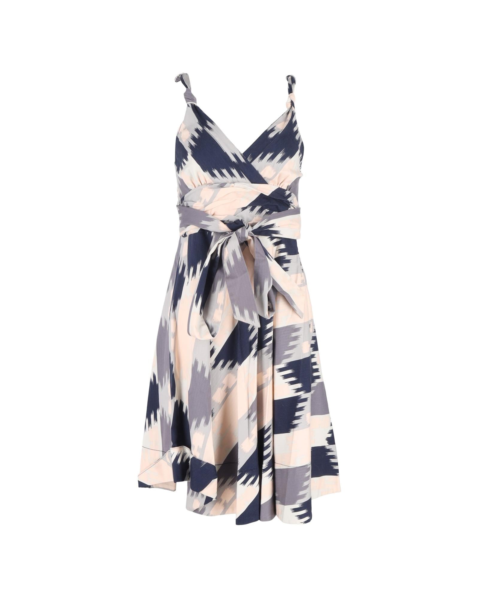 Pre-owned Printed ALine Dress with SelfTie Belt