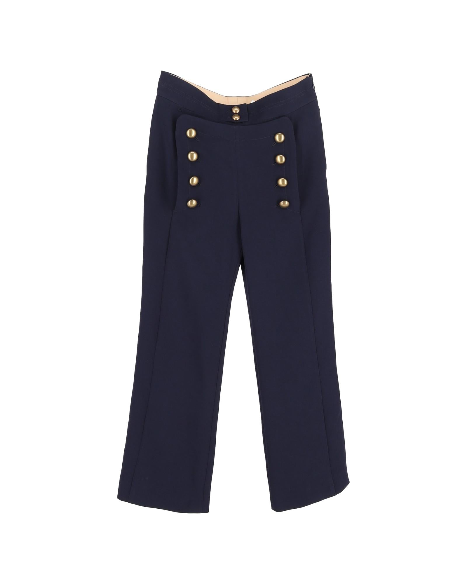 Pre-owned High-Waisted Trousers with Decorative Button Details Cropped Length and Wide Leg
