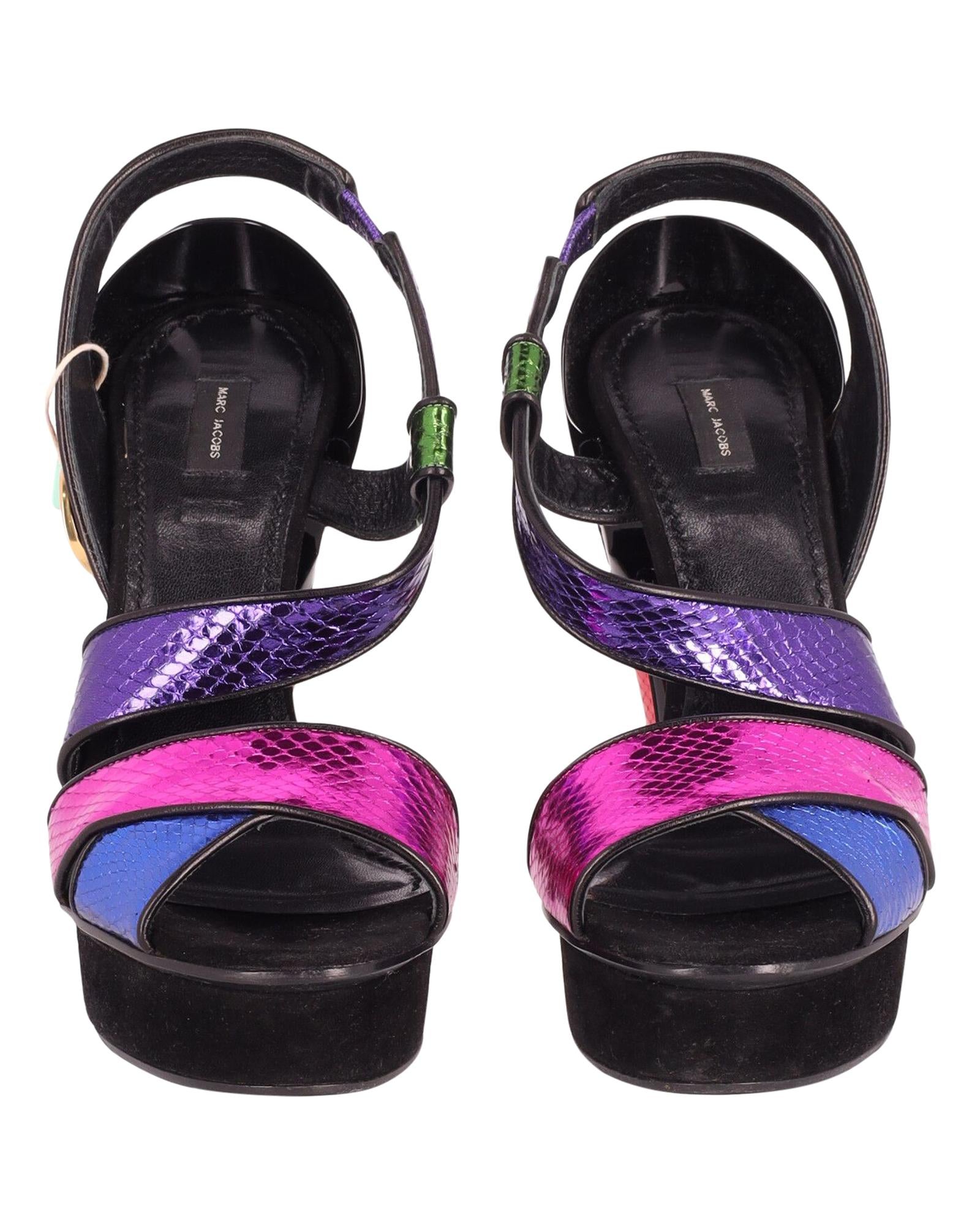 - Marc Jacobs Color Block Heart Platform Heel Sandals in Multicolor Leather