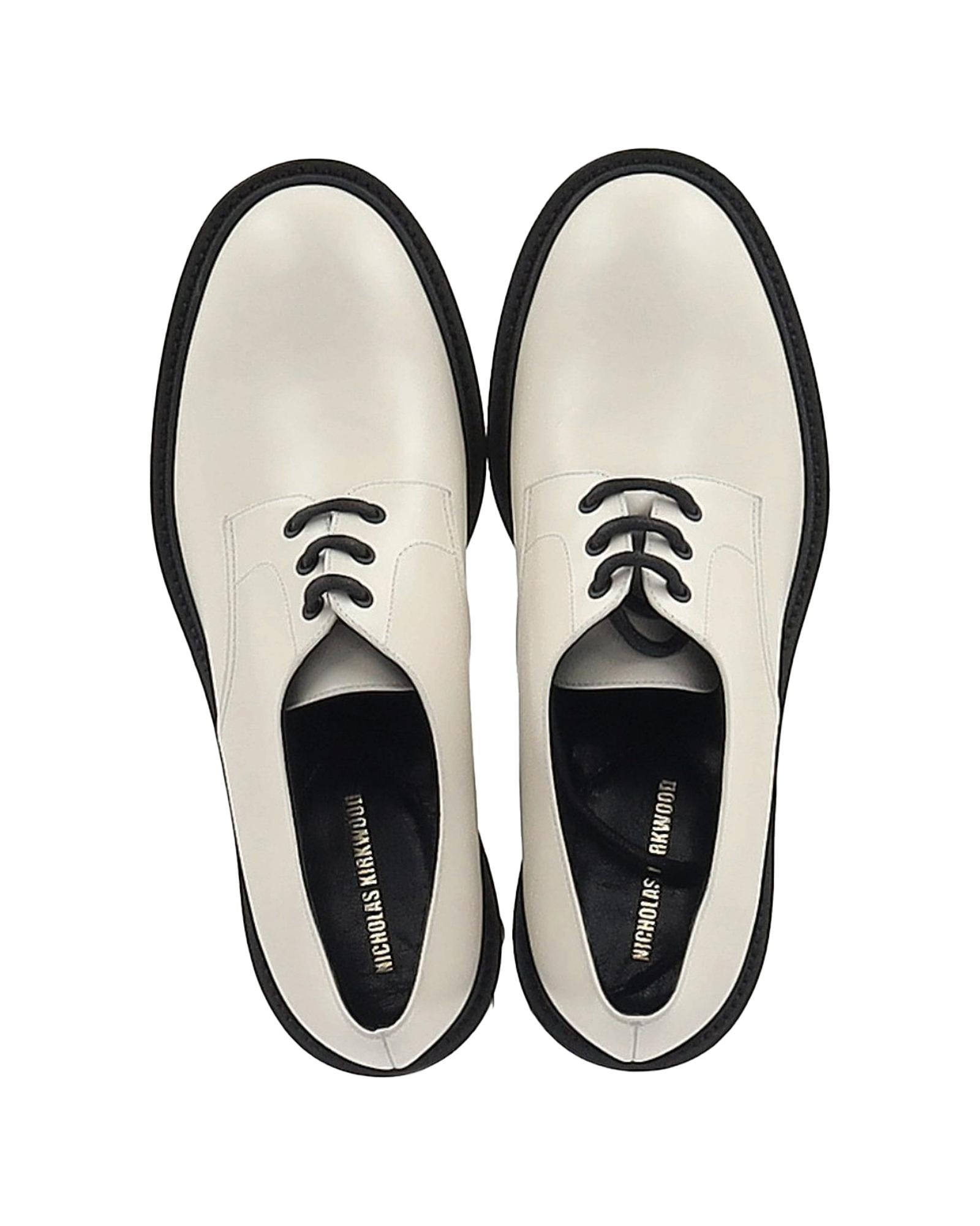 - Nicholas Kirkwood Casati Derbys in White Leather Crafted from supple white grained leather Designer’s signature faux