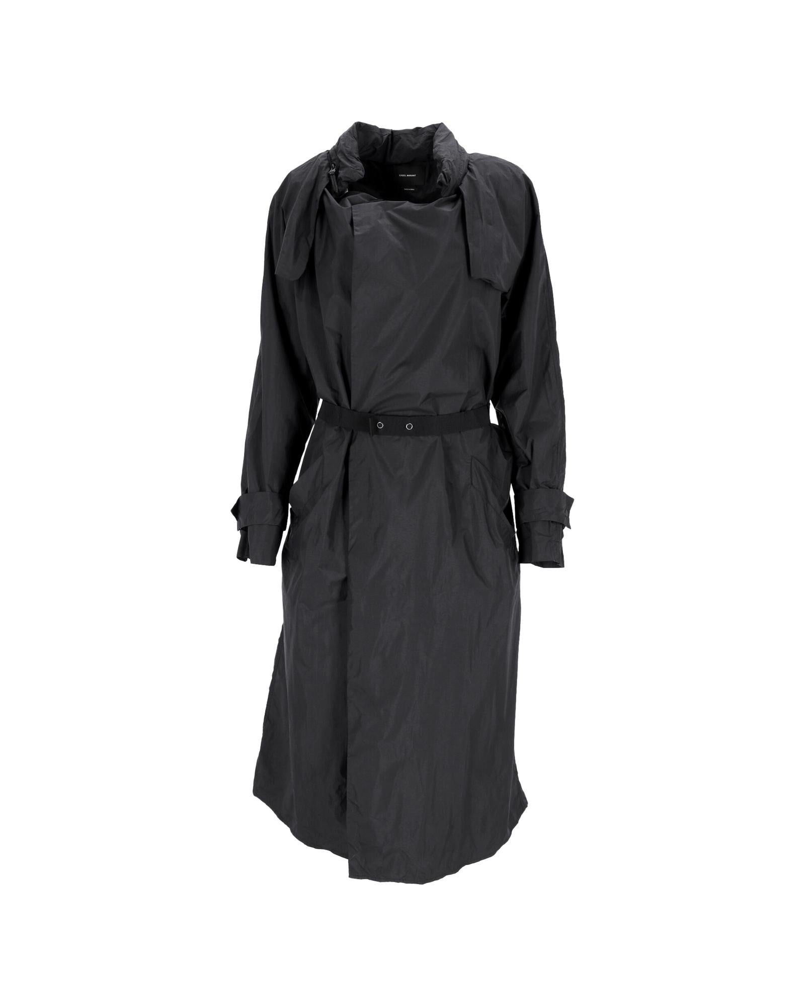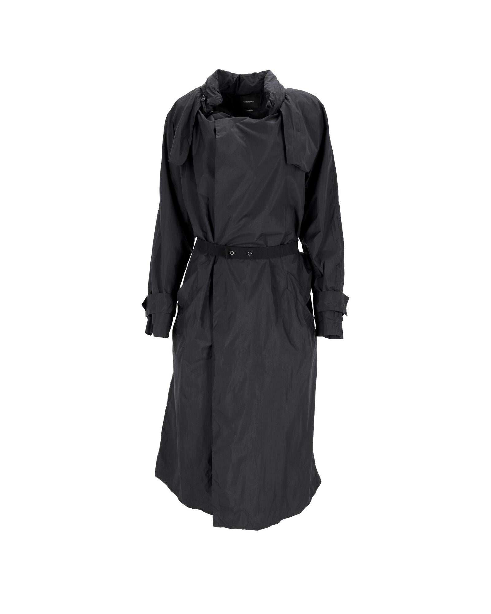 - Isabel Marant Belted Midi Trench Coat in Black Nylon