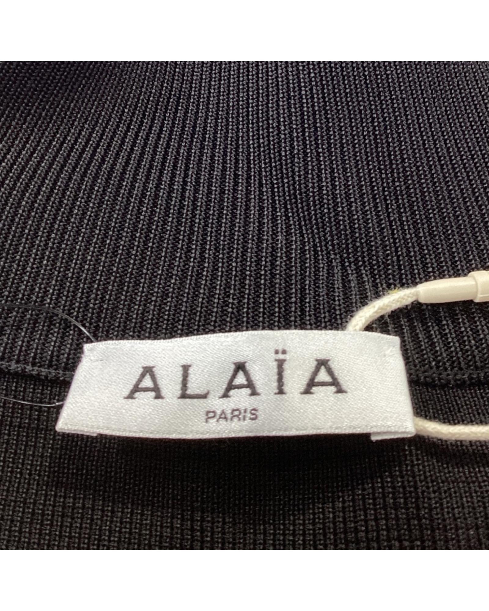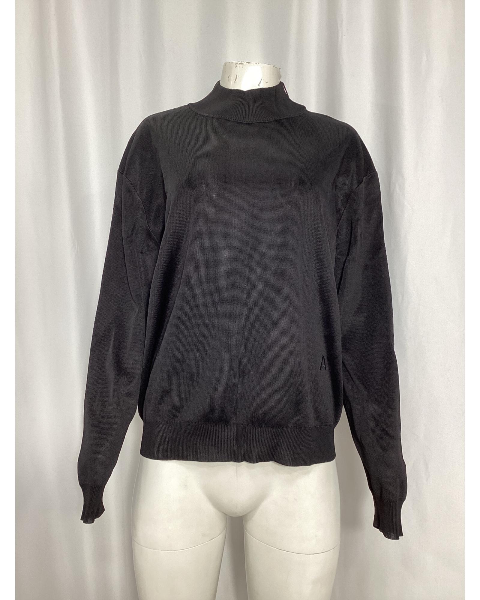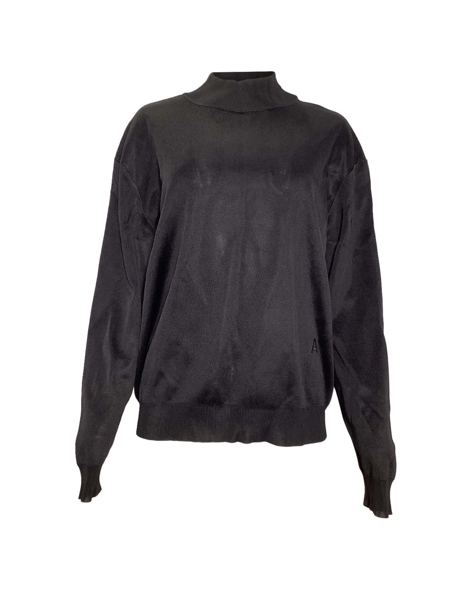 - Alaia Embroidered Logo Mock Neck Sweater in Black Viscose