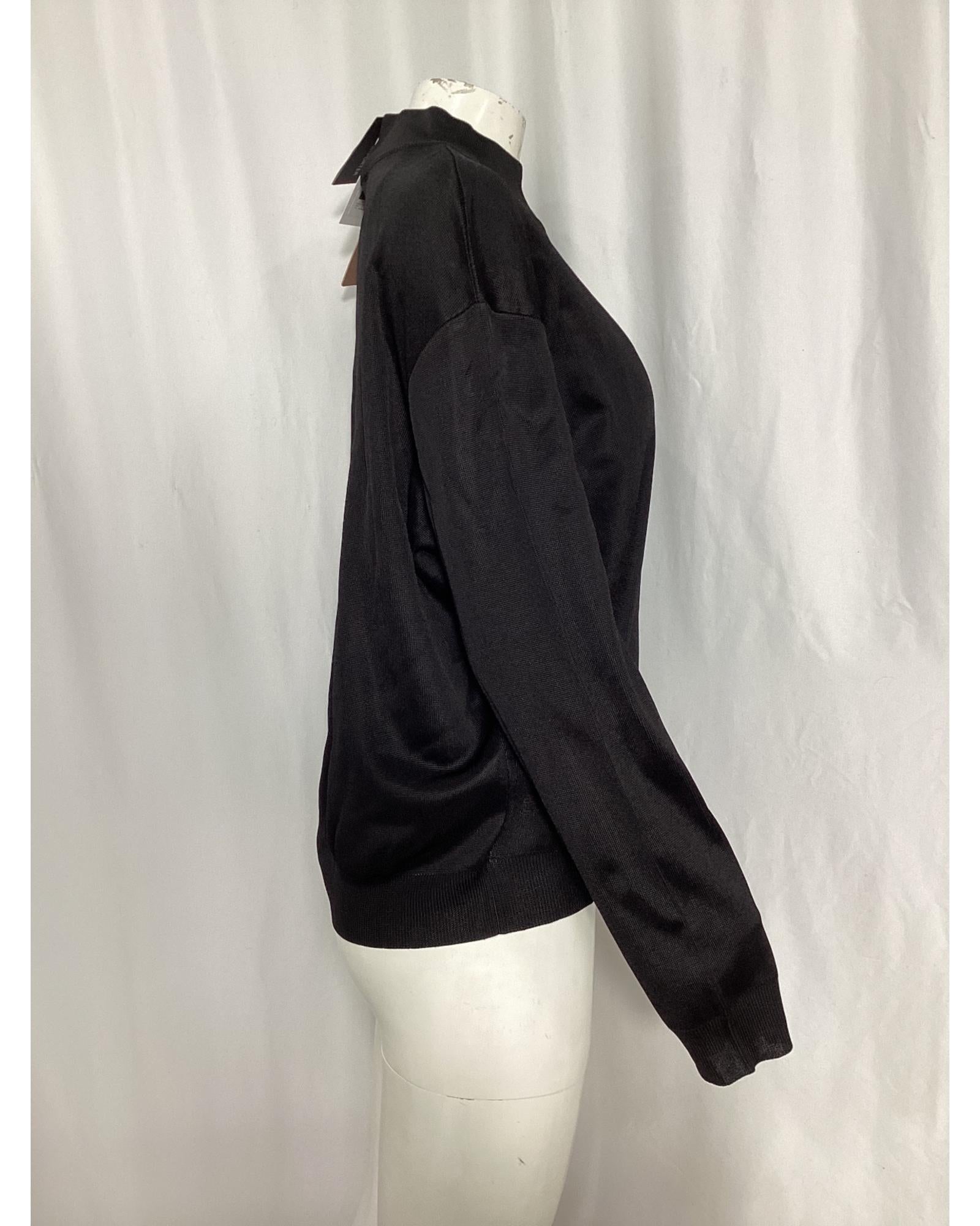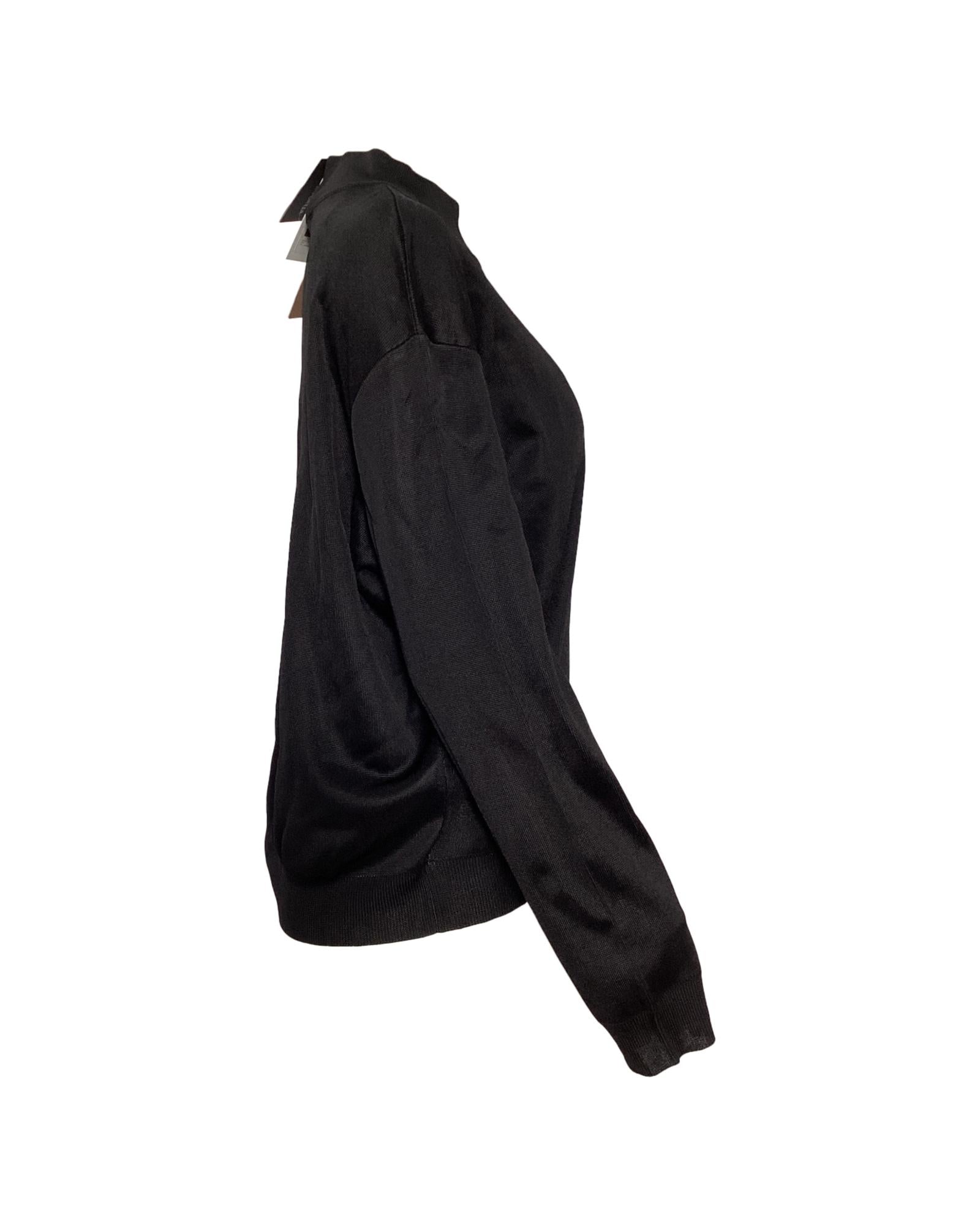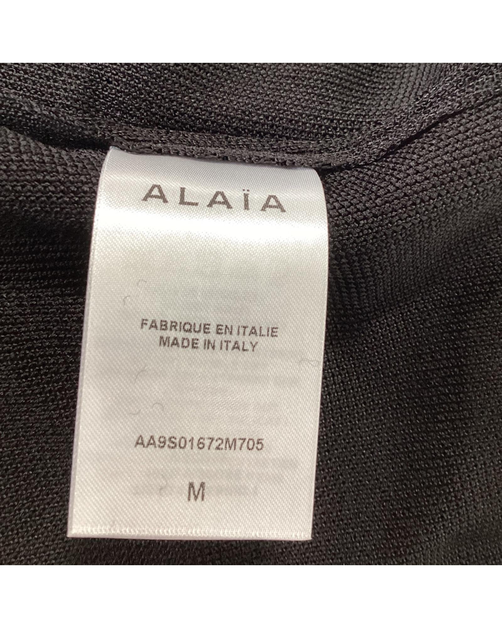 - Alaia Embroidered Logo Mock Neck Sweater in Black Viscose