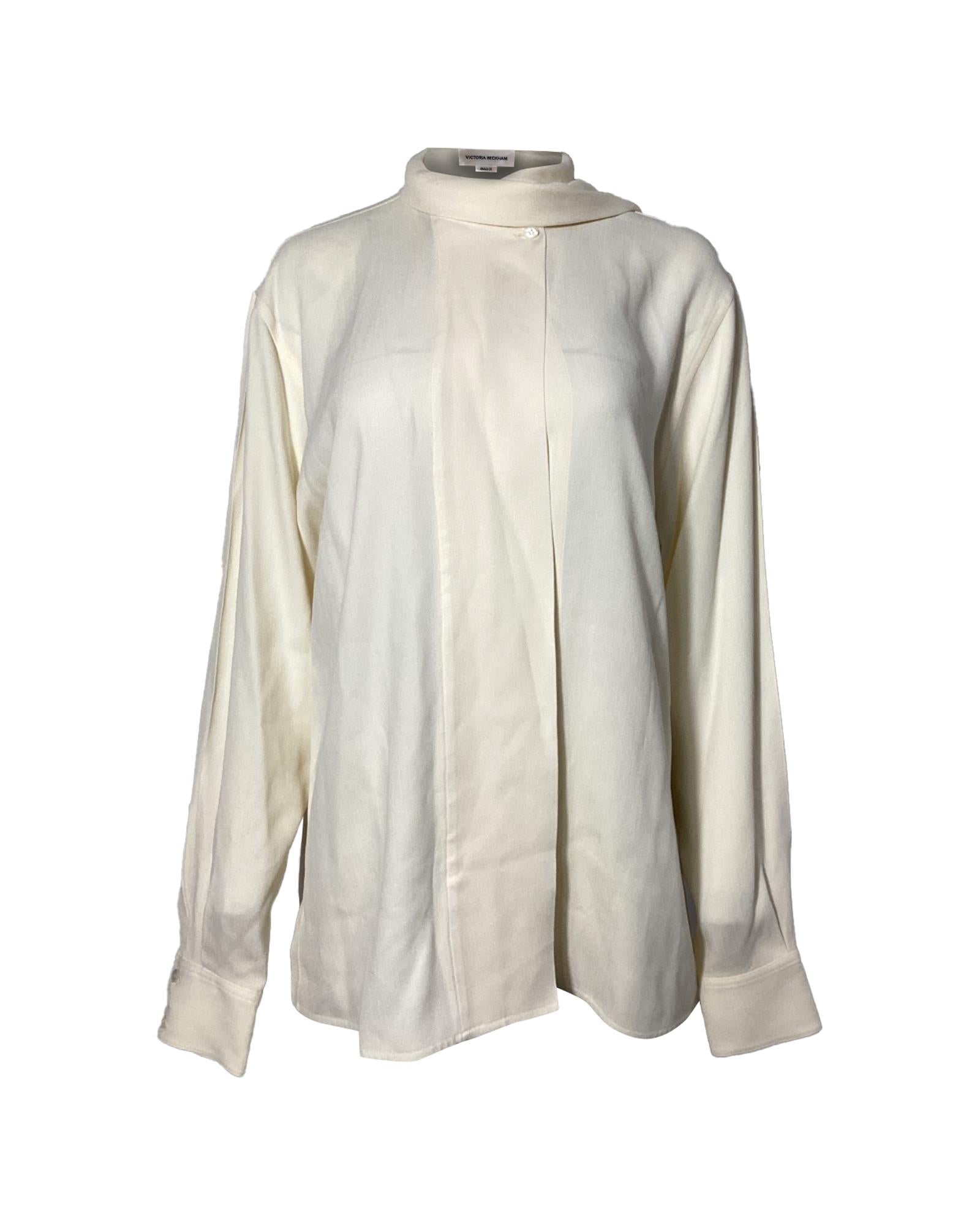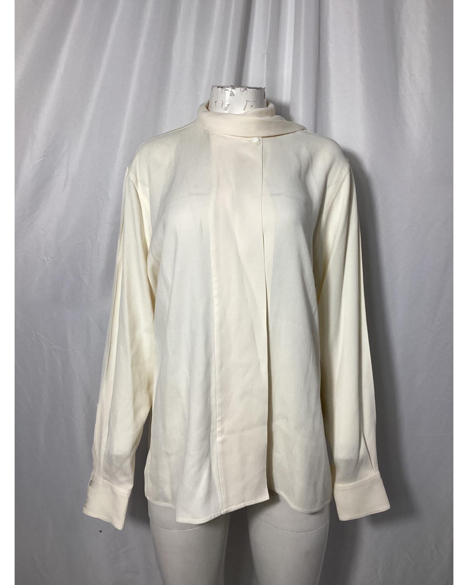 - Victoria Beckham Scarf Neck Long Sleeve Blouse in Cream Acetate