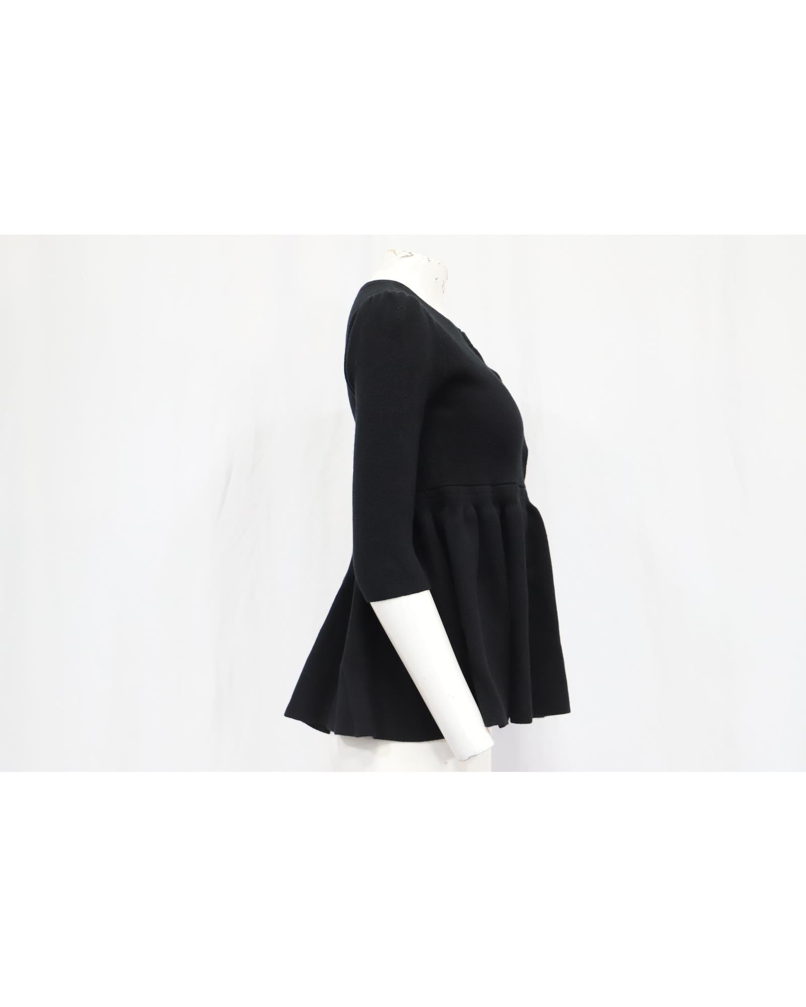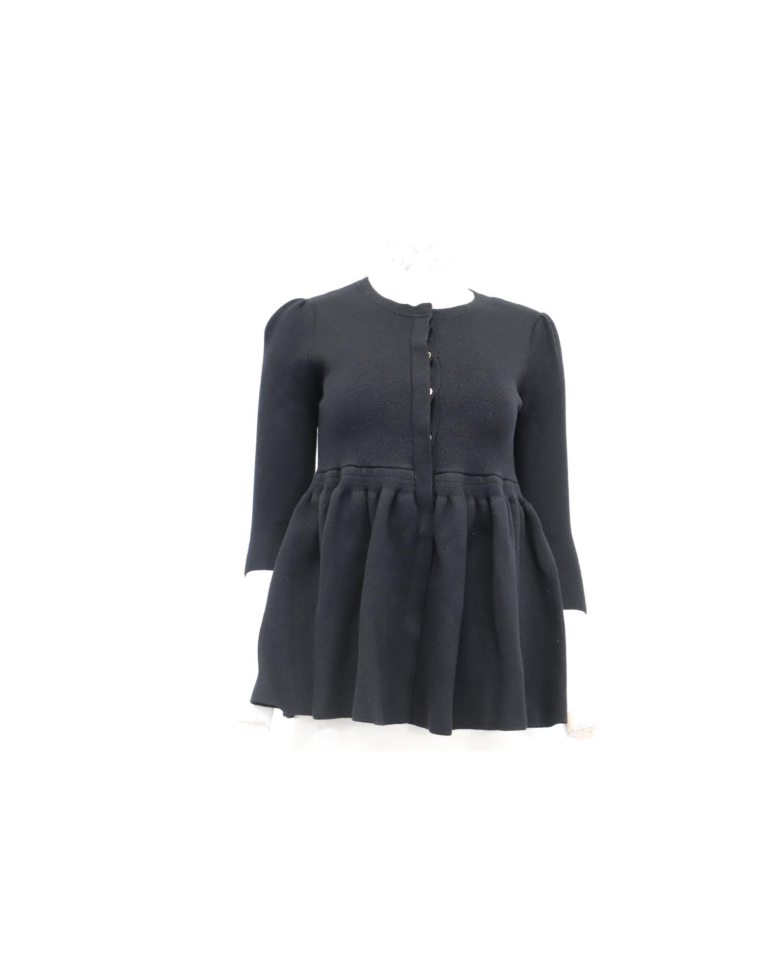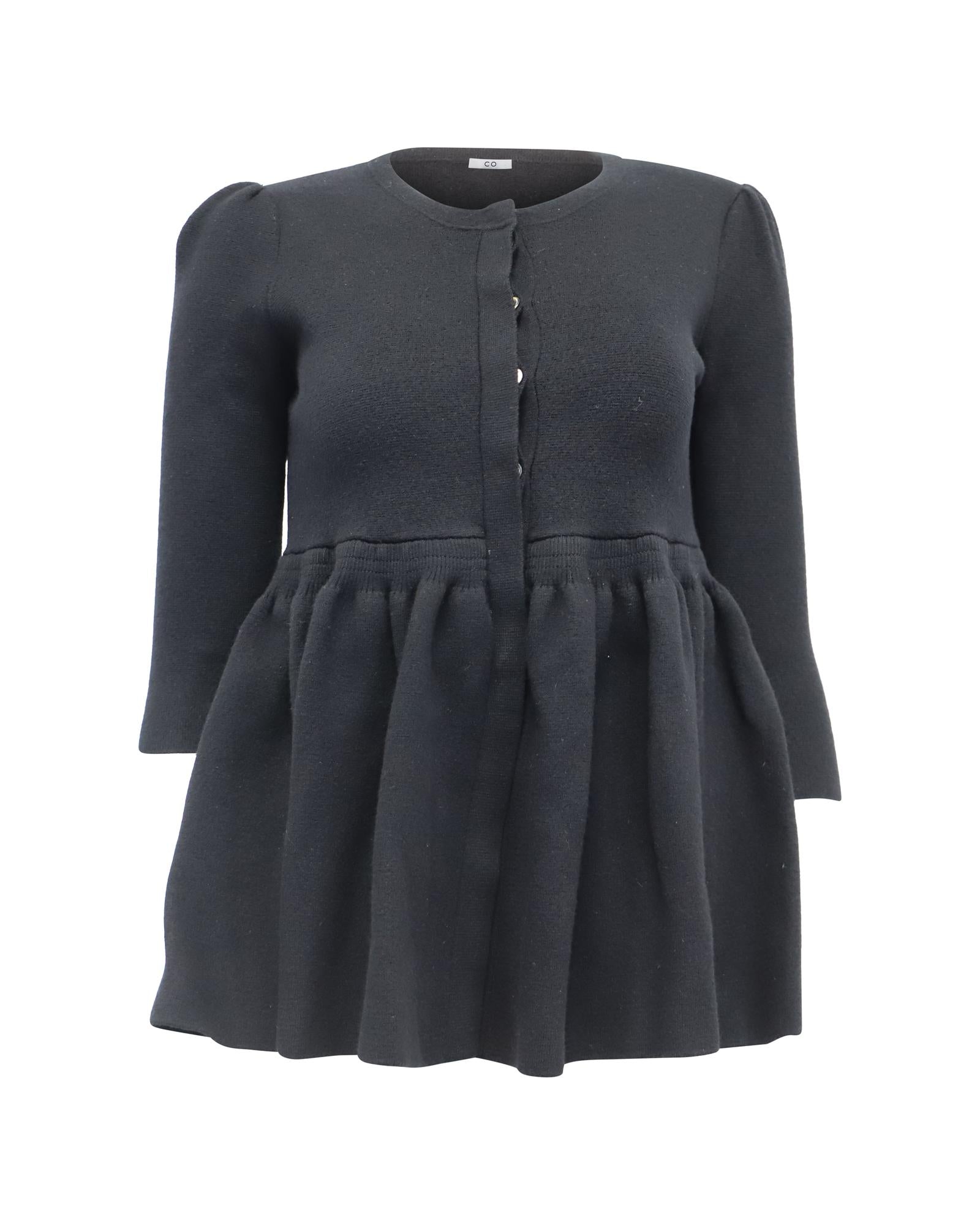 Elegant Knit Dress with Long Sleeves and Gathered Skirt