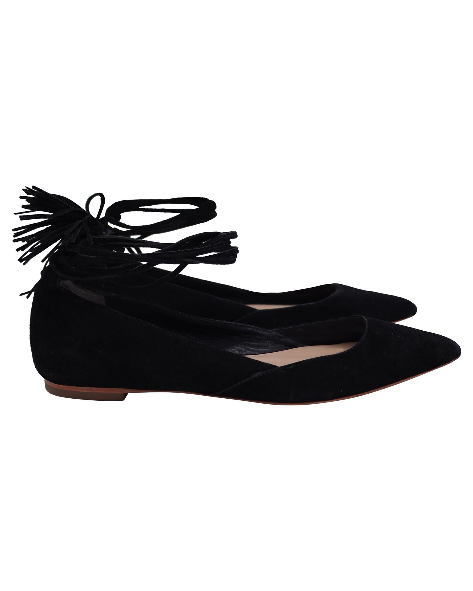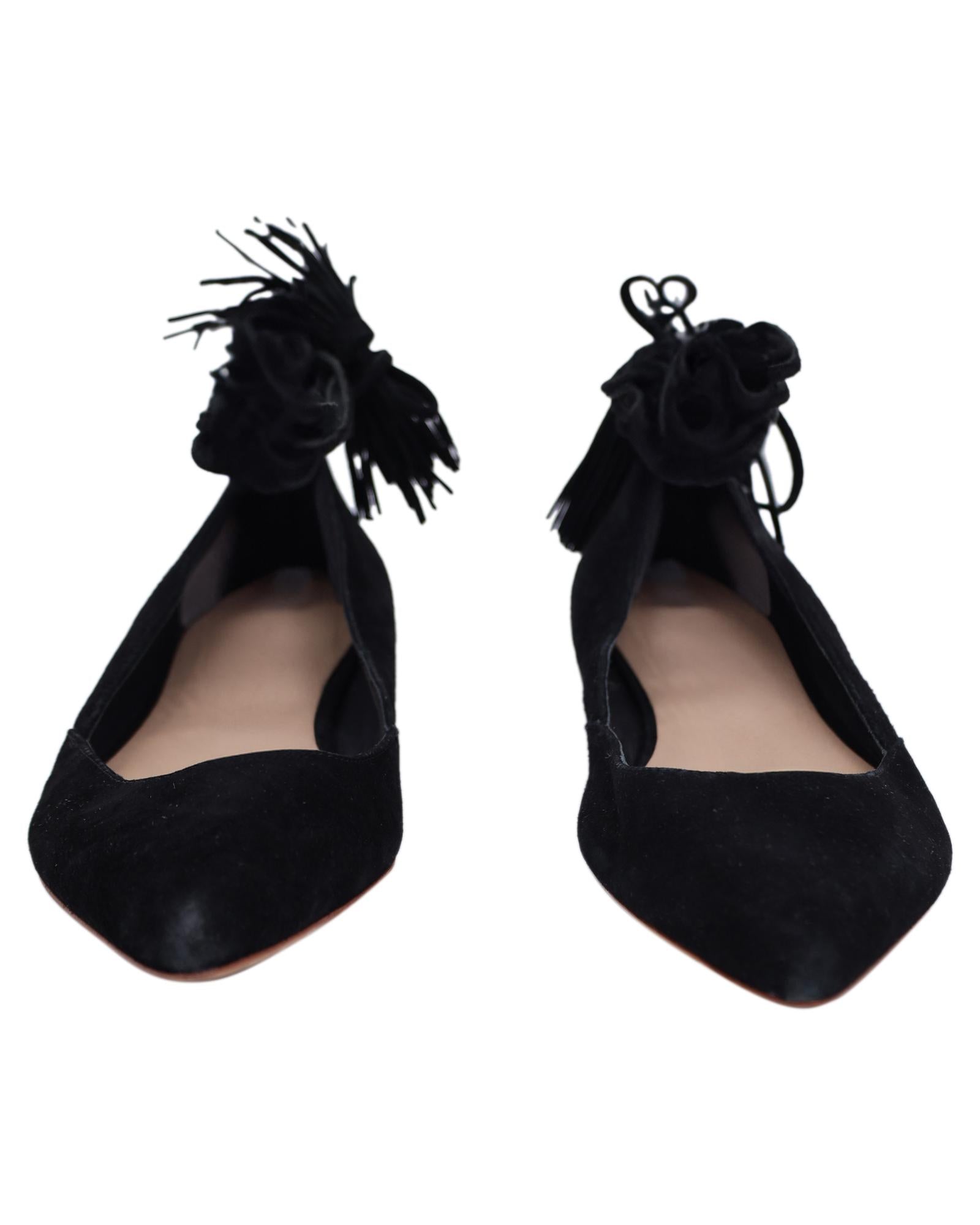 - Elevate your footwear collection with these Loeffler Randall Tassel Accents DOrsay Flats in black suede