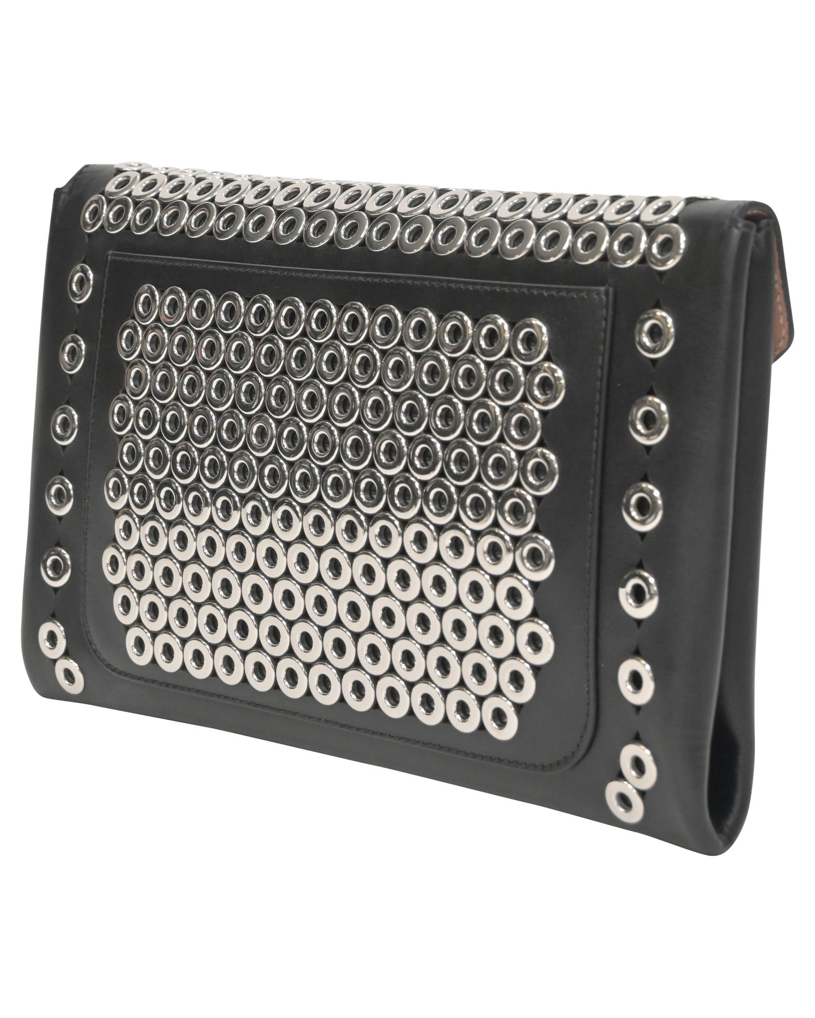 - Statement clutch with stud embellishments
