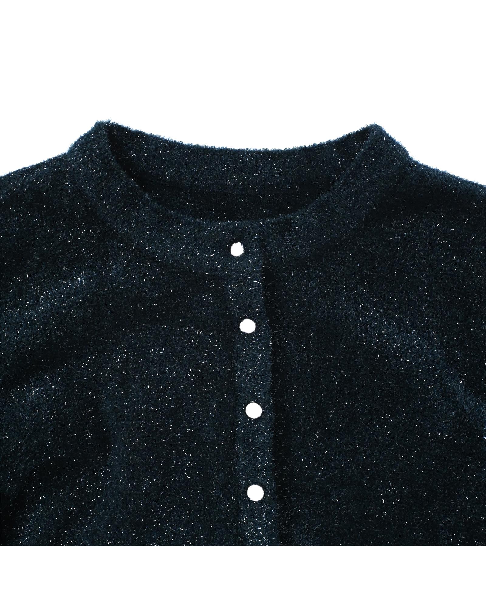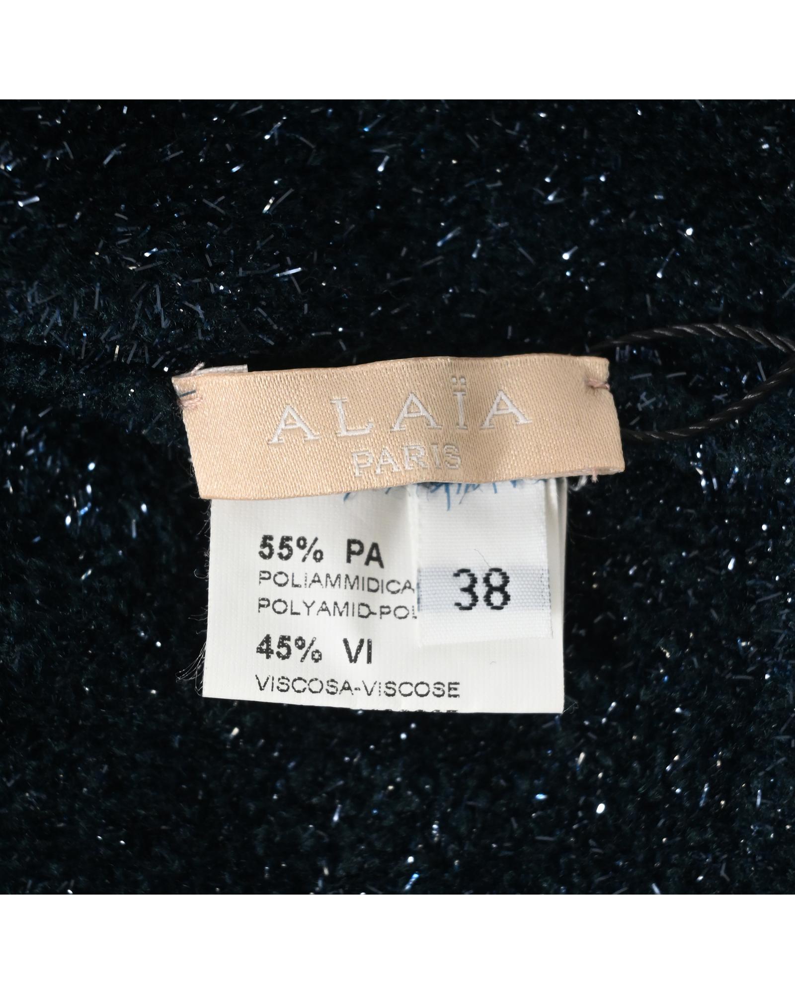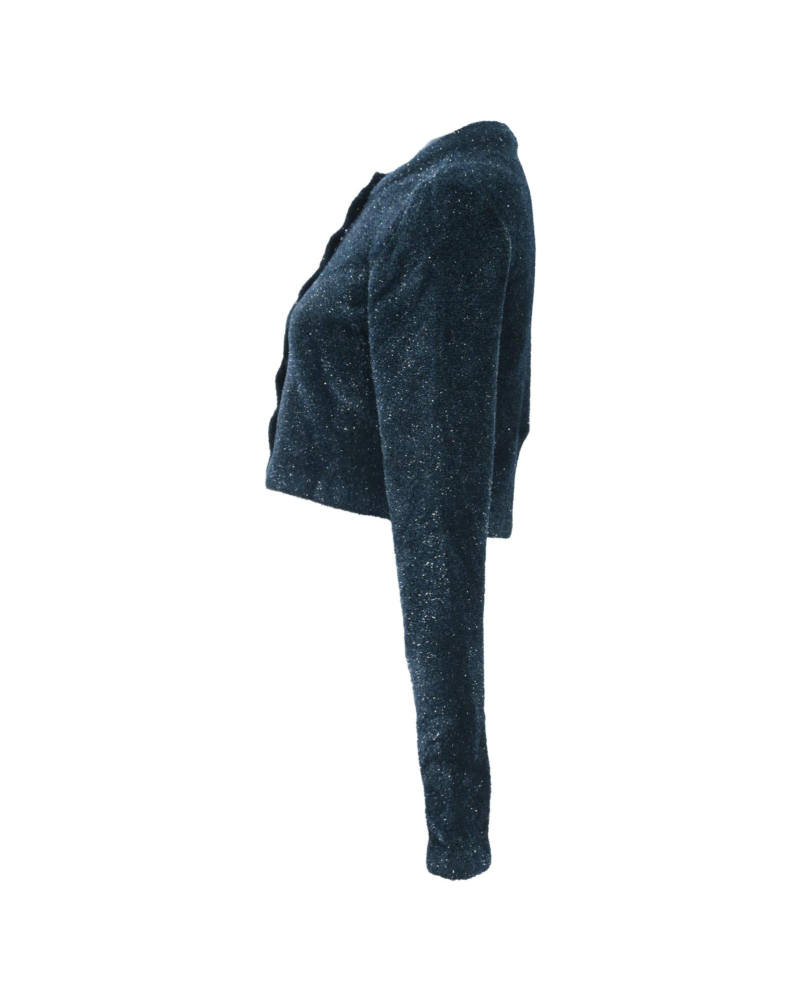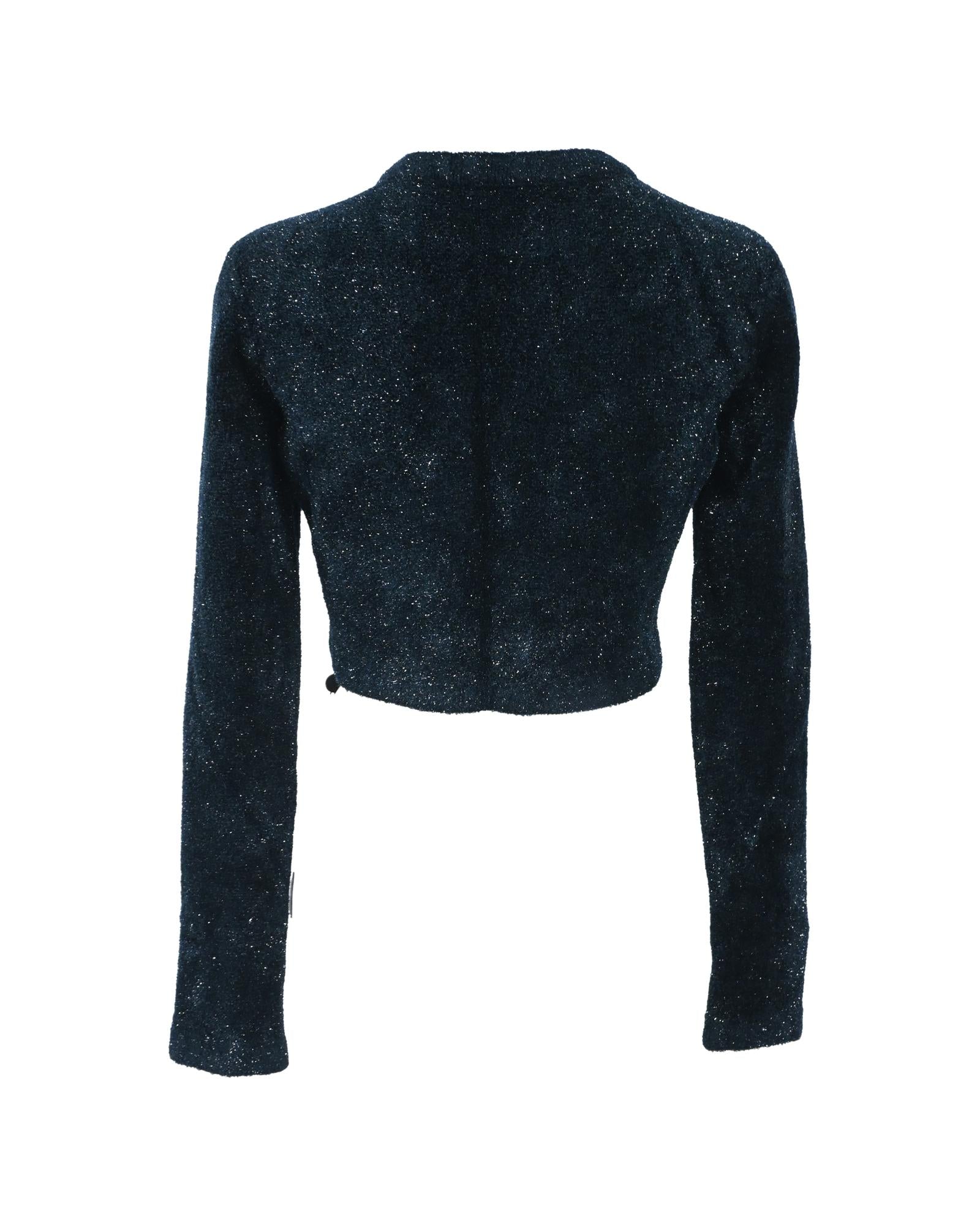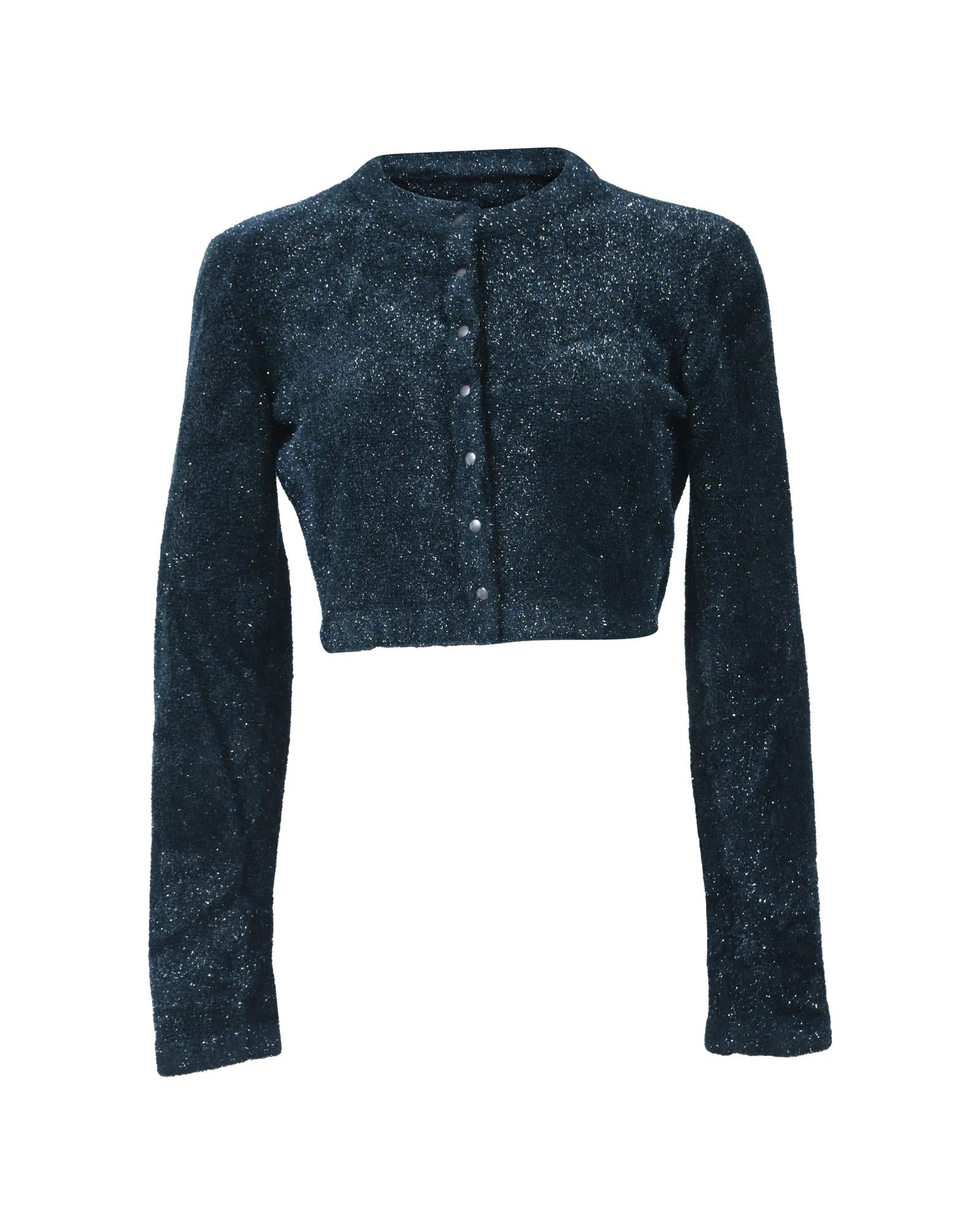 - Alaia Buttoned Glitter Cropped Cardigan in Green Polyamide
